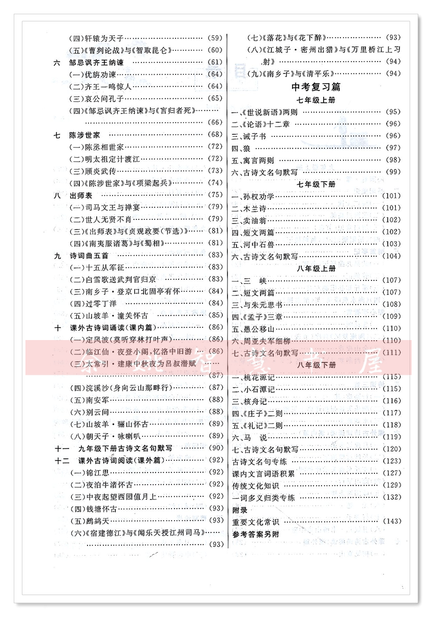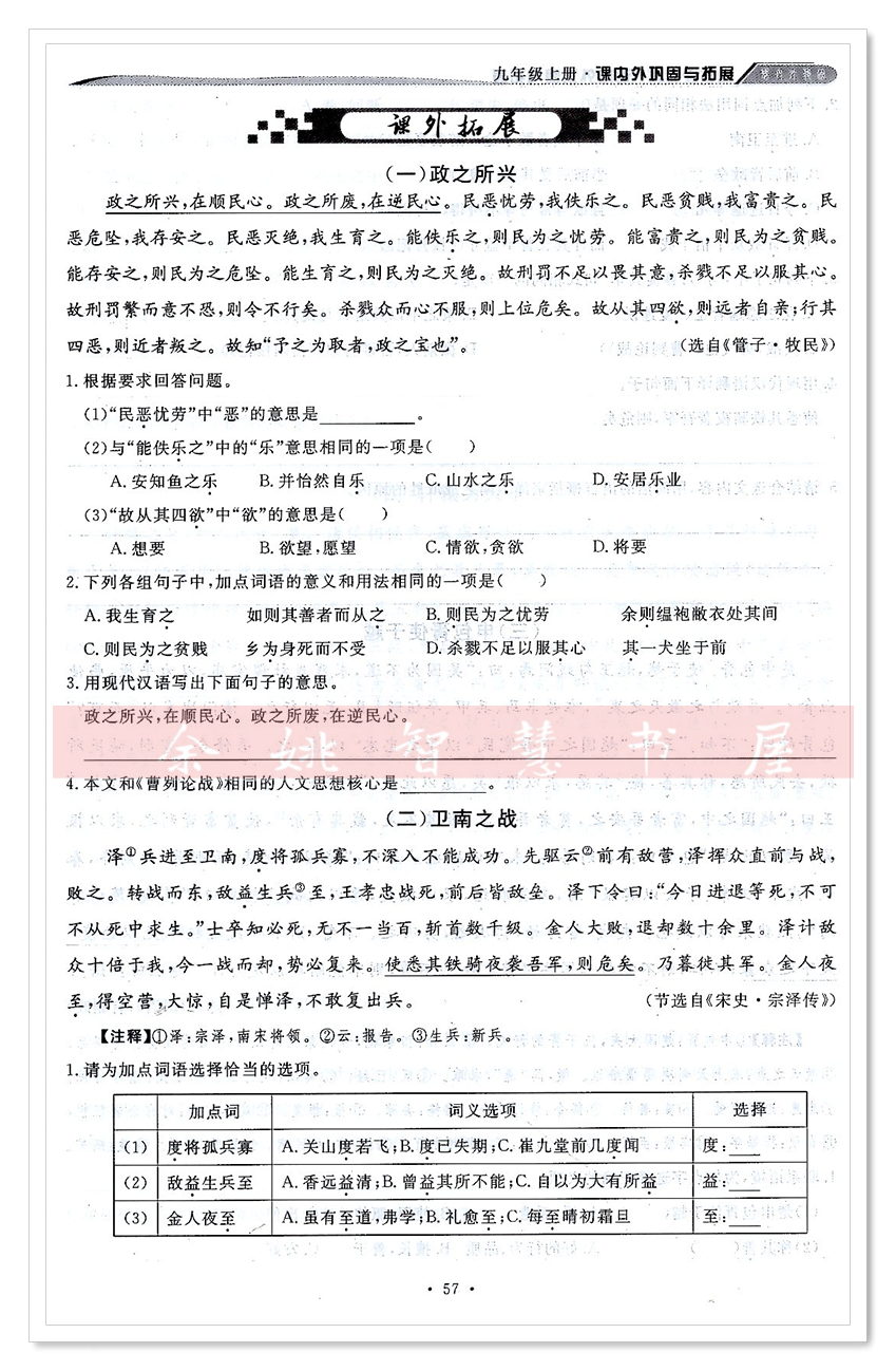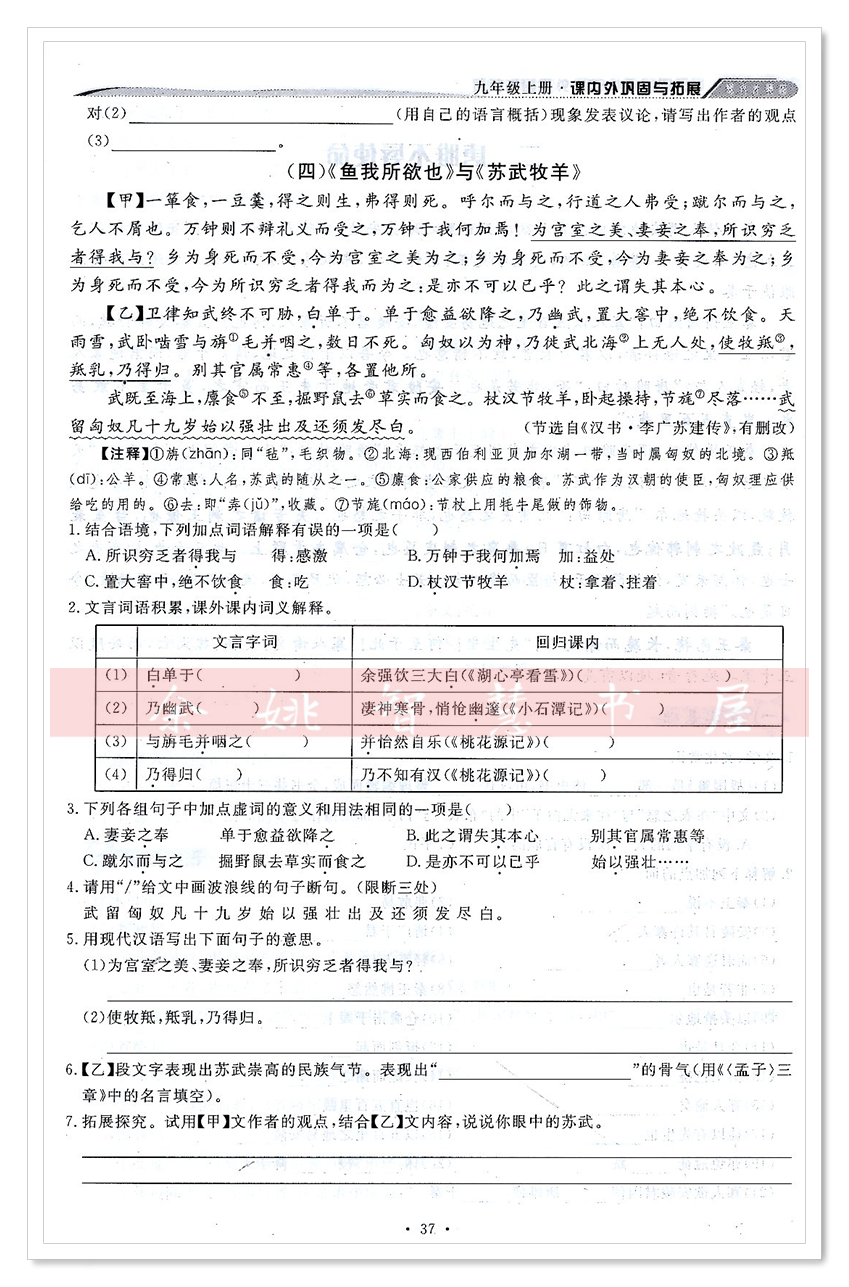 初中文言文课外巩固与拓展七年级上册八年级上册九年级全一册