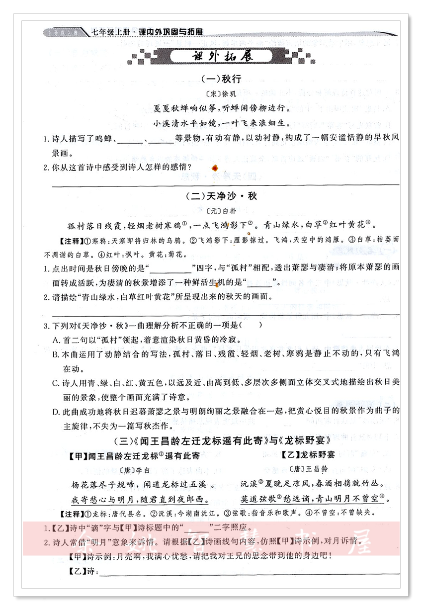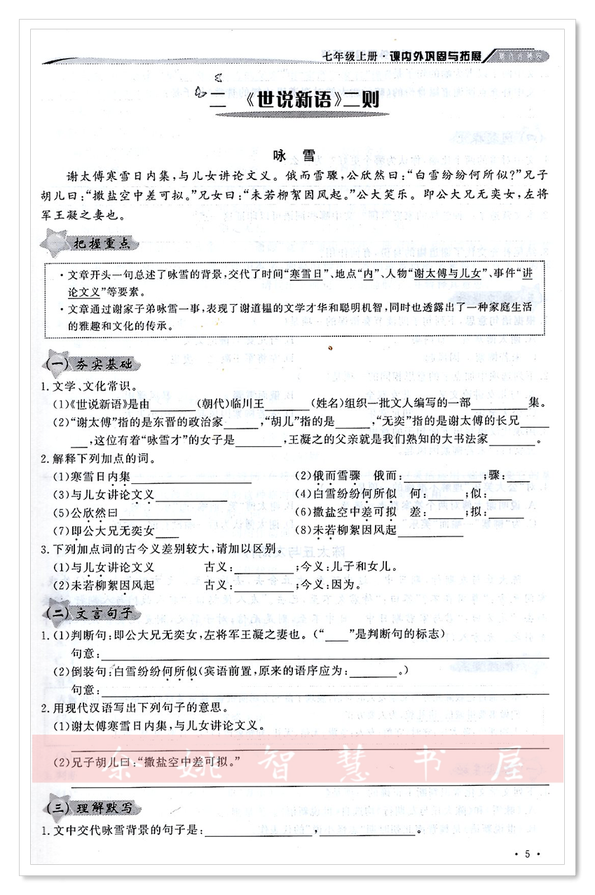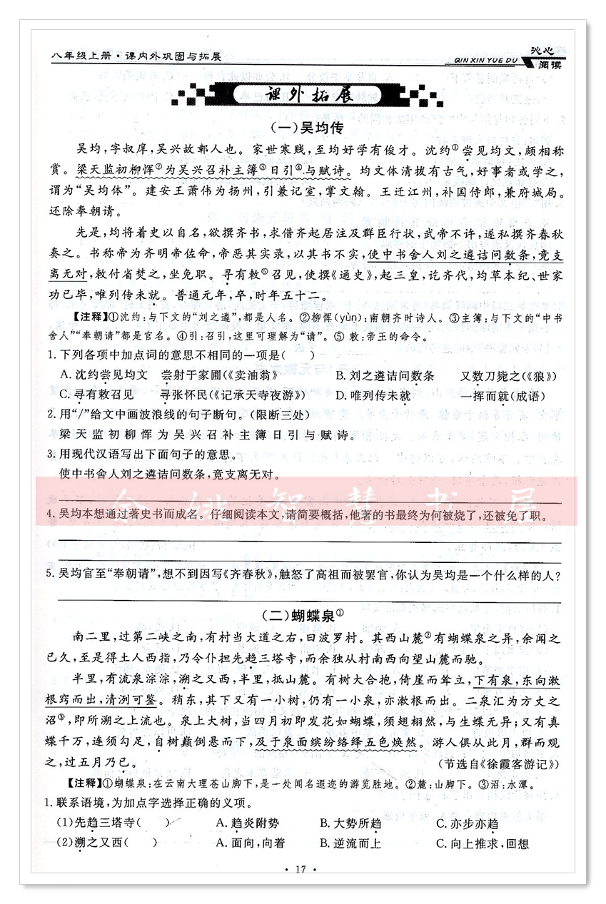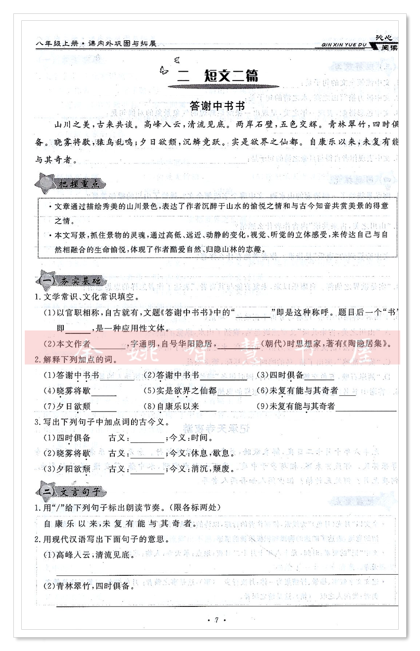 初中文言文课外巩固与拓展七年级上册八年级上册九年级全一册