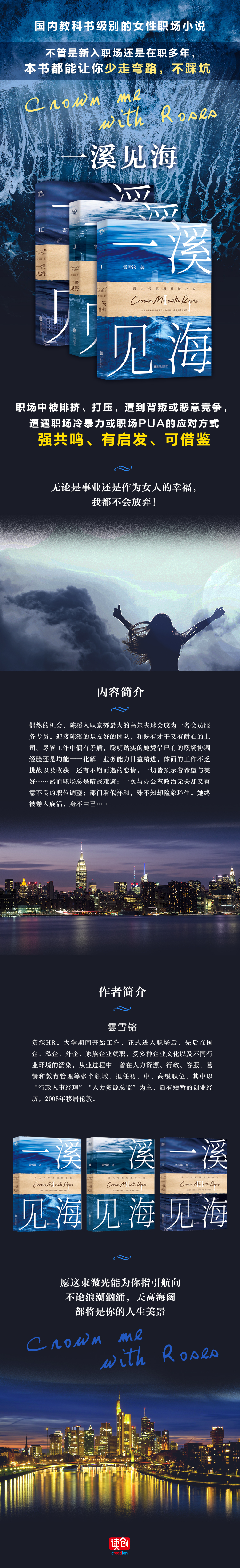 这是一套教科书级别的职场小说,是资深HR总结20年职场经验,从中提炼精华奉献给读者的一套职场生态全景图。《一溪见海》虽是写职场,但情节并未局限于职场故事,而是结合职场人的情感、婚姻等诸多元素,从部起逐步抬高层面,为读者渐渐展开一幅更深、更广的人生画卷。小说具有较强的现实意义,构思及文笔也能产生较好的代入感,令读者跟随情节的发展逐步感受职场的冷漠与温暖、明媚与忧伤,品味、思考人生。