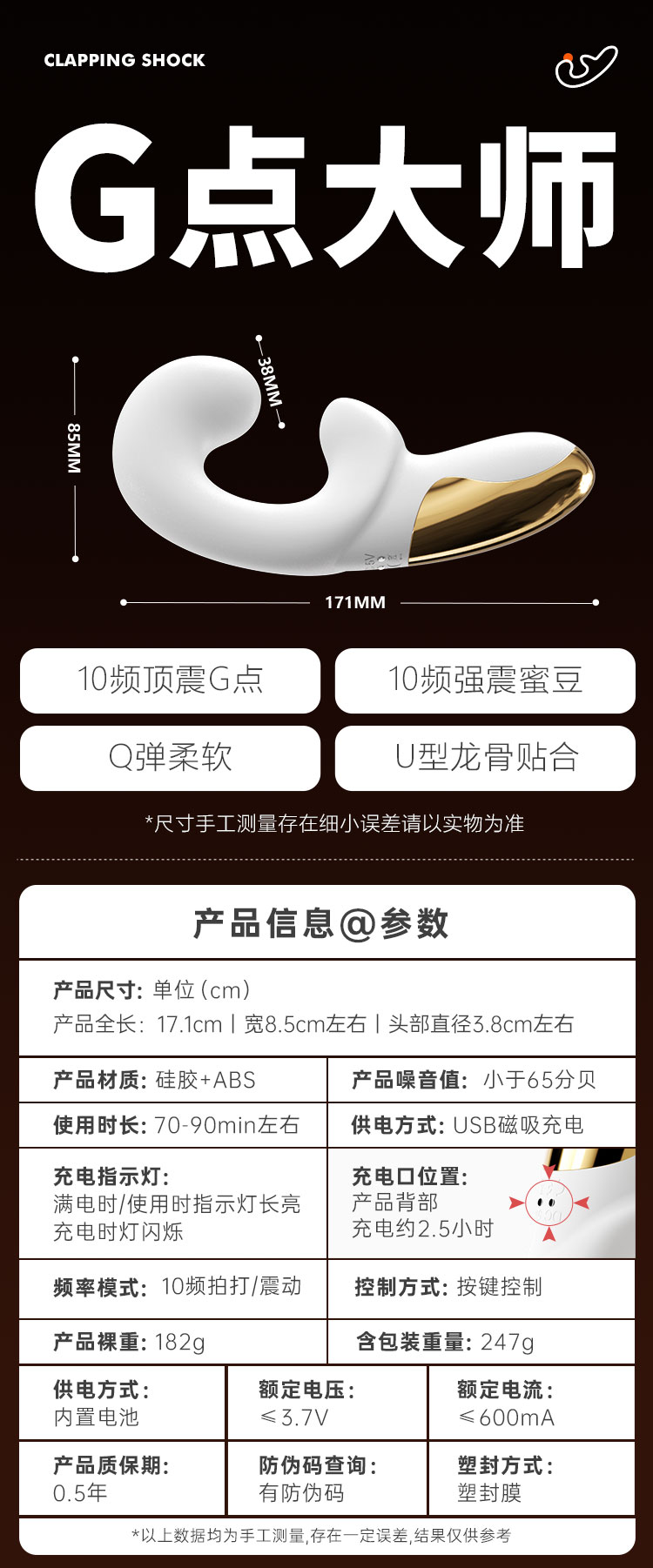 【女用器具】安可尼 G点大师震动棒U形龙骨拍震 扣动棒