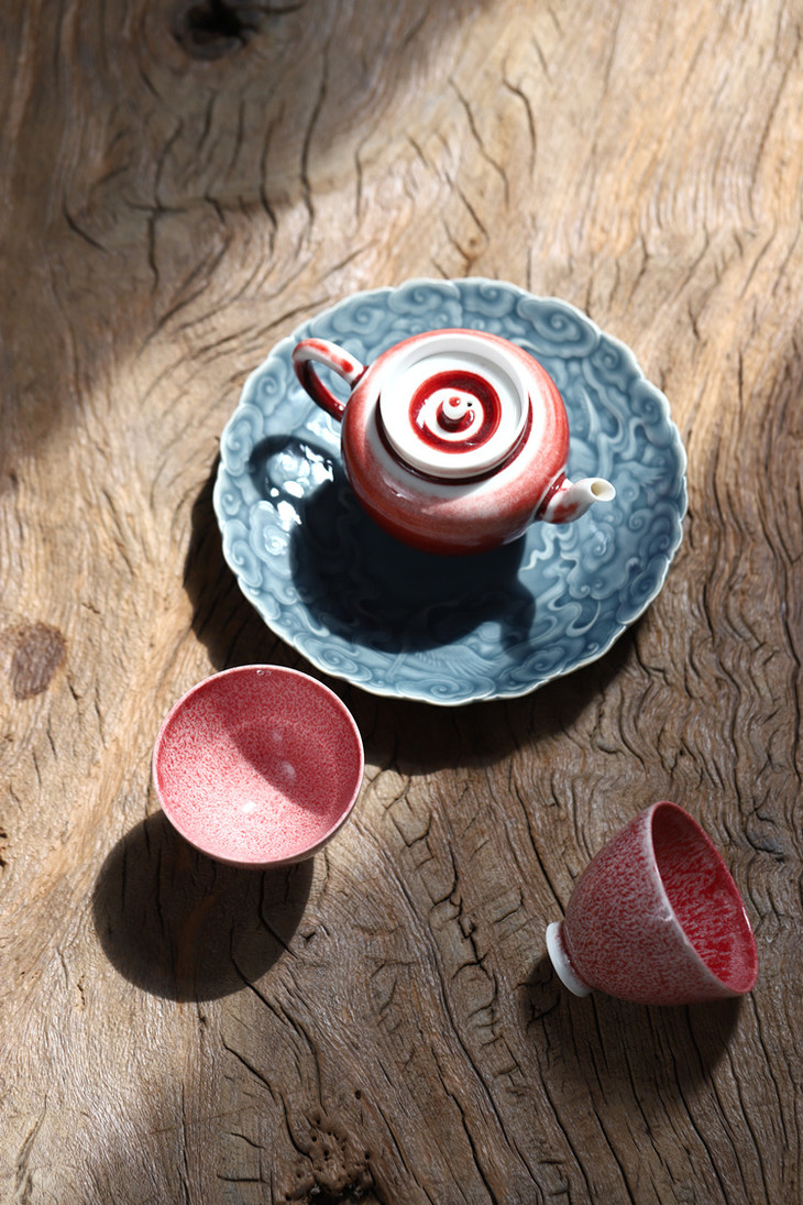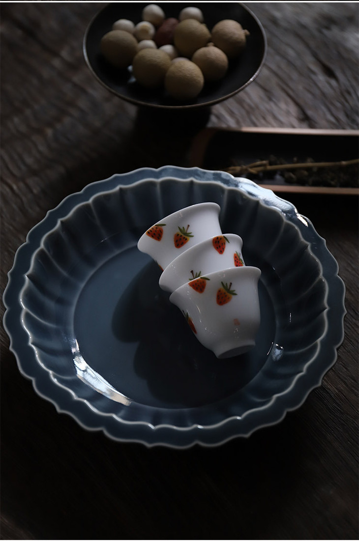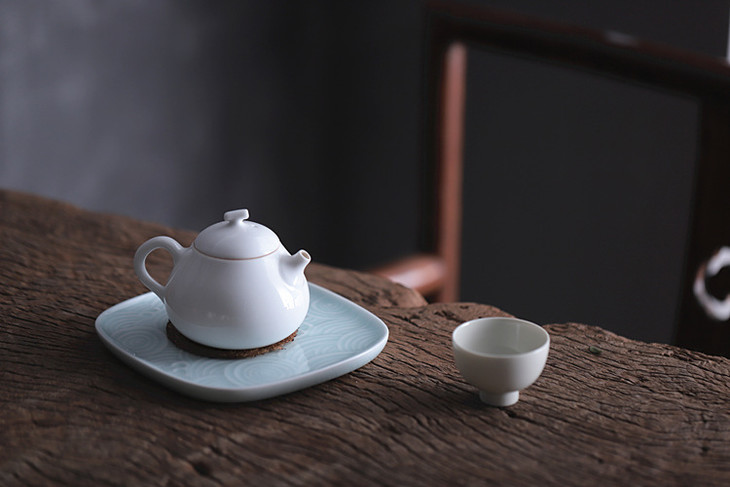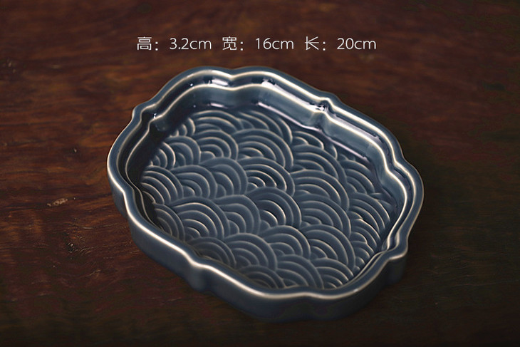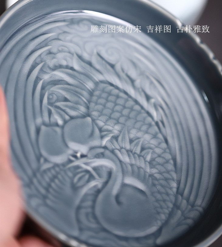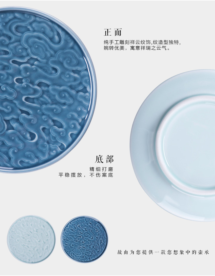 「景德镇祥云、海浪壶承」手工雕刻茶器 圆形方形干泡功夫茶茶具 果盘
