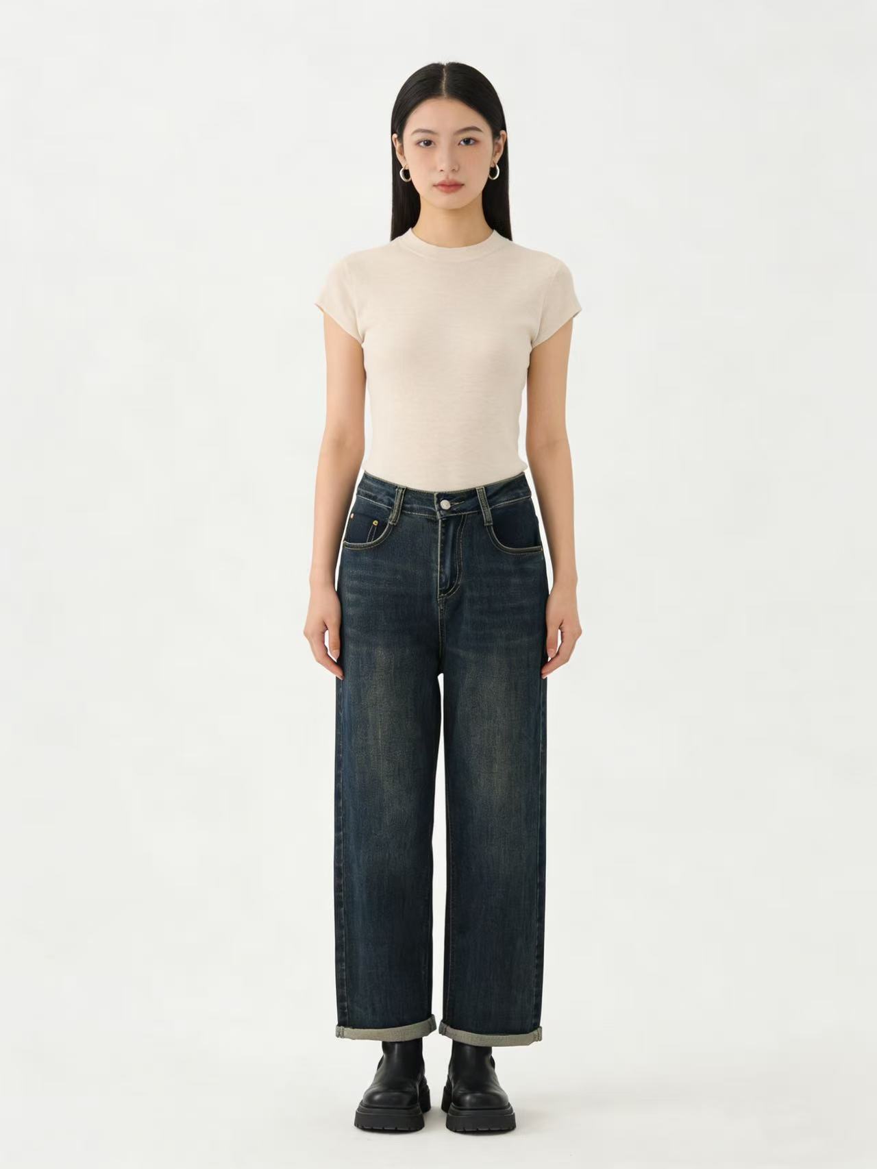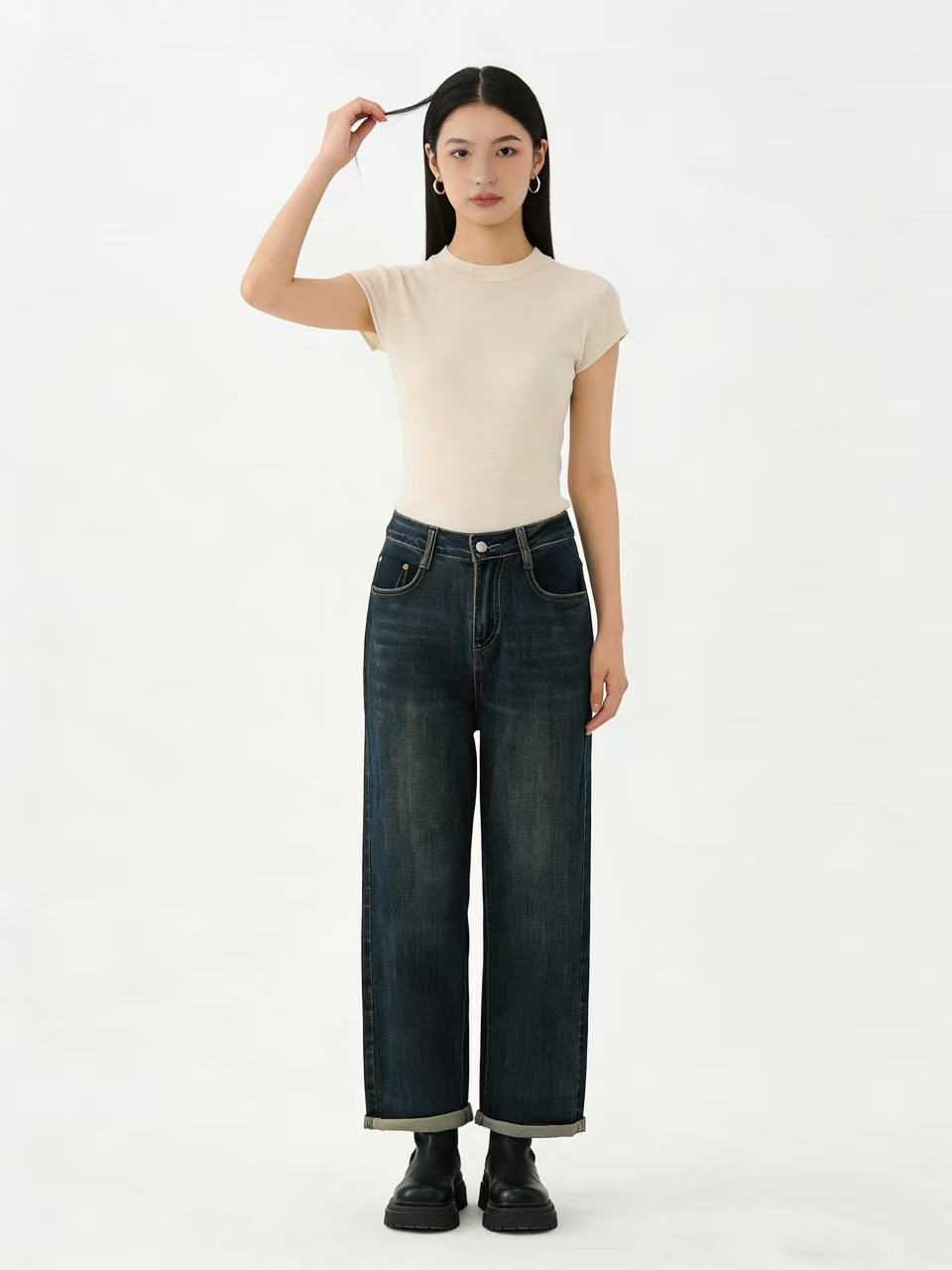 418良粉节|2026 活动爆款 软料牛仔【自营】衣周期 8888(85%棉)卷边老爹裤九分牛仔裤-喜出