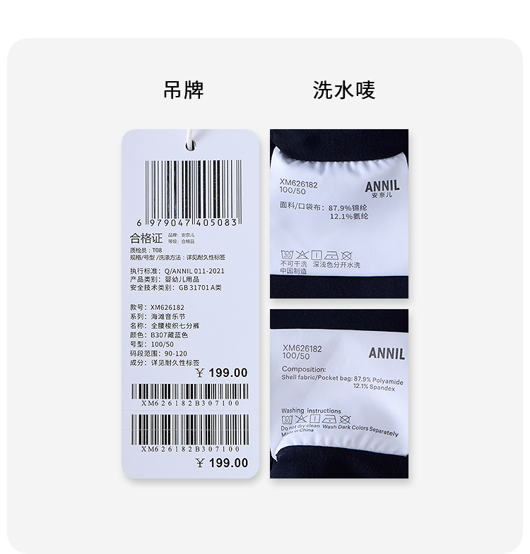 【实体店同款】男女童全腰梭织七分裤夏季新款安奈儿童装XM626182