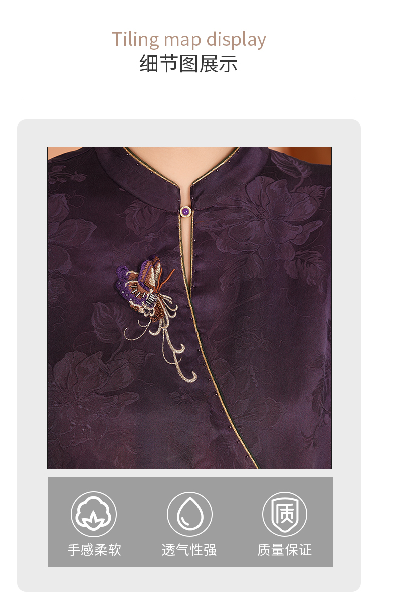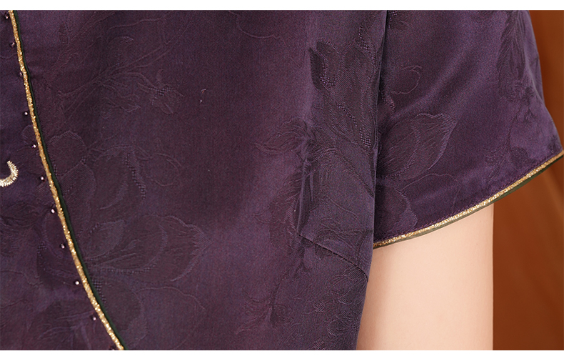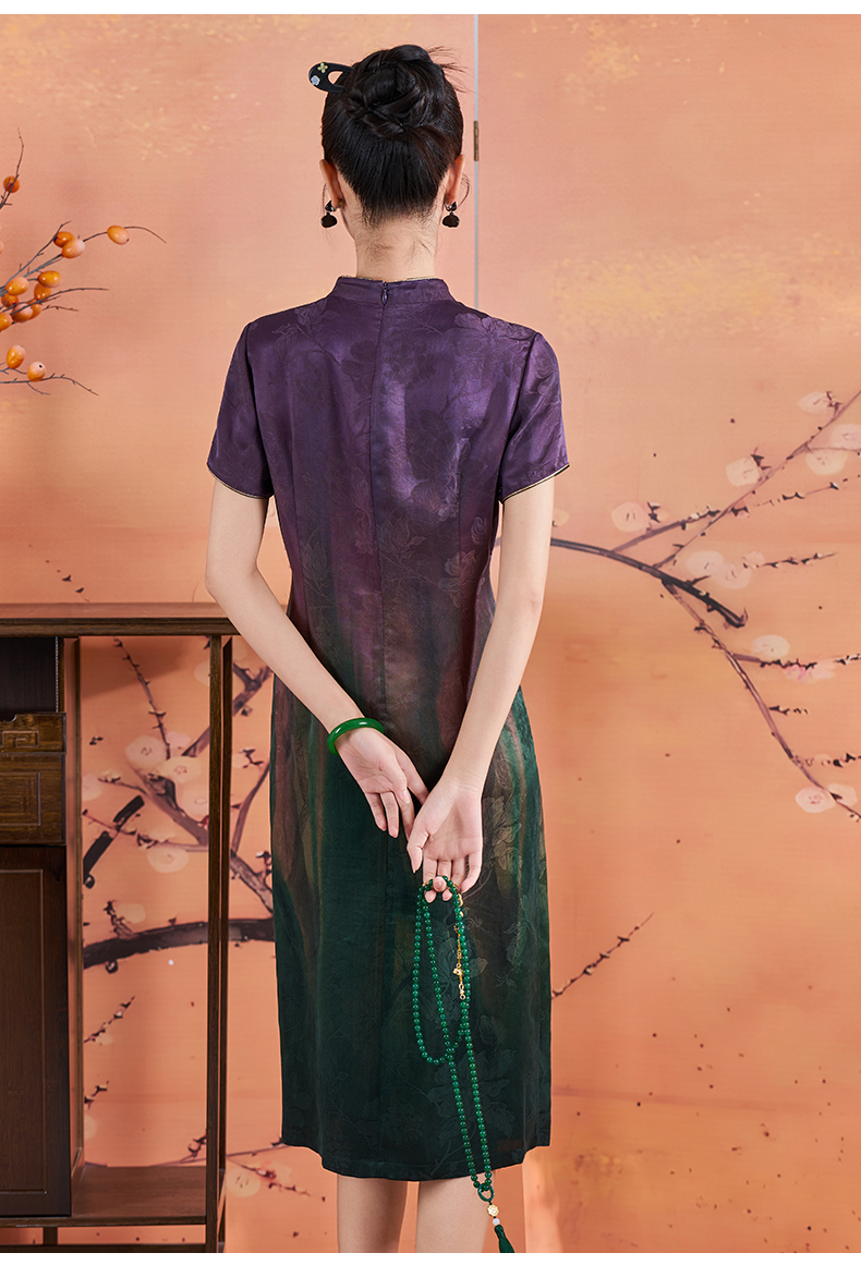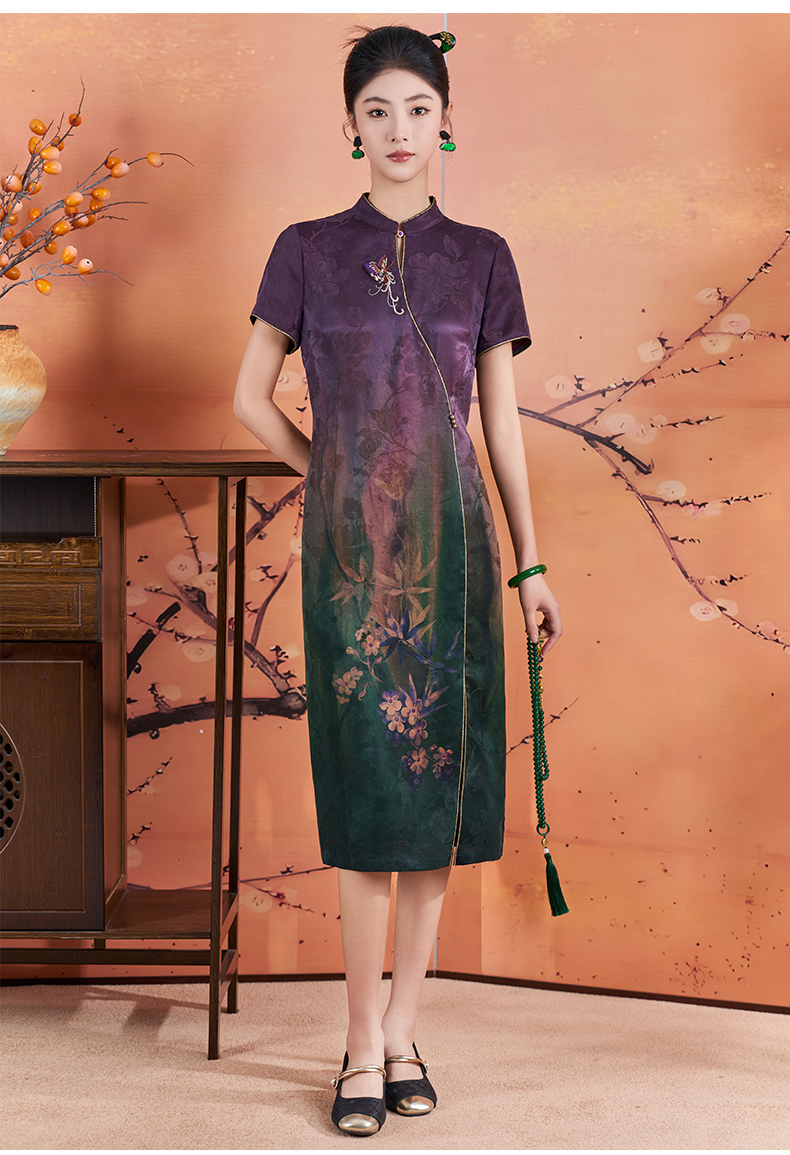 【梅兰九重紫】【香云纱】【花罗】立体剪裁国风印花立领旗袍裙ED2E445