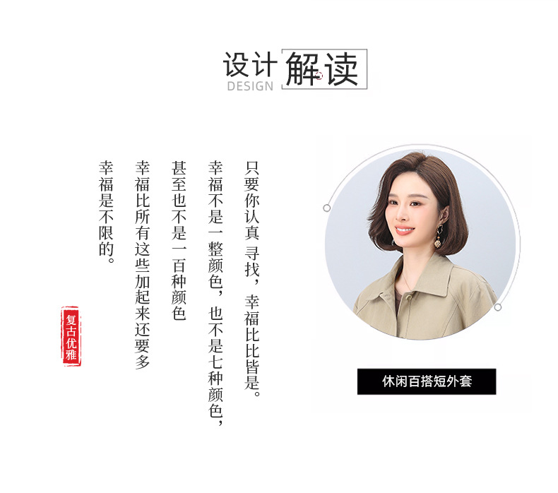 百媚生 短款纯棉休闲大码宽松减龄洋气百搭夹克上衣BKYQL9008