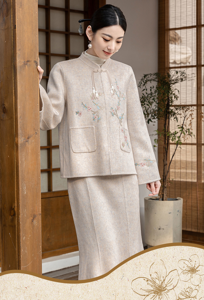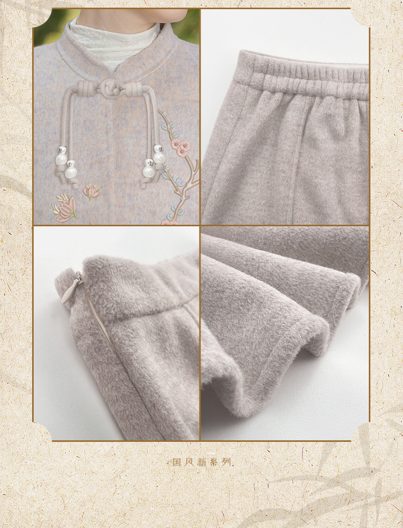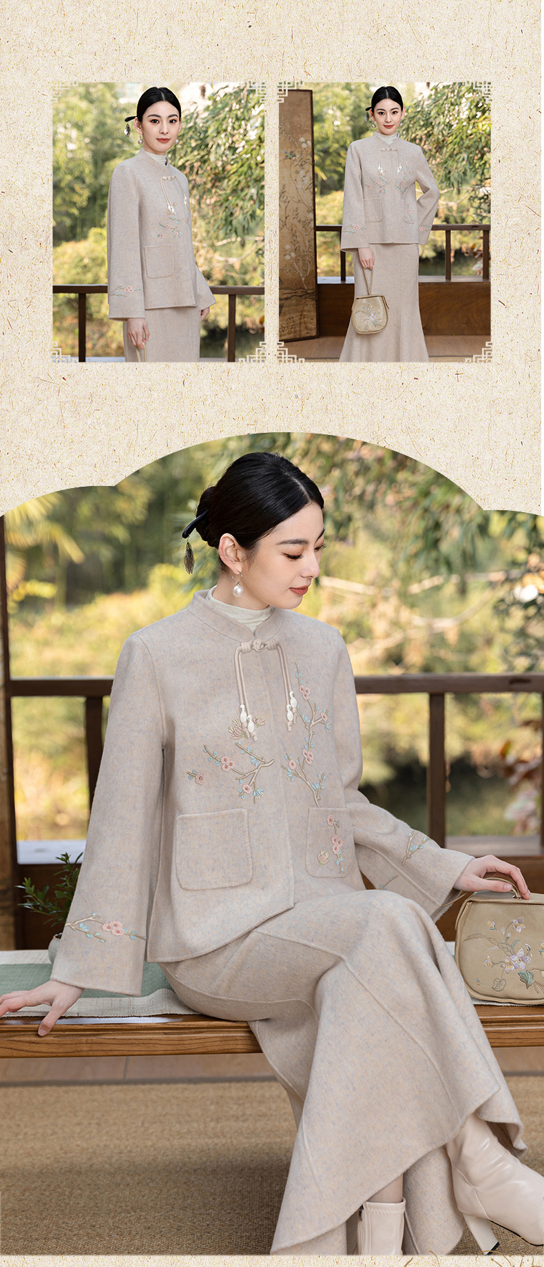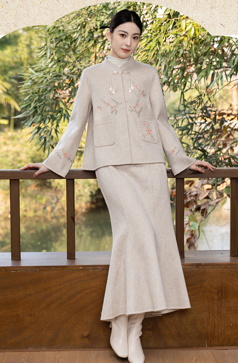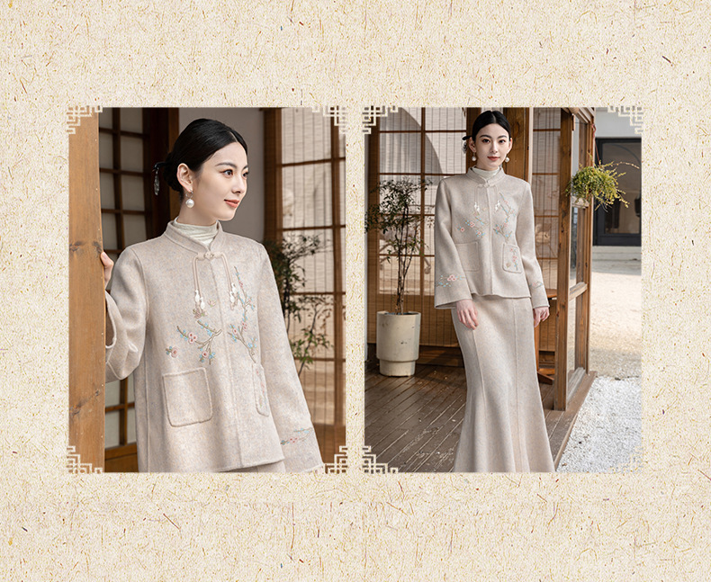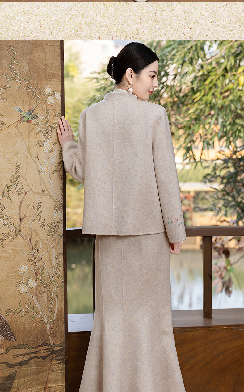 双面羊毛复古新中式套装,外套裙子两件套百搭通勤显高显瘦ZMFS24105