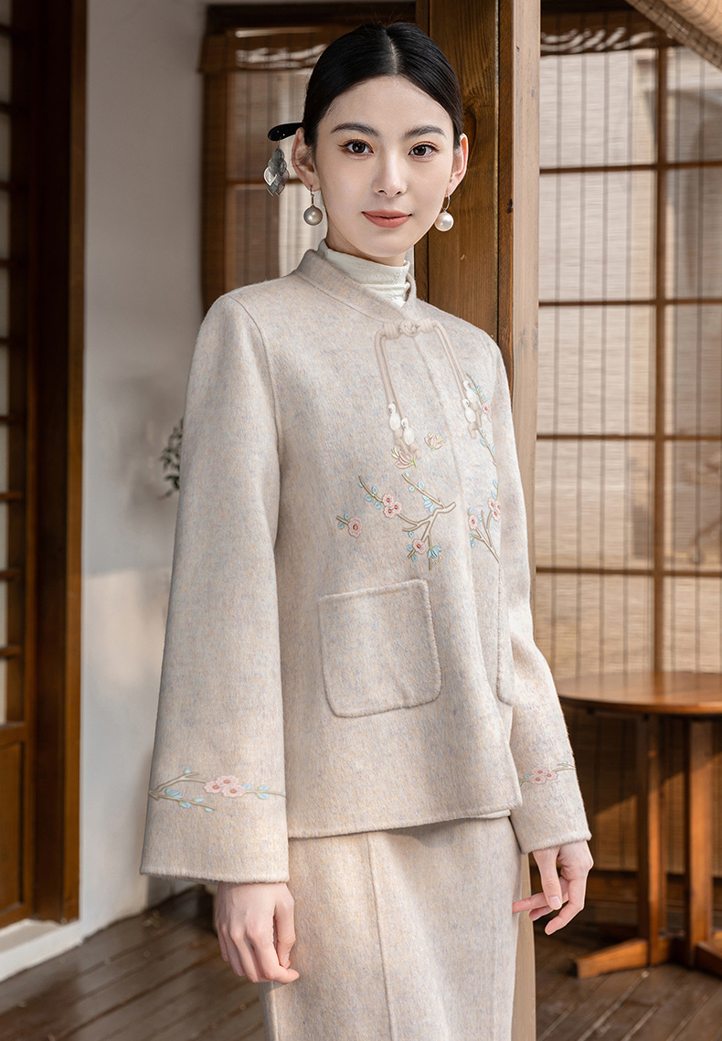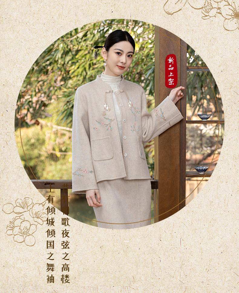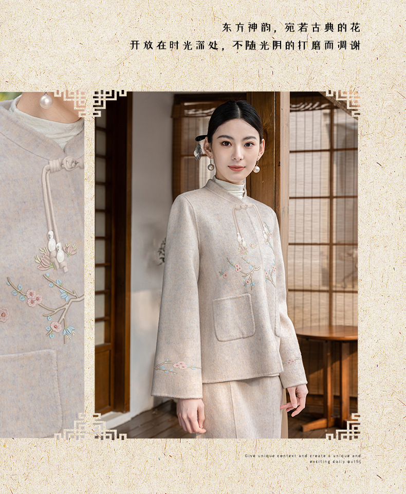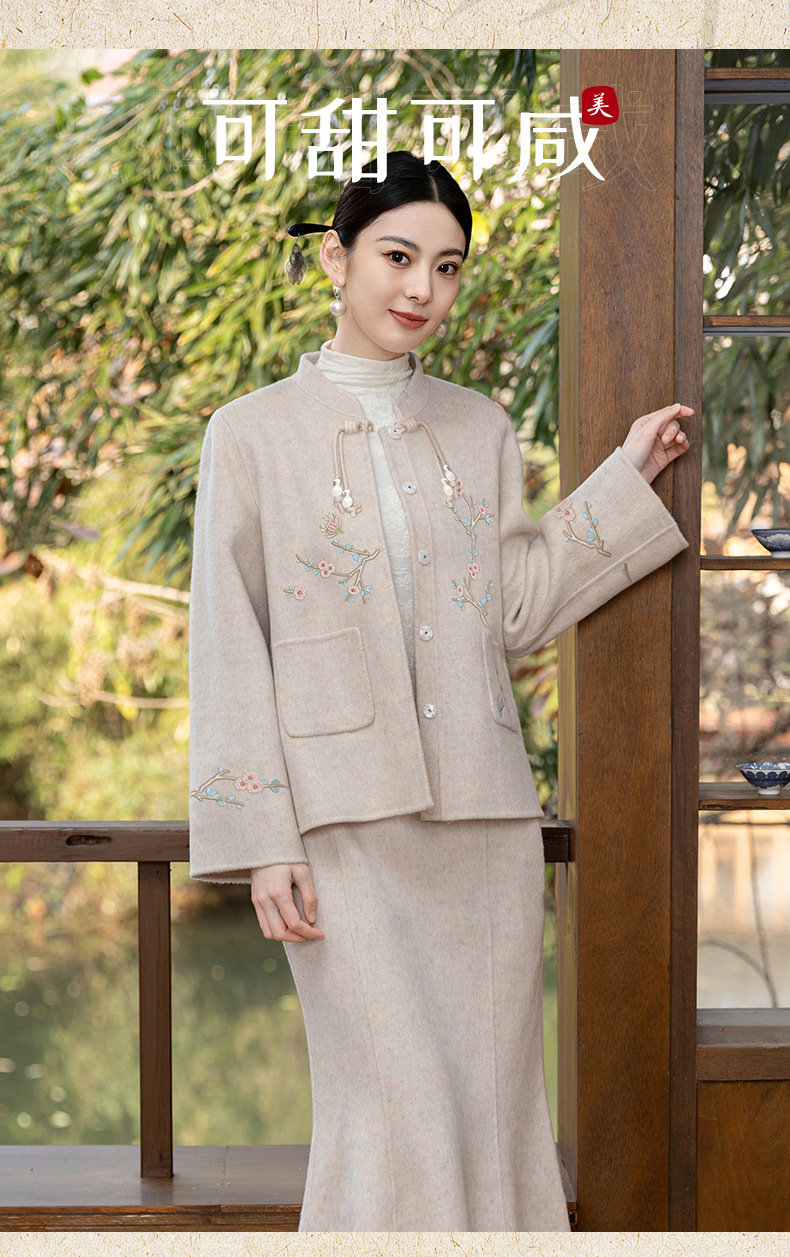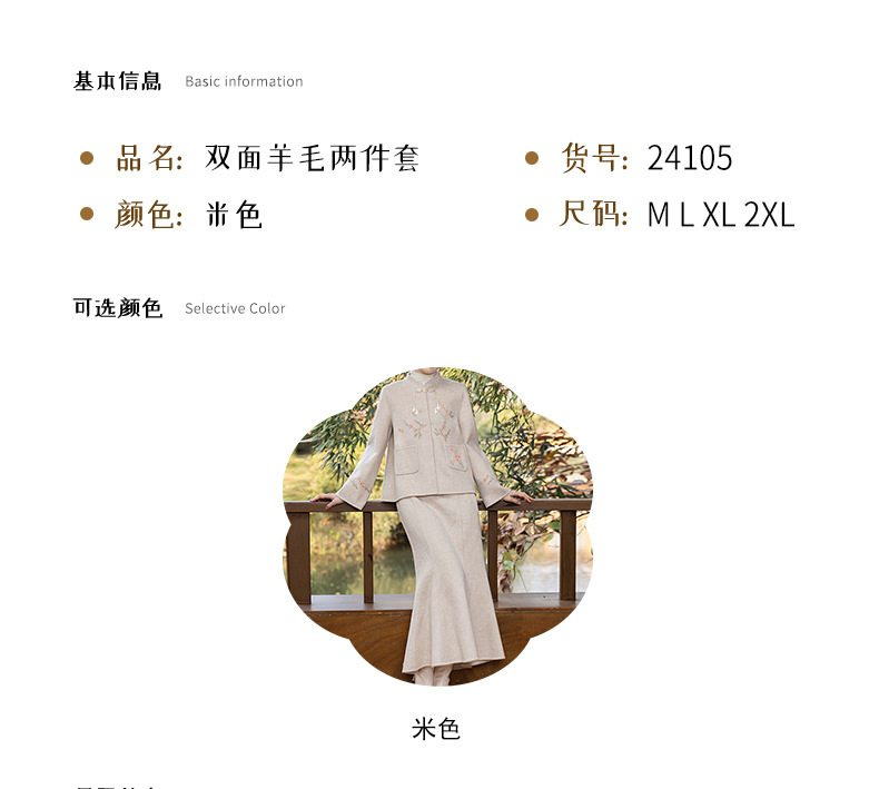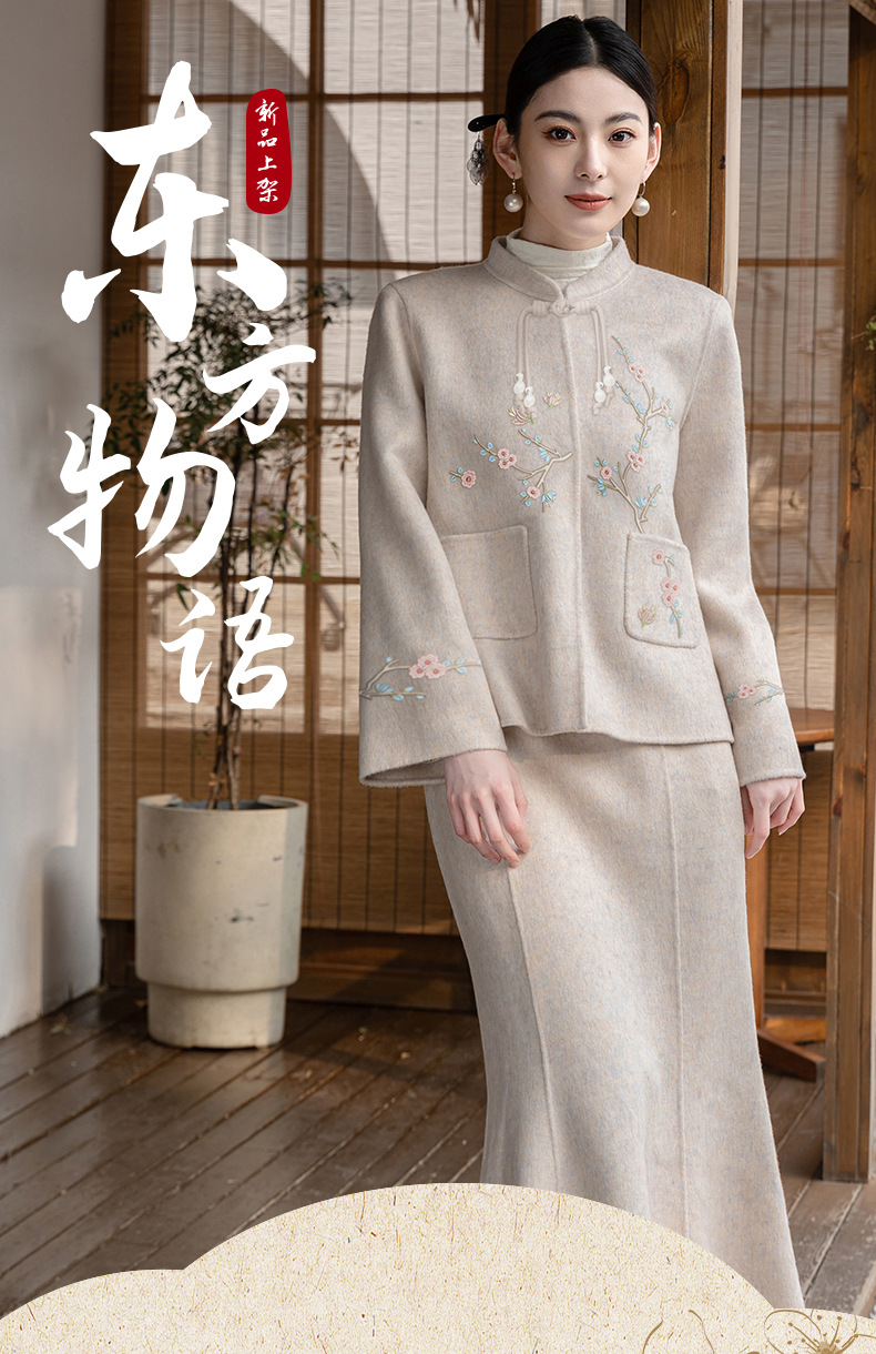 双面羊毛复古新中式套装,外套裙子两件套百搭通勤显高显瘦ZMFS24105