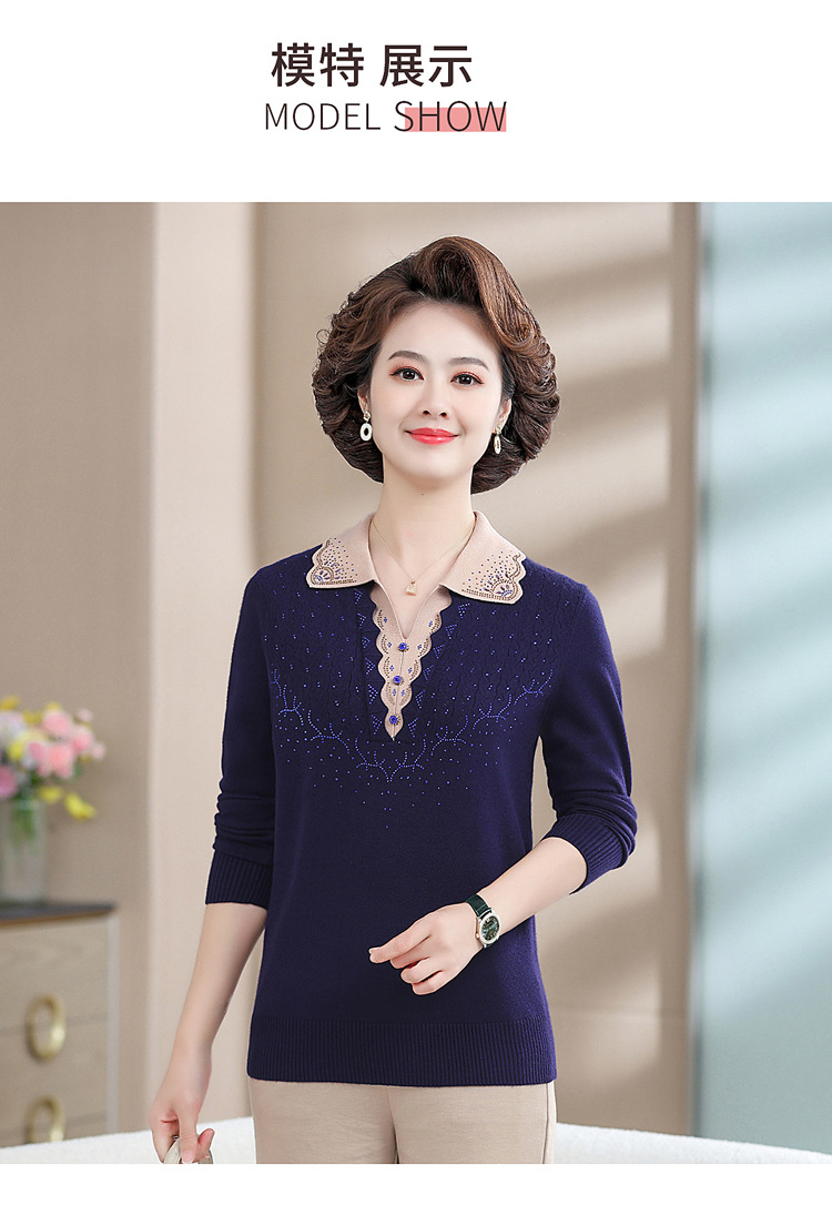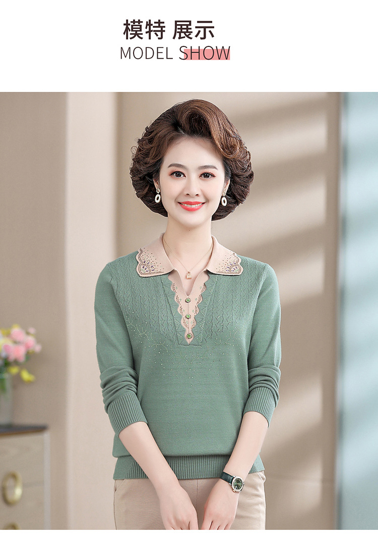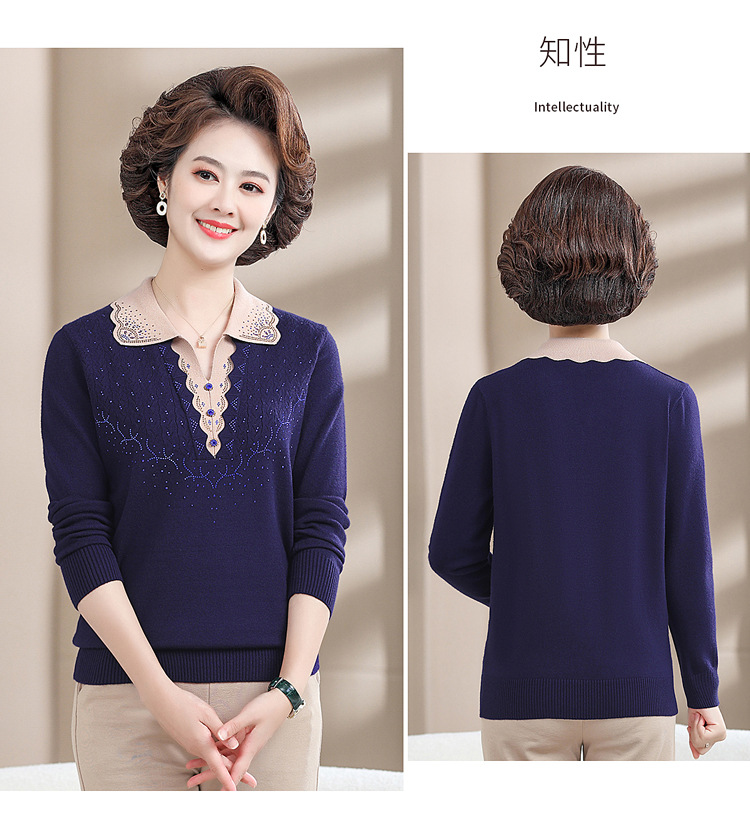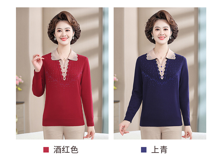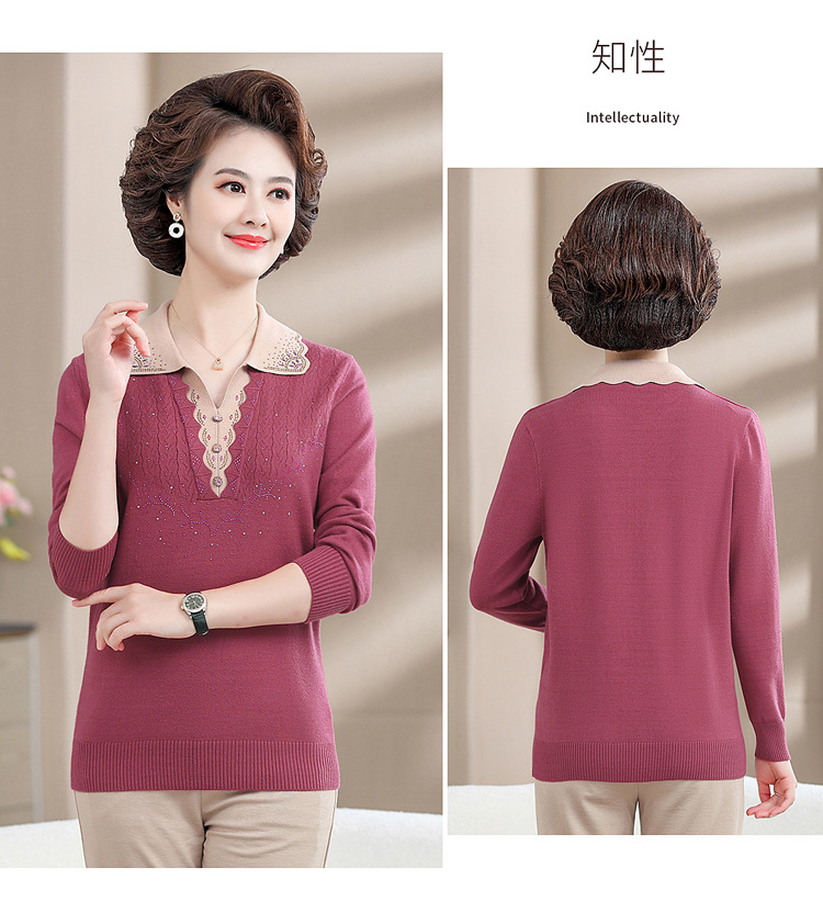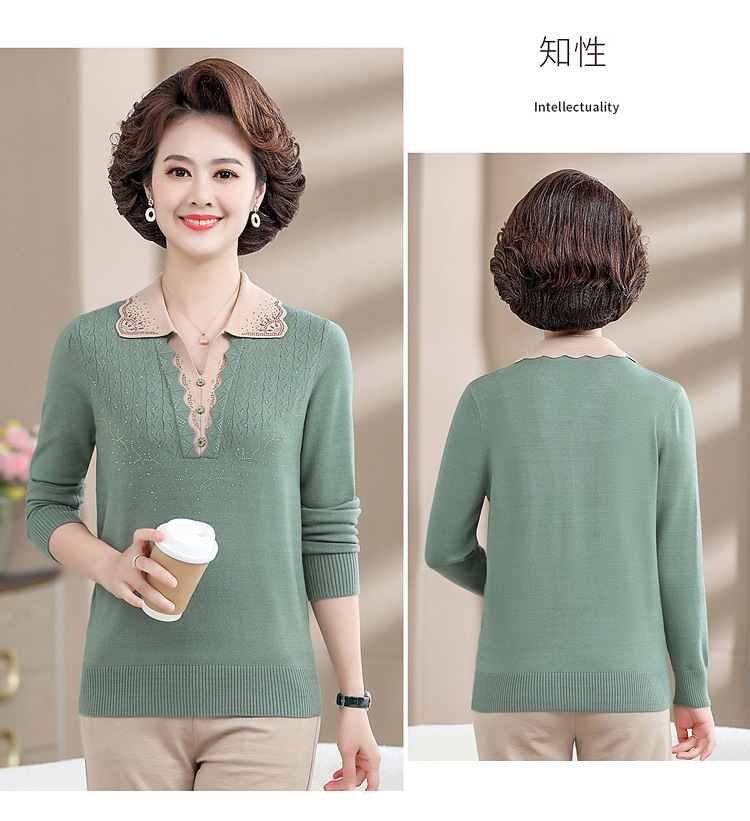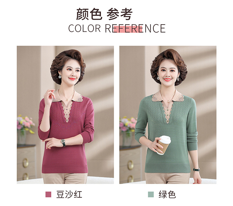 W012-1310-85-138中年妈妈装春秋季外穿打底衫洋气翻领毛衫中老年女短款针织衫上衣