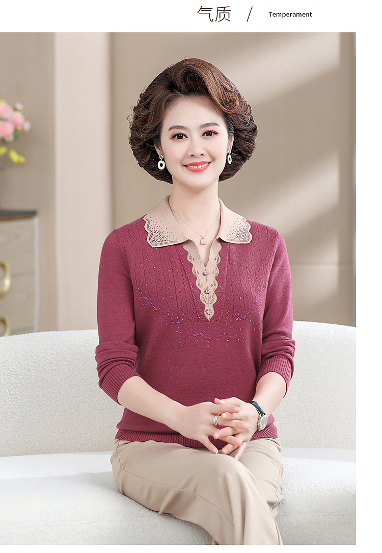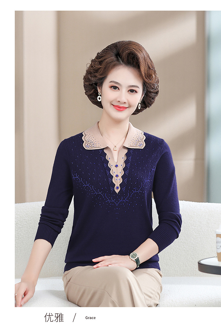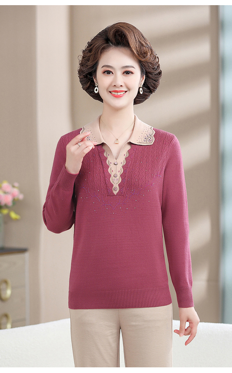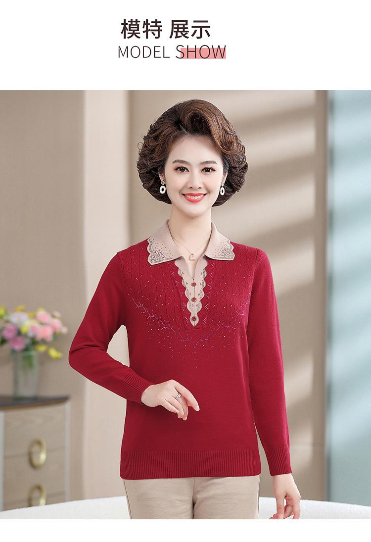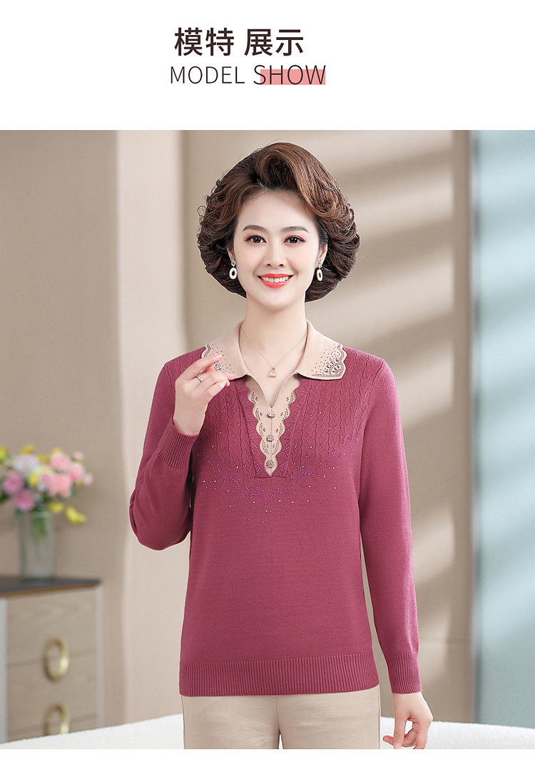 W012-1310-85-138中年妈妈装春秋季外穿打底衫洋气翻领毛衫中老年女短款针织衫上衣