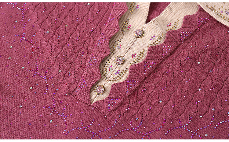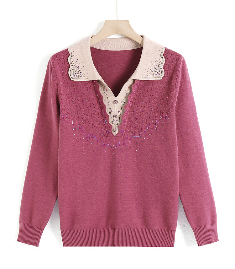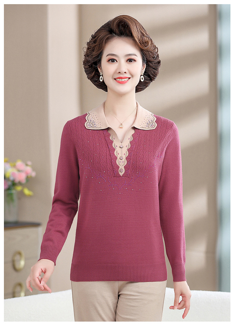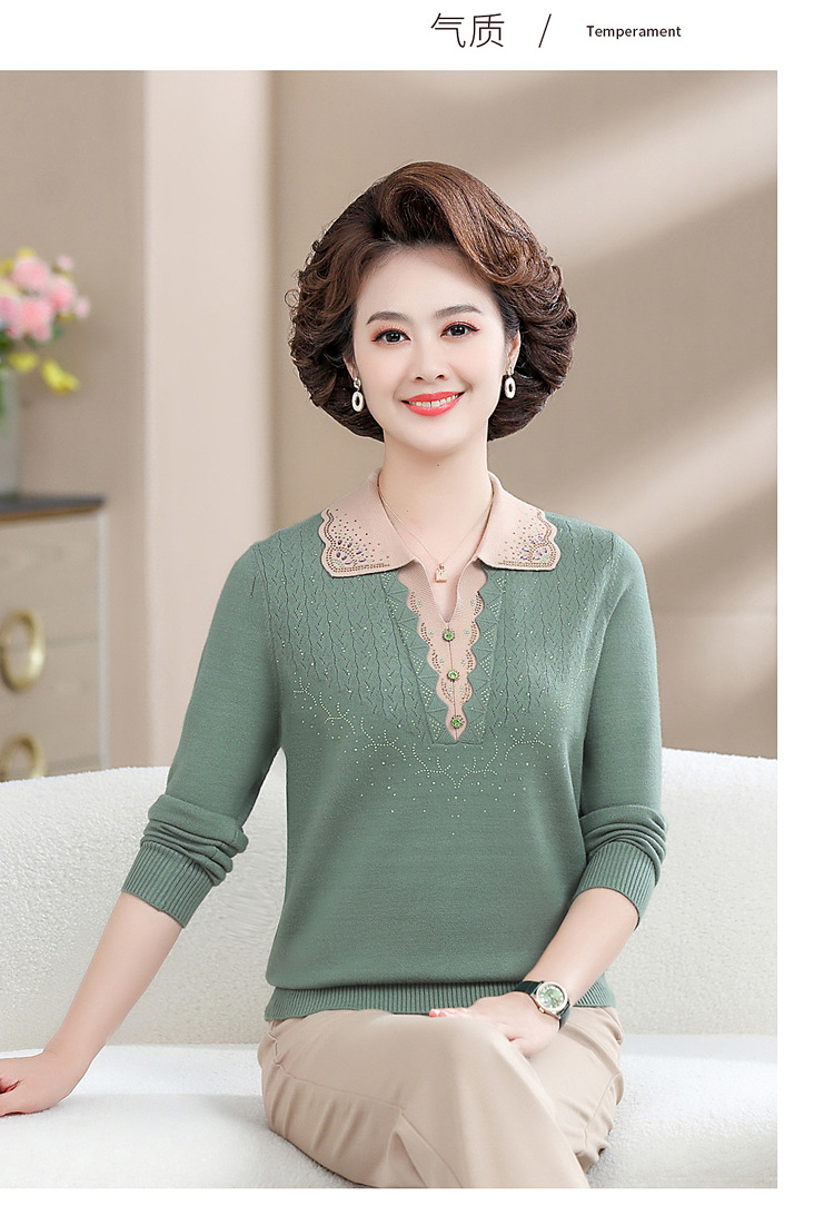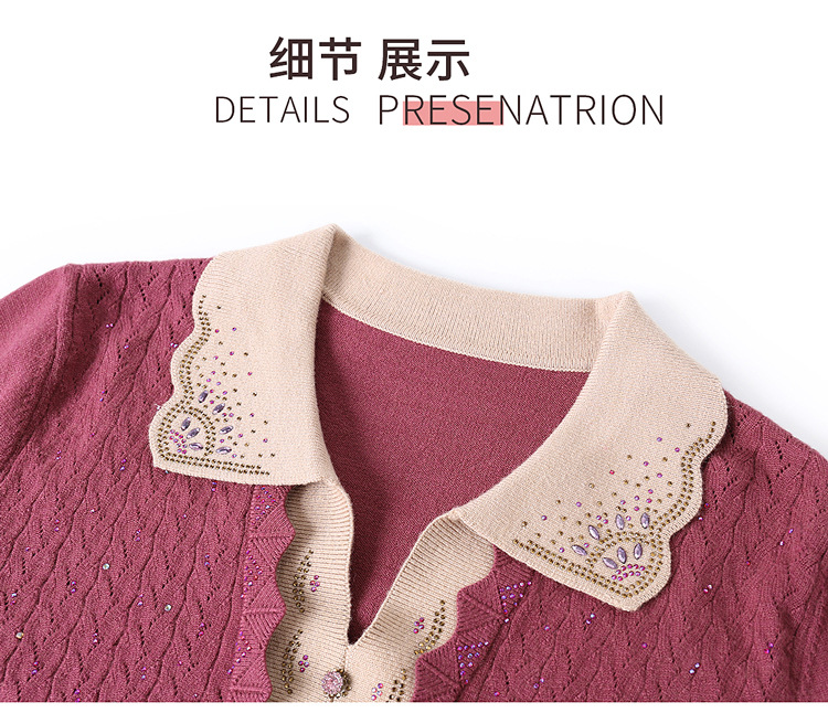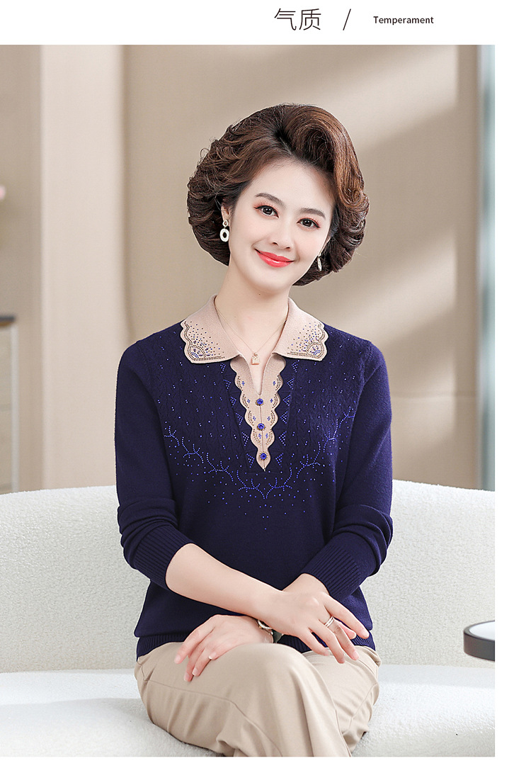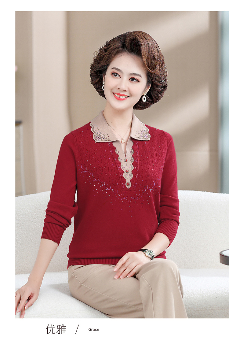 W012-1310-85-138中年妈妈装春秋季外穿打底衫洋气翻领毛衫中老年女短款针织衫上衣