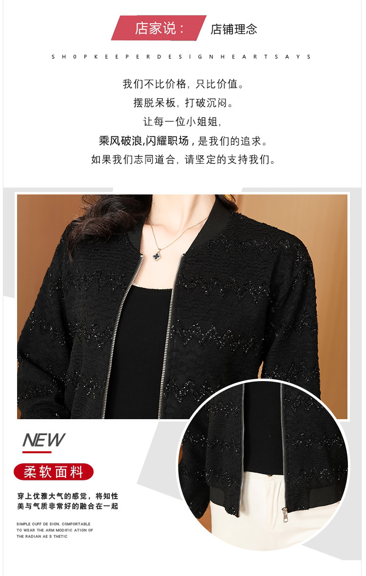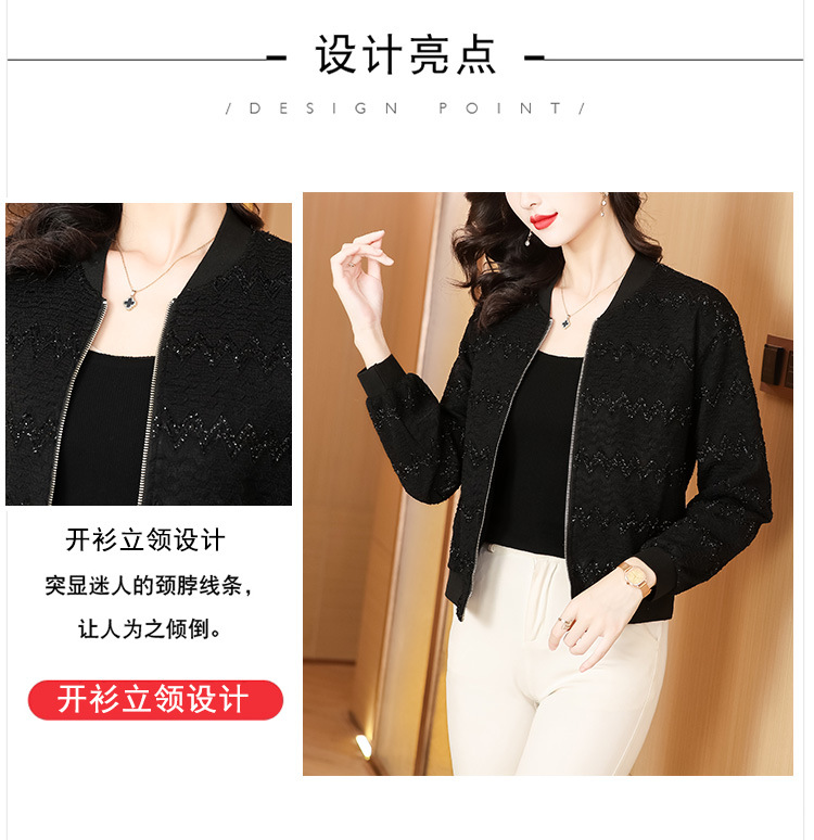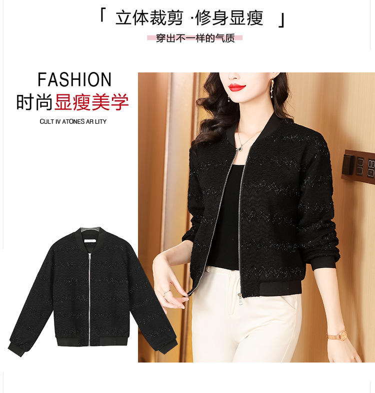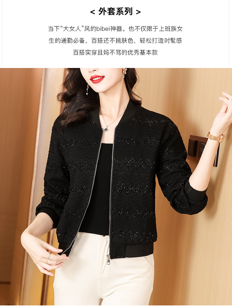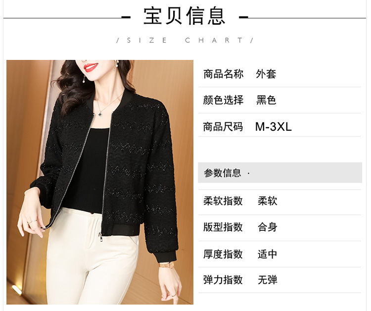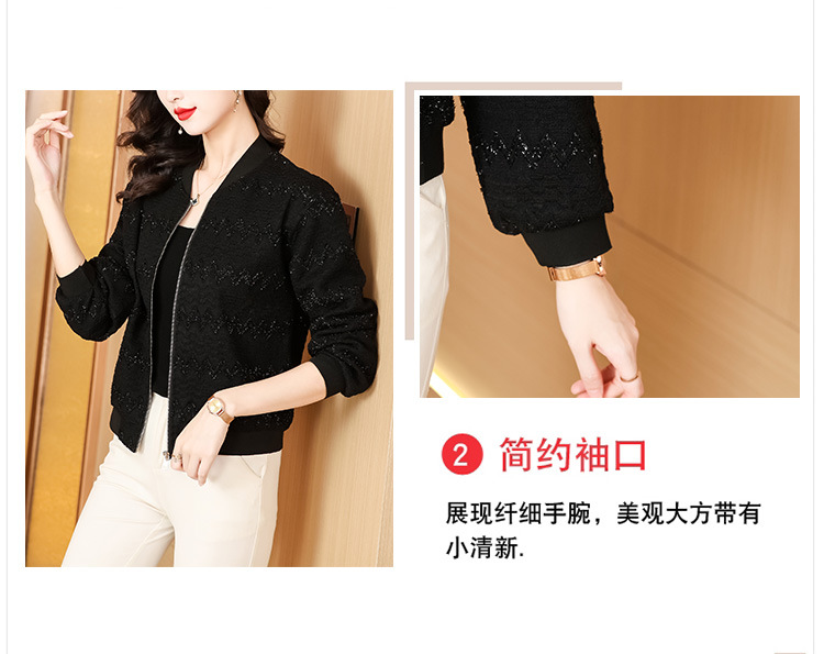 KQL-E49N535小香风外套女宽松休闲棒球服纯色镂空亮丝落肩袖夹克上衣