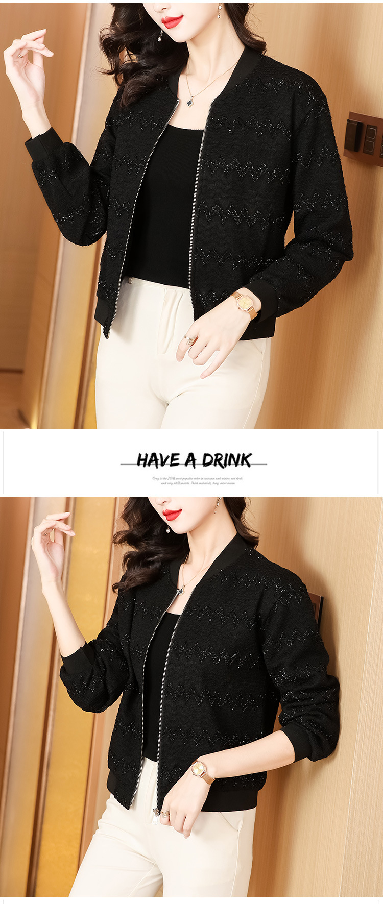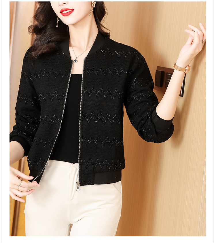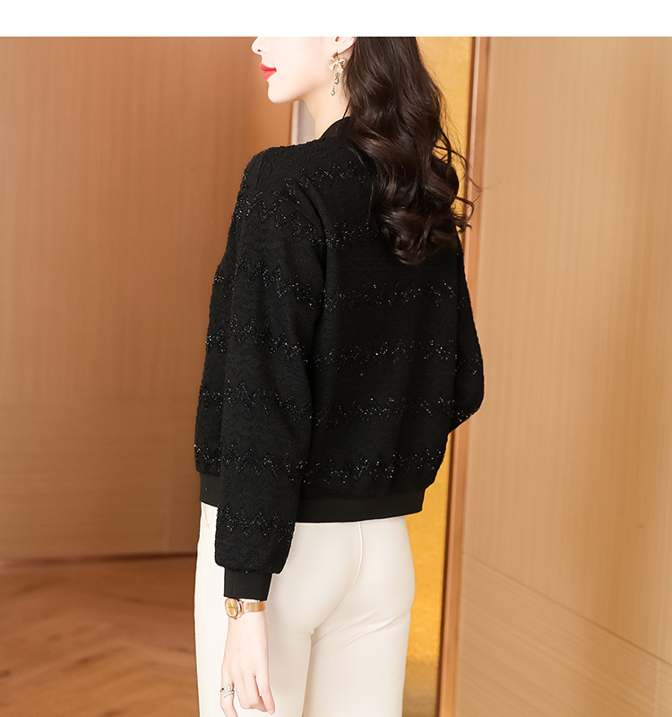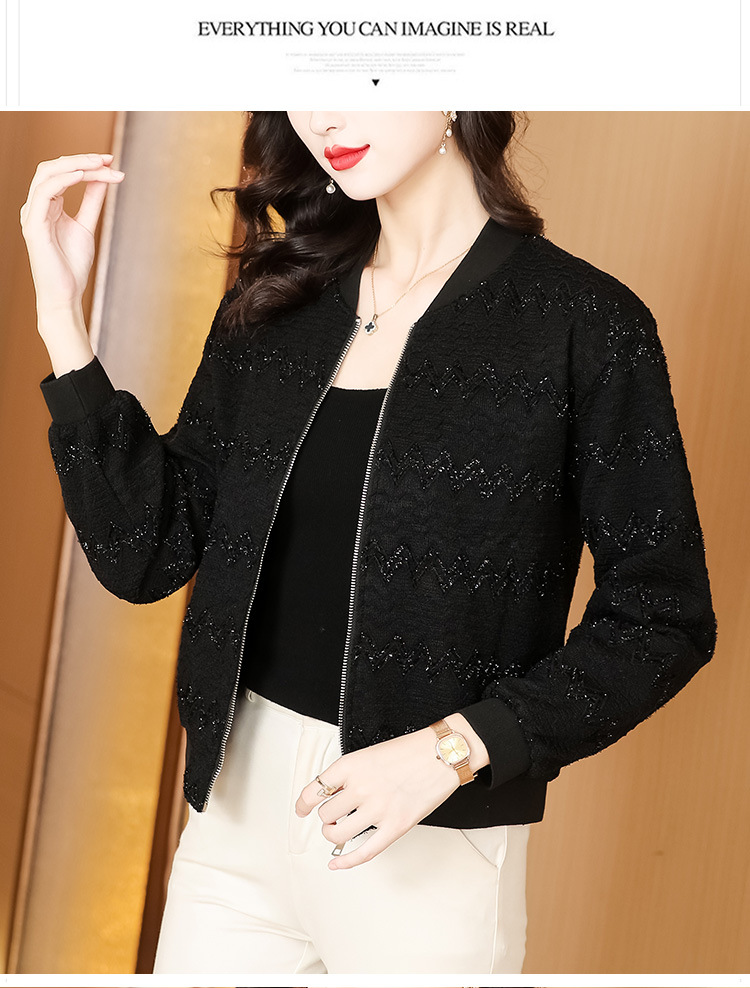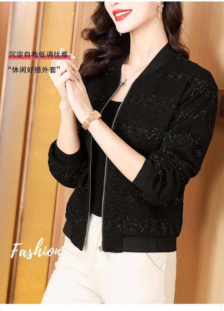 KQL-E49N535小香风外套女宽松休闲棒球服纯色镂空亮丝落肩袖夹克上衣