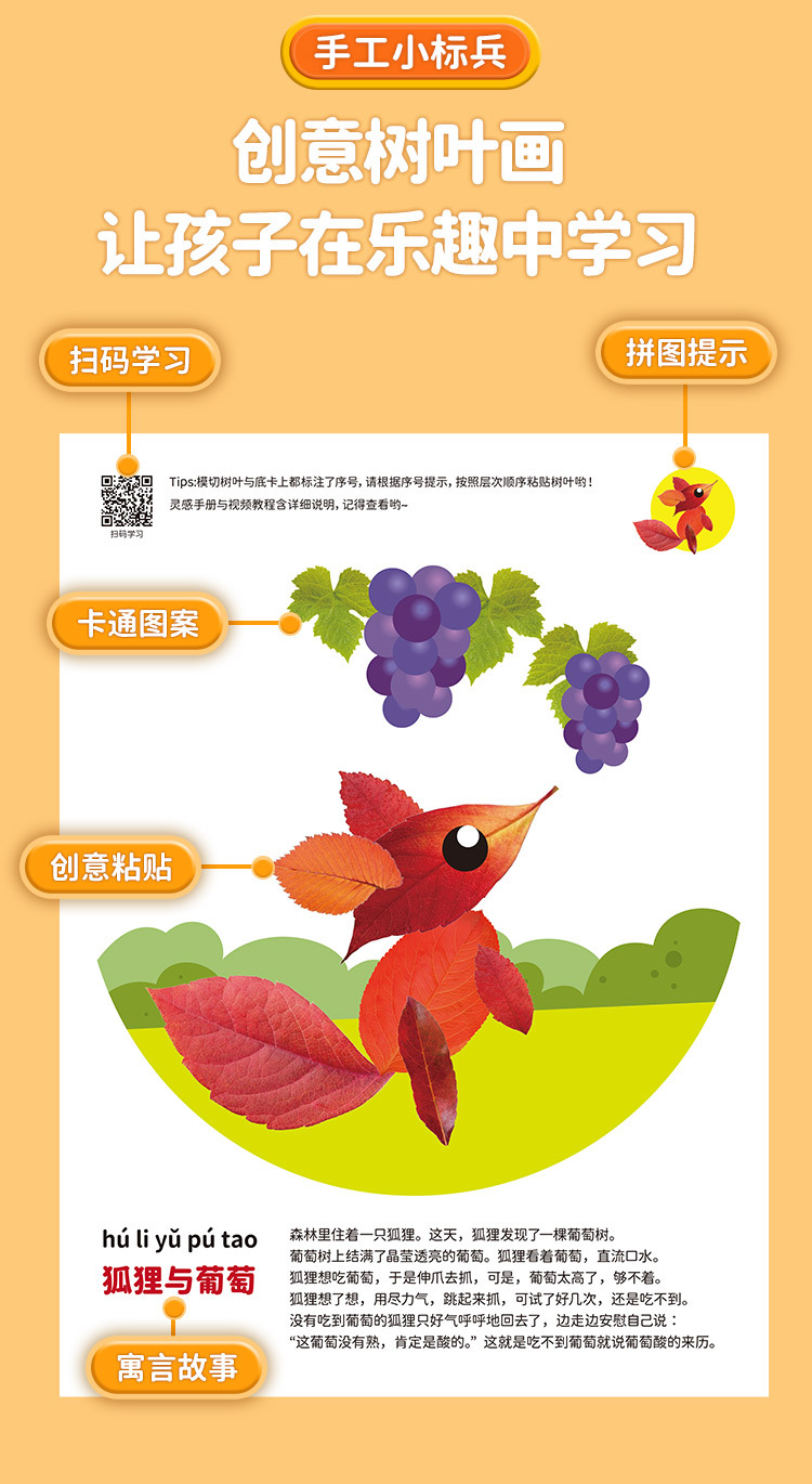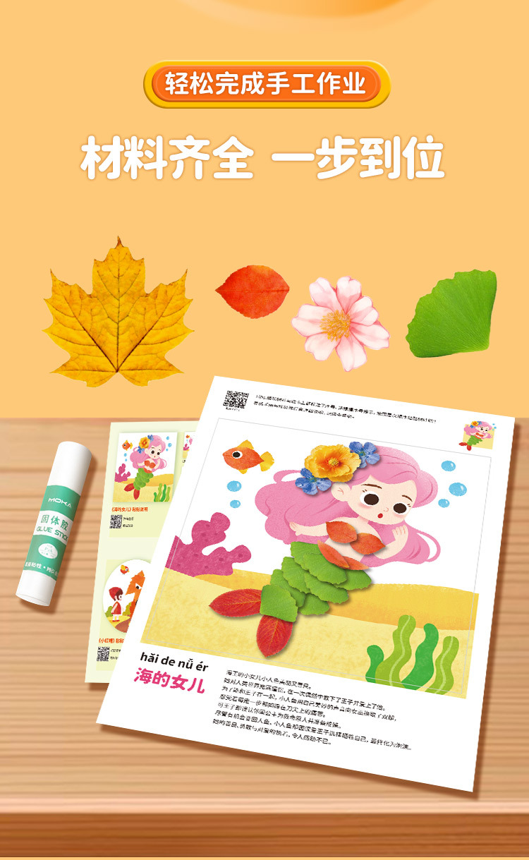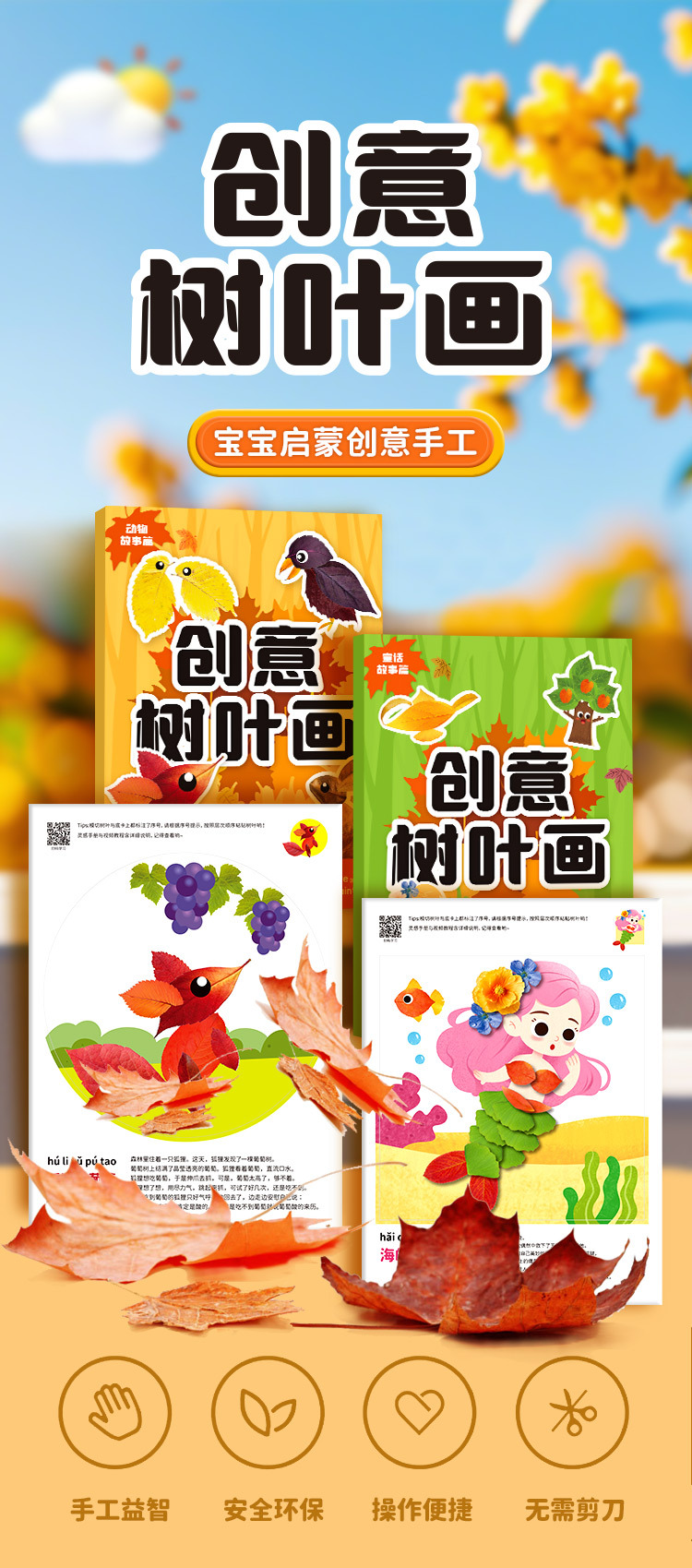 【趣味DIY!边玩边学】操作简单,附带视频教程,创意树叶画儿童DIY手工材料包粘贴植物标本画册幼儿宝宝益智玩具。rb