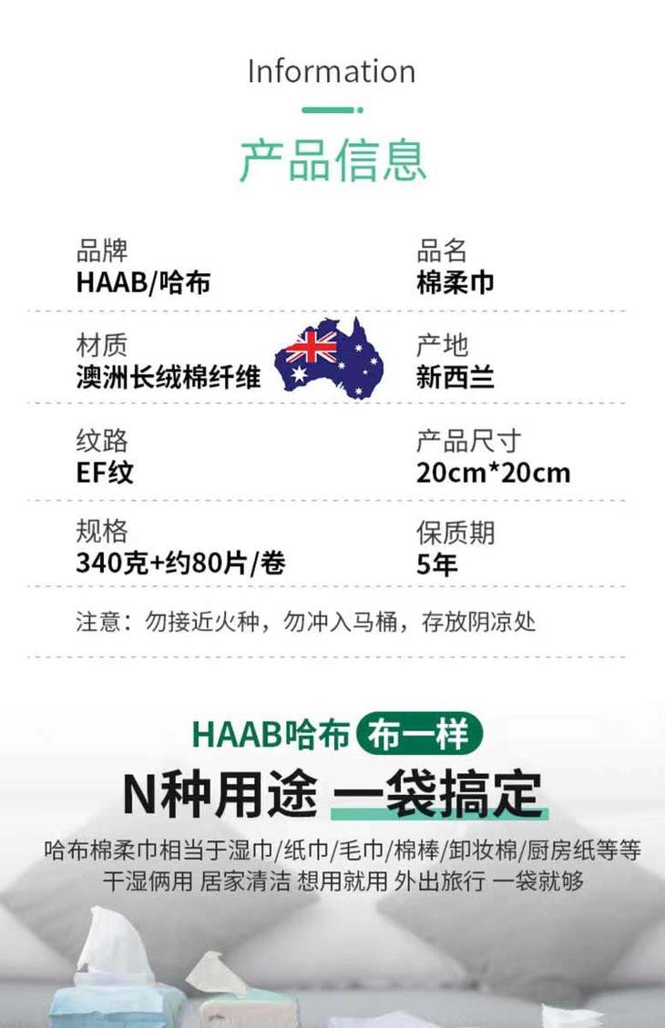 现货~澳洲哈布洗脸巾4卷~浙江发货
