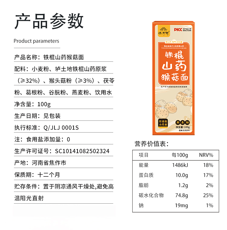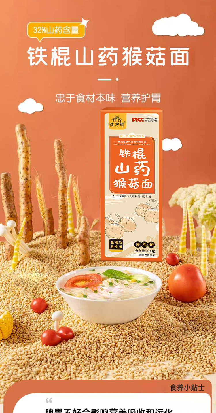 铁棍山药猴菇面 | 100g/盒 垆土地铁棍山药 道地原材 筋道爽滑 营养快手挂面面条 怀府街