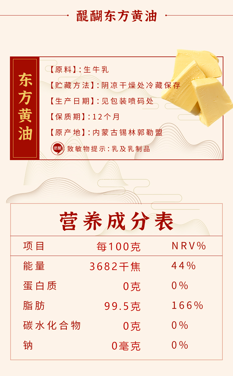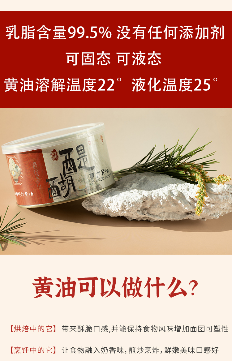 【东方酪】醍醐·中国草饲发酵黄油·牛奶黄油色泽乳黄·配料表仅生牛乳