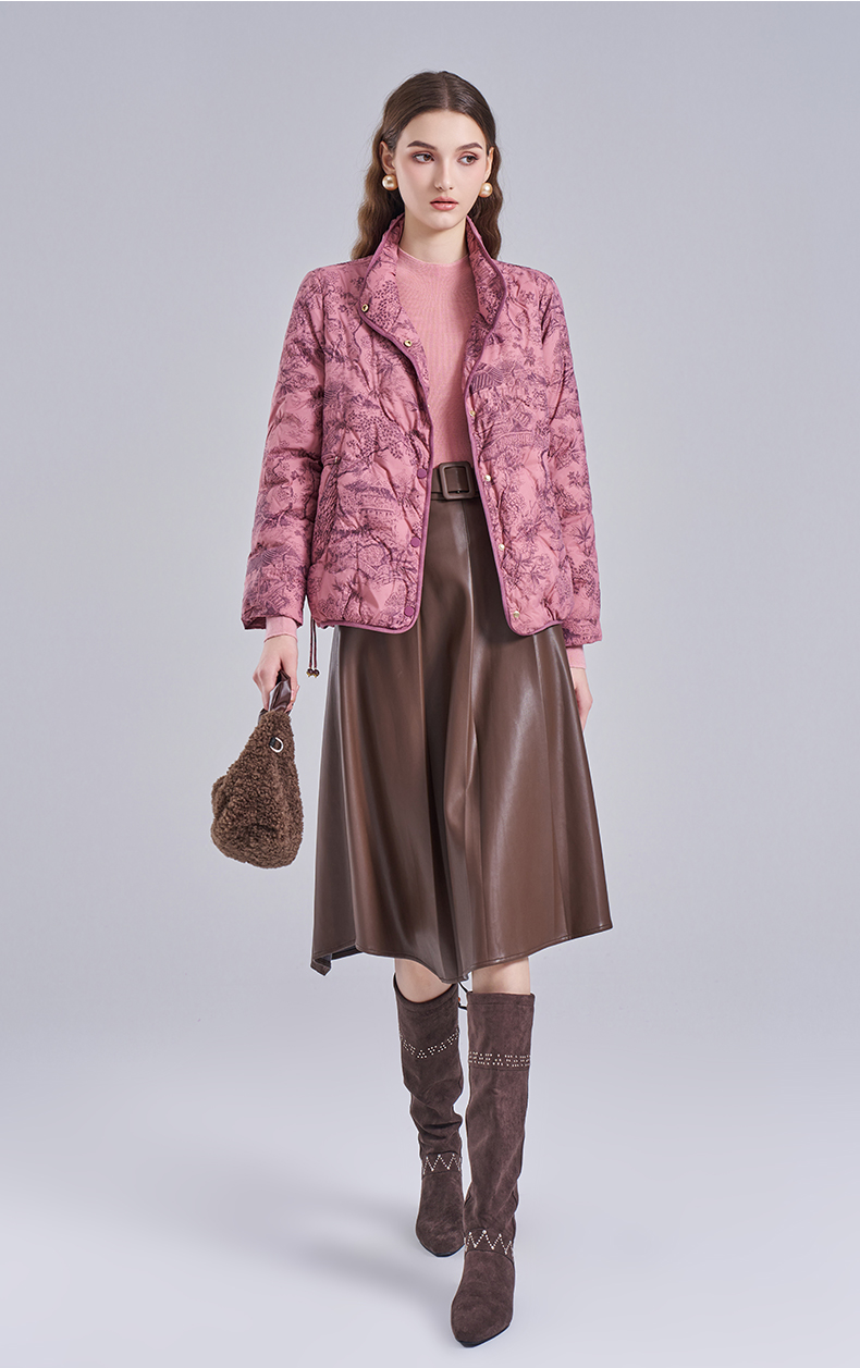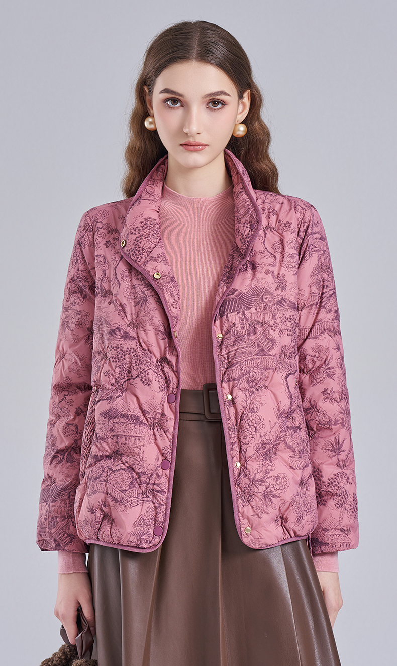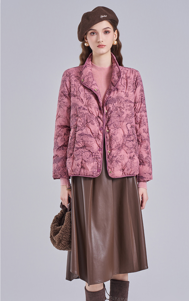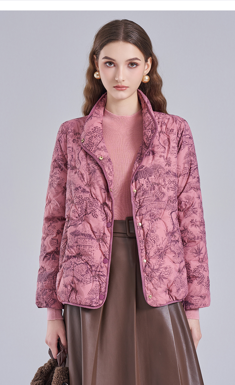 乔万尼茧型数码印花休闲感白鸭绒保暖短款羽绒服EM4T611