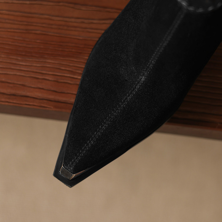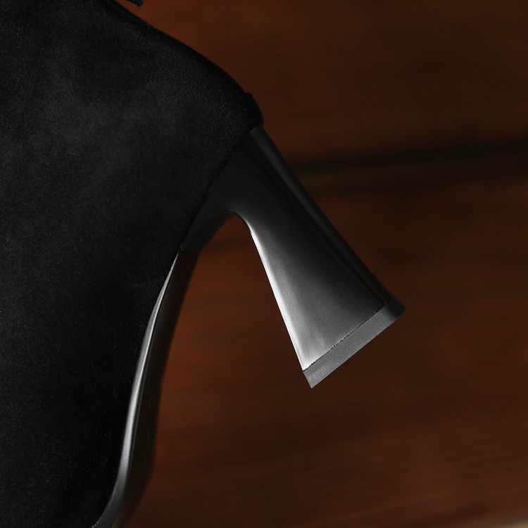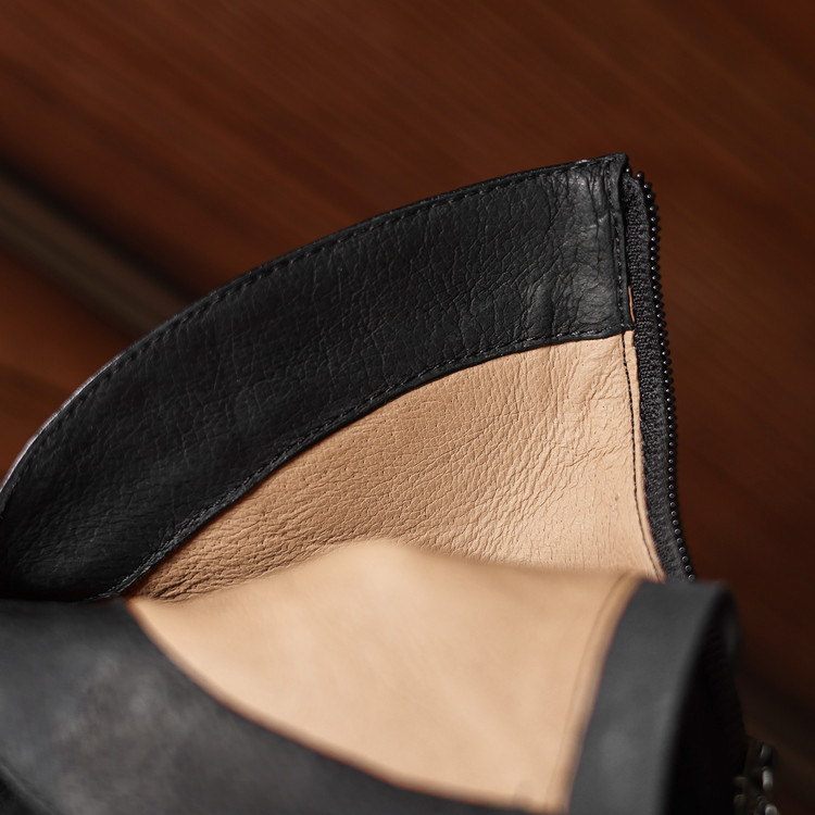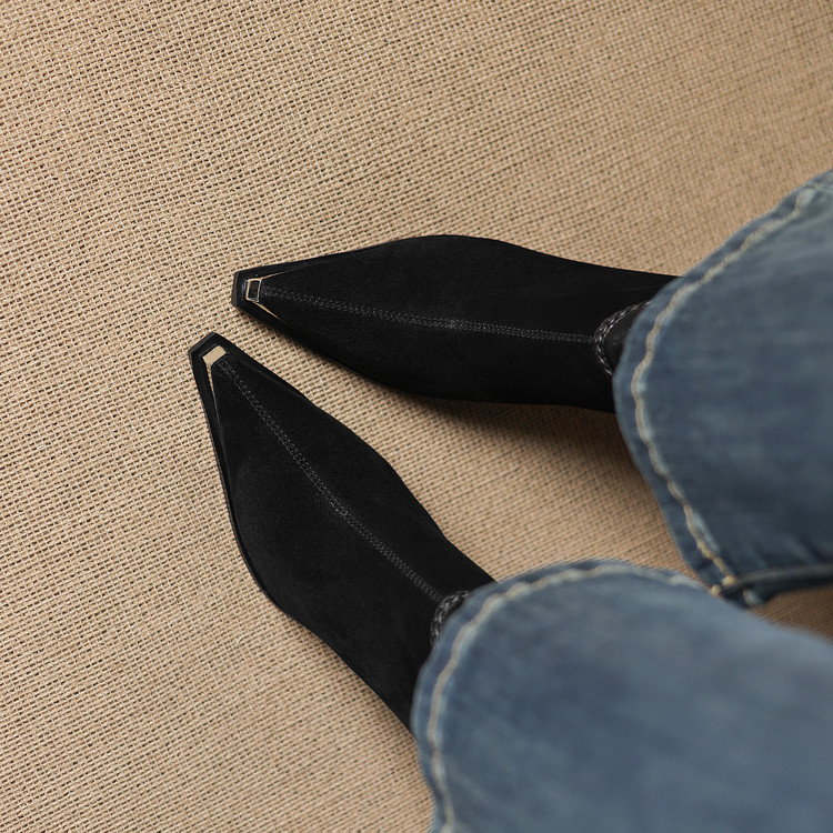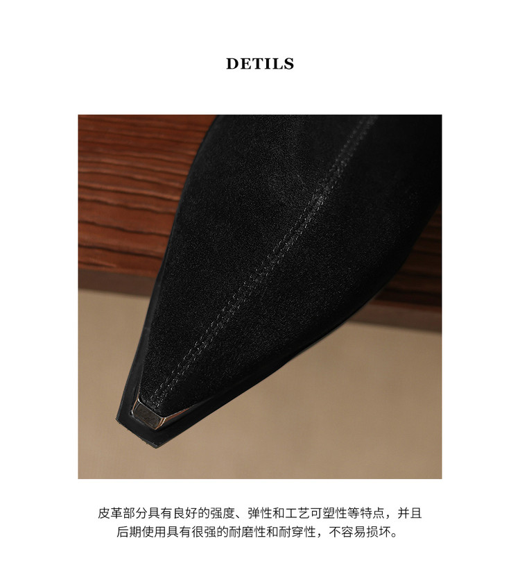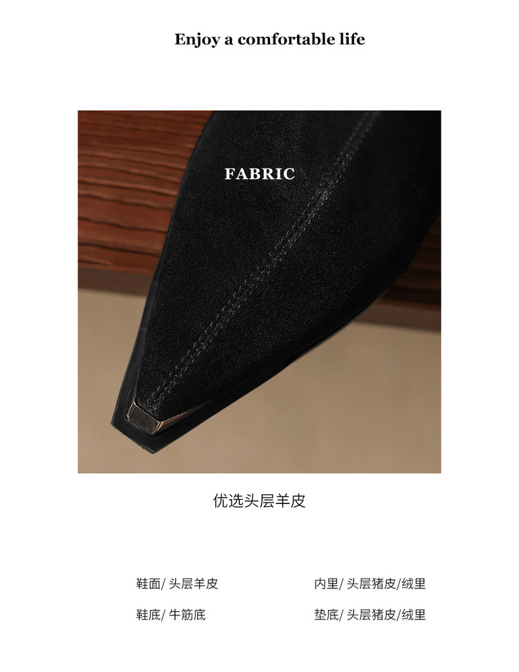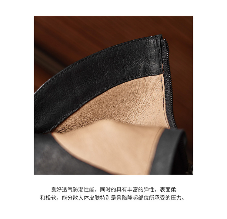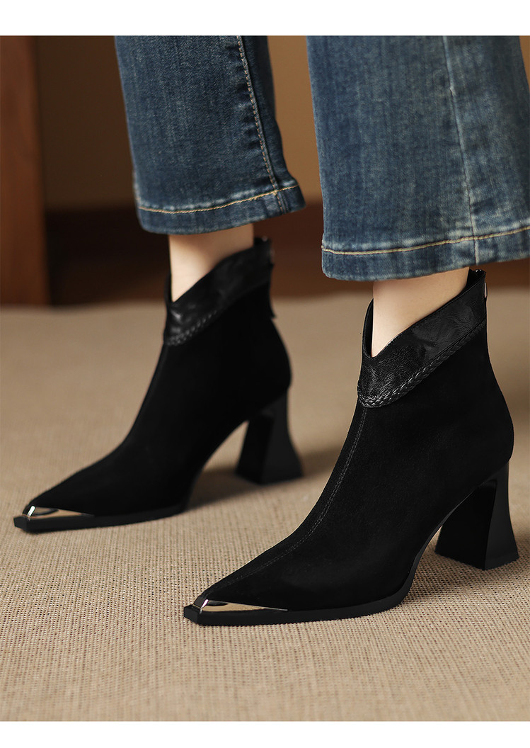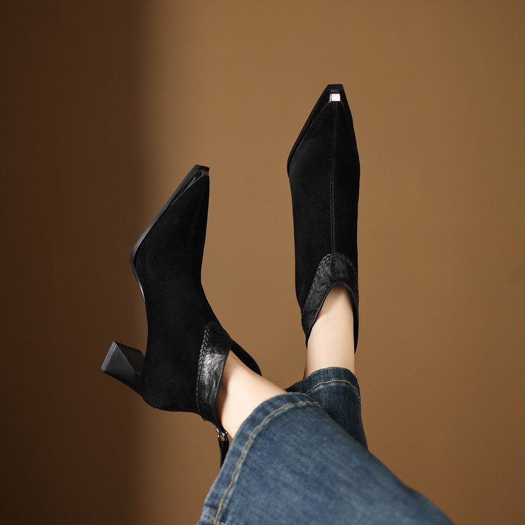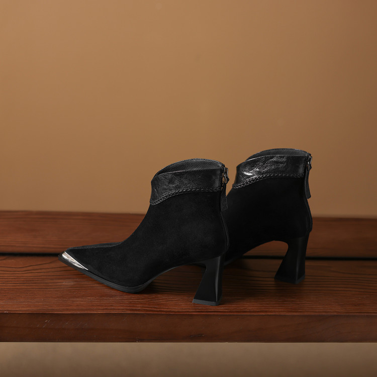 【预售5天】法式短靴女粗跟秋冬后拉链棕色气质高跟马丁靴显瘦V口瘦瘦靴DPJ&7178