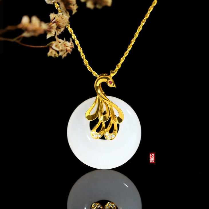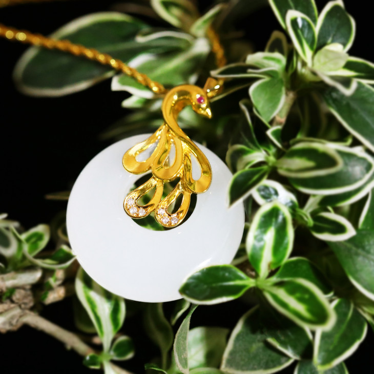 18K黄金和田玉(白玉)镶钻吊坠