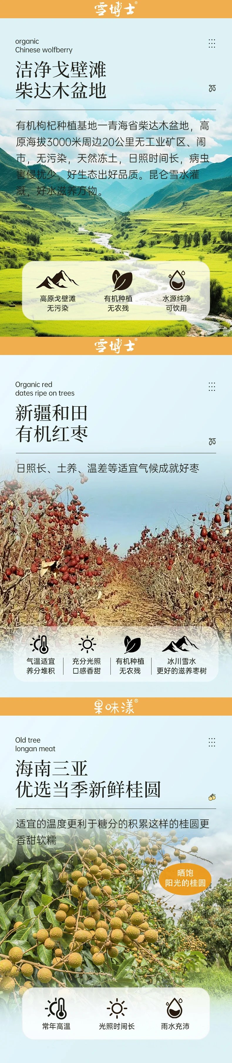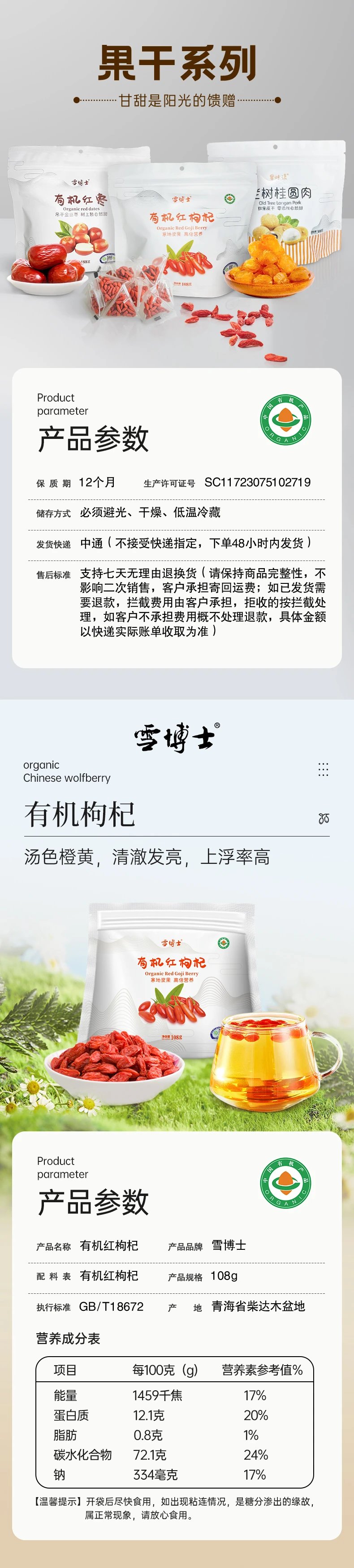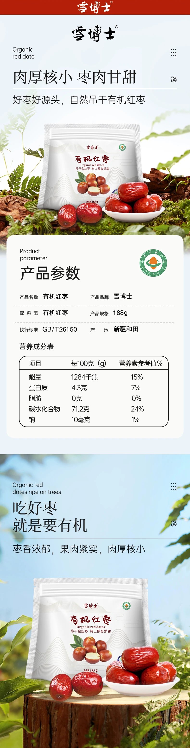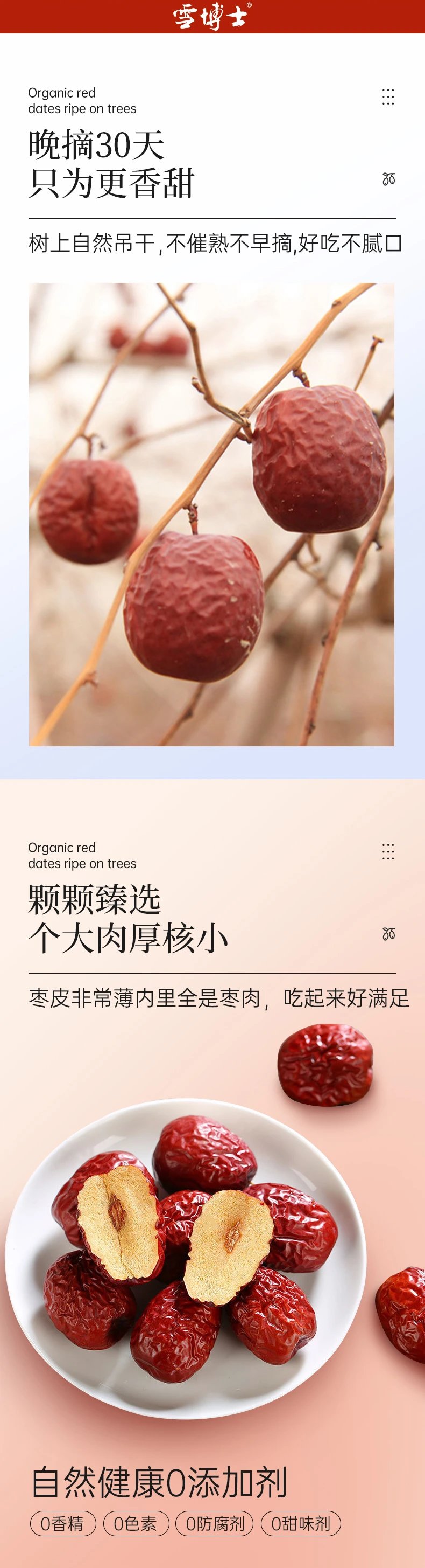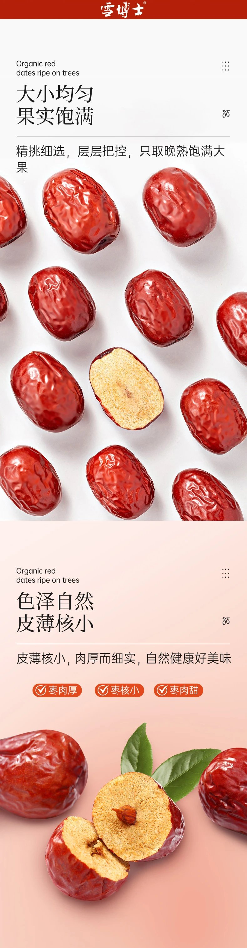 【有机干枣系列】【全系列最高满减80每单赠10元全场券】雪博士有机红枣/枸杞/老树桂圆肉袋装【基地直邮】