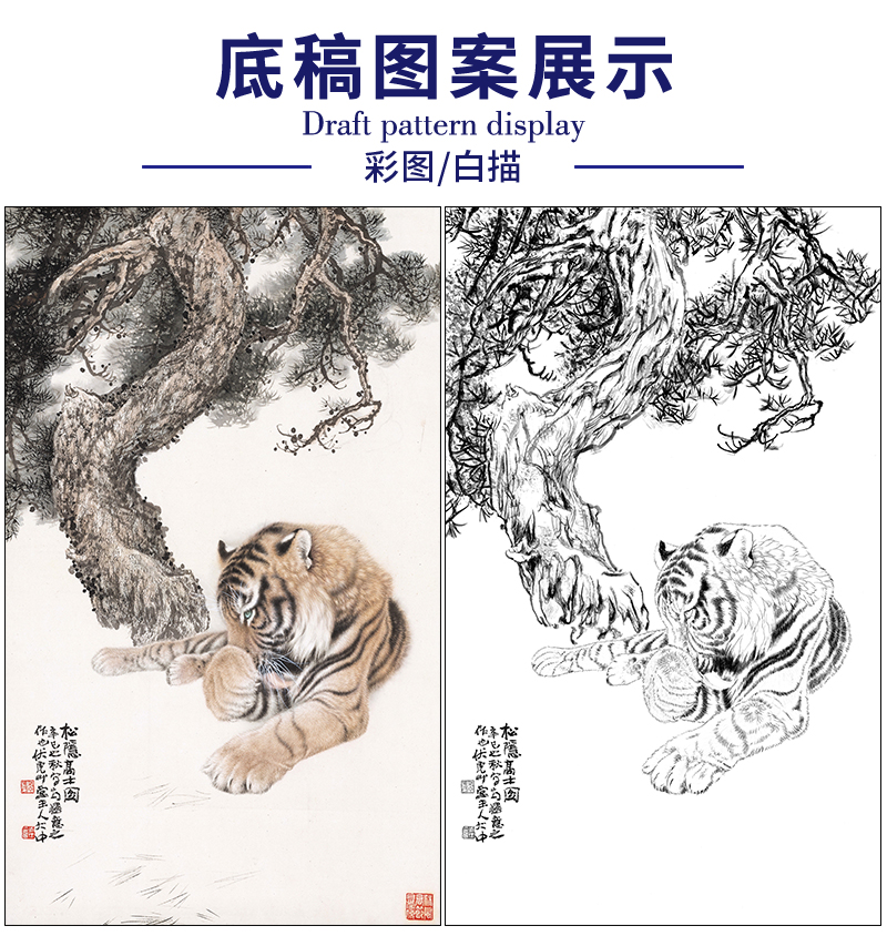 冯大中 老虎 工笔画白描底稿《松隐高士图》动物临摹勾线高清打印稿DZ11