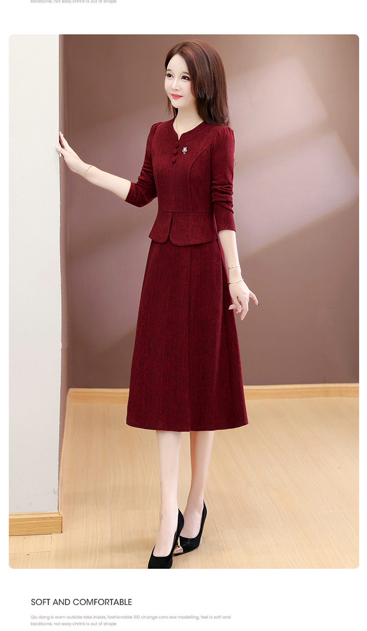 QYM 54C2532-Y优雅风连衣裙气质中长款A字裙