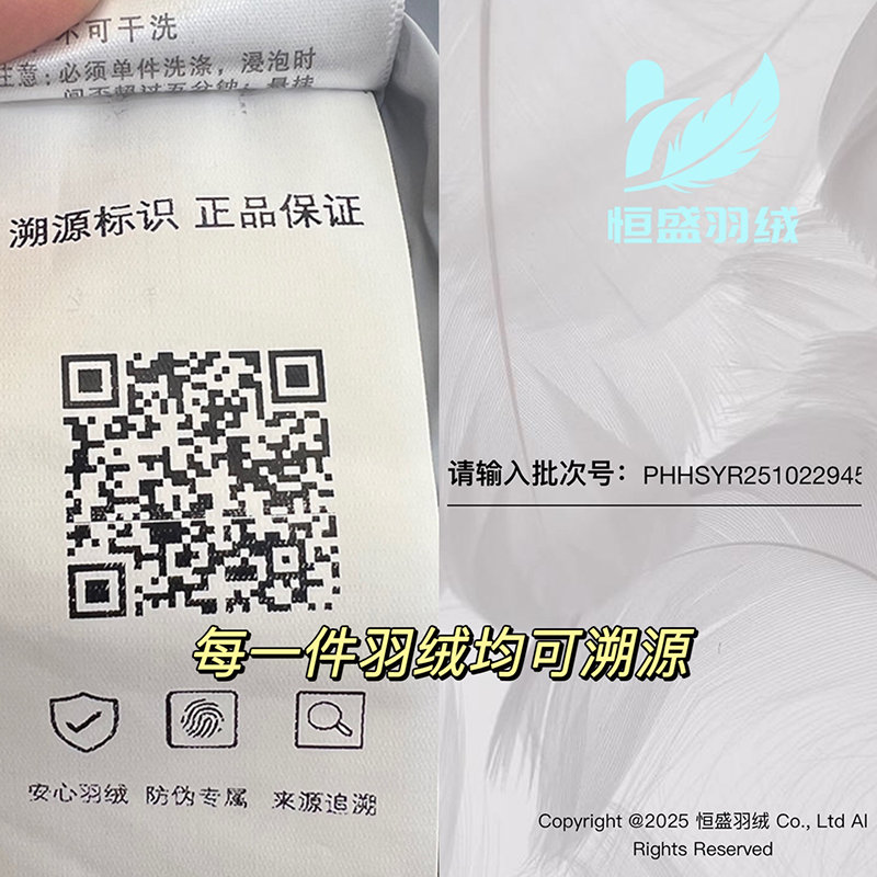 每件洗标都可溯源,严格遵循新国标90绒,实测达到95绒↓↓↓