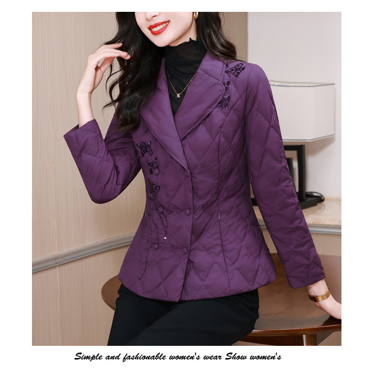 KQL B43N1661西装领刺绣双排扣羽绒棉服保暖加厚棉衣