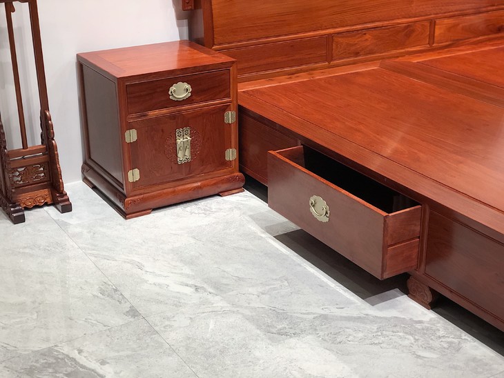 雕刻拐子龙纹,有着多子多福的美好寓意,床身带抽屉,提供了更多的储物空间。