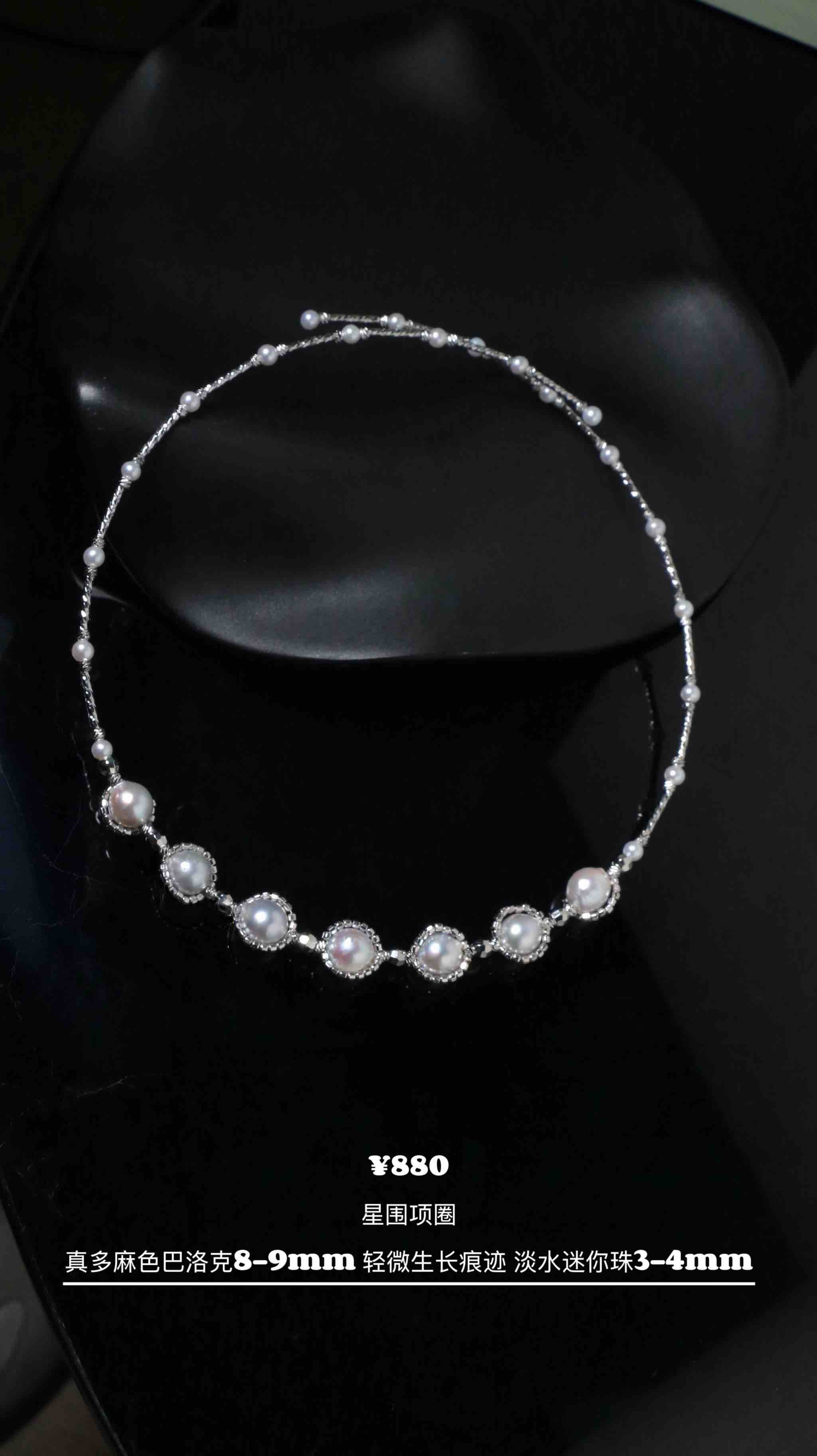 以真多麻色巴洛克珍珠为星,每一颗8-9mm的珠子,都带着大海赋予的清冷晕彩,独一无二的巴洛克形态,是自然最动人的手笔,那些轻微的生长痕迹,是时光刻下的温柔勋章。