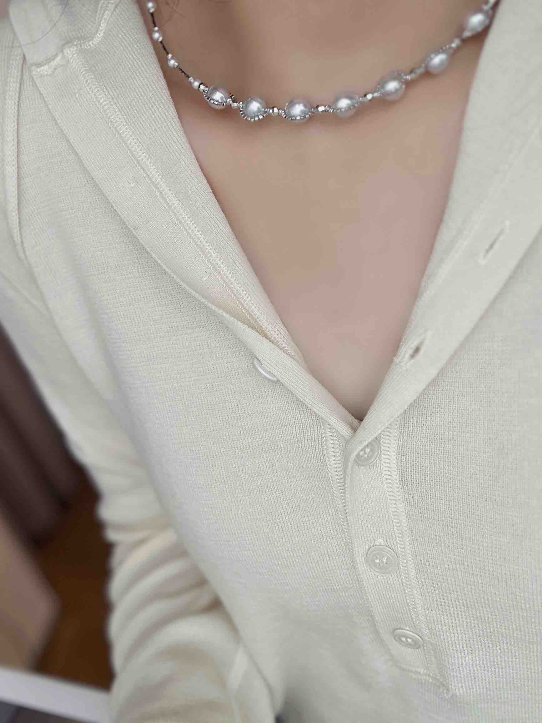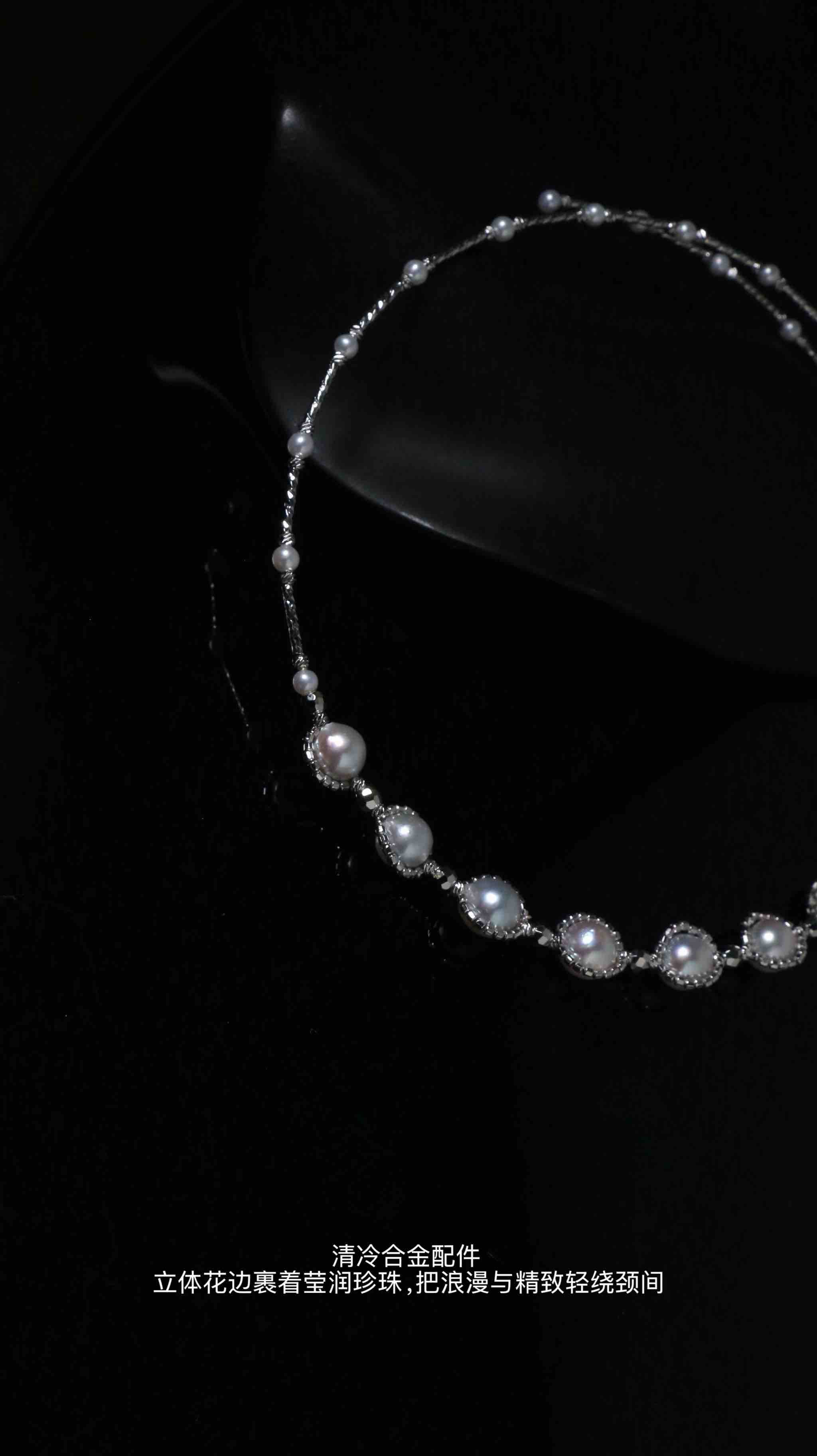 立体花边如星芒环绕,承托着珍珠的柔光,再缀以3-4mm的淡水迷你珠,沿着细链蜿蜒,像银河落进了锁骨间,抬眼间都是细碎的闪。