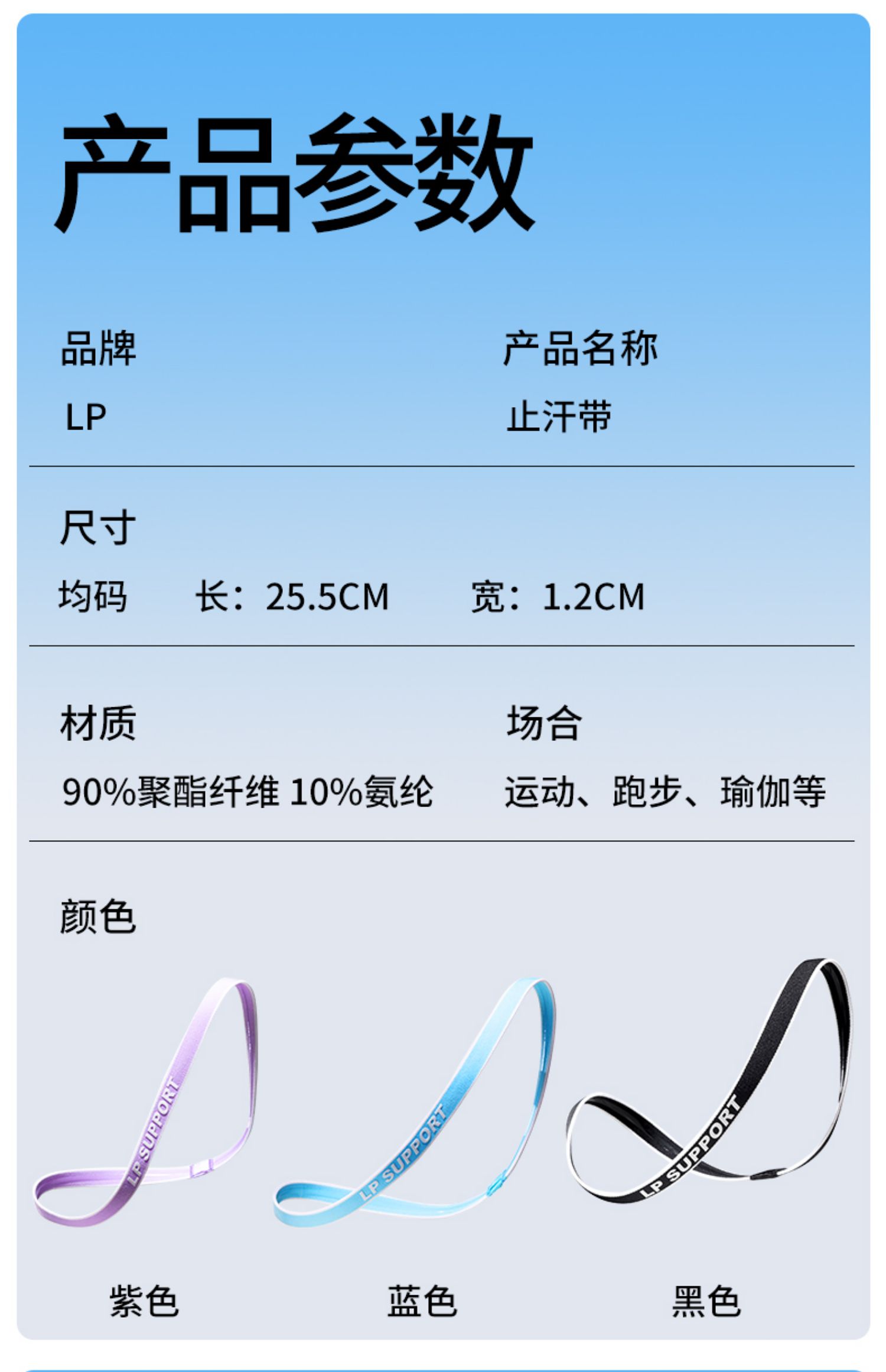 LP1006CK专业吸汗发带瑜伽健身跑步防滑发箍运动导汗带细男女止汗带
