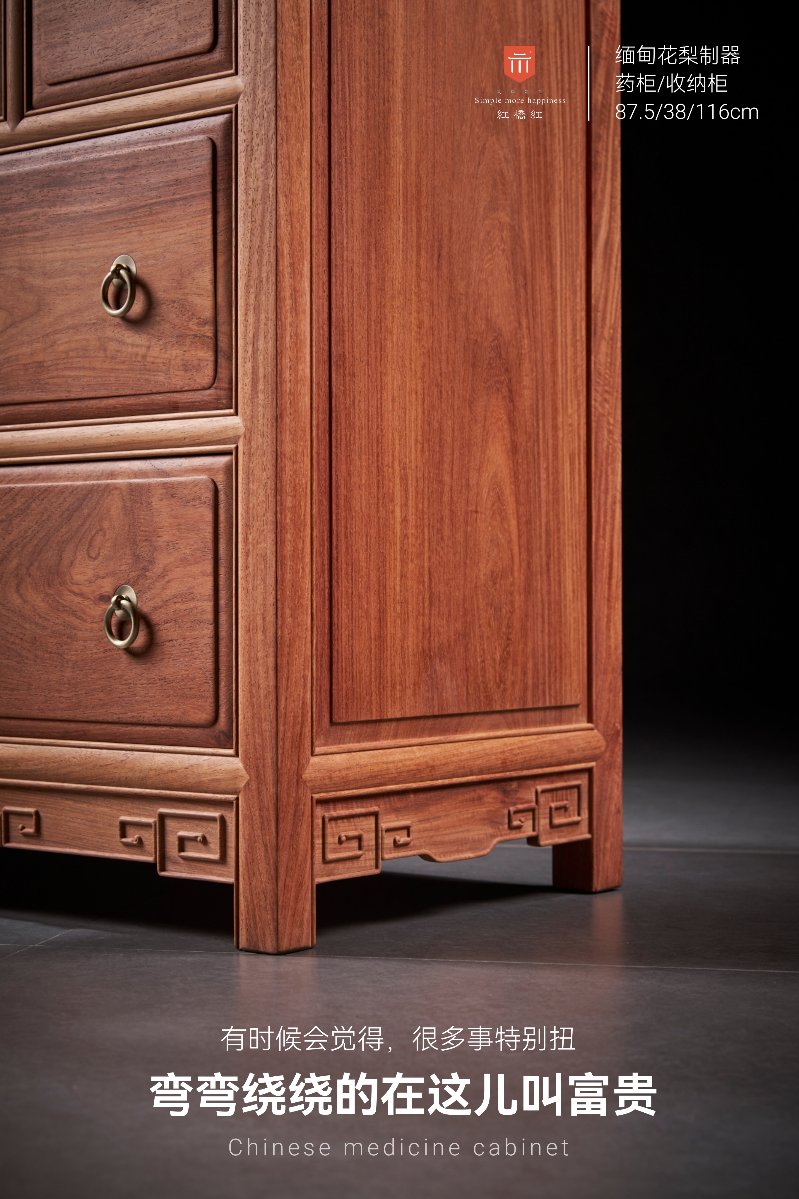 此柜可作药柜、收纳柜使用,除放置药品外,也可存放文玩,信札等,是用途灵活的家具,是家居实用器物。日常用的小物件找起来总让人头疼不已,收纳柜可对家里的小物件进行分类摆放,达到很好的收纳效果,是居家收纳的好帮手。