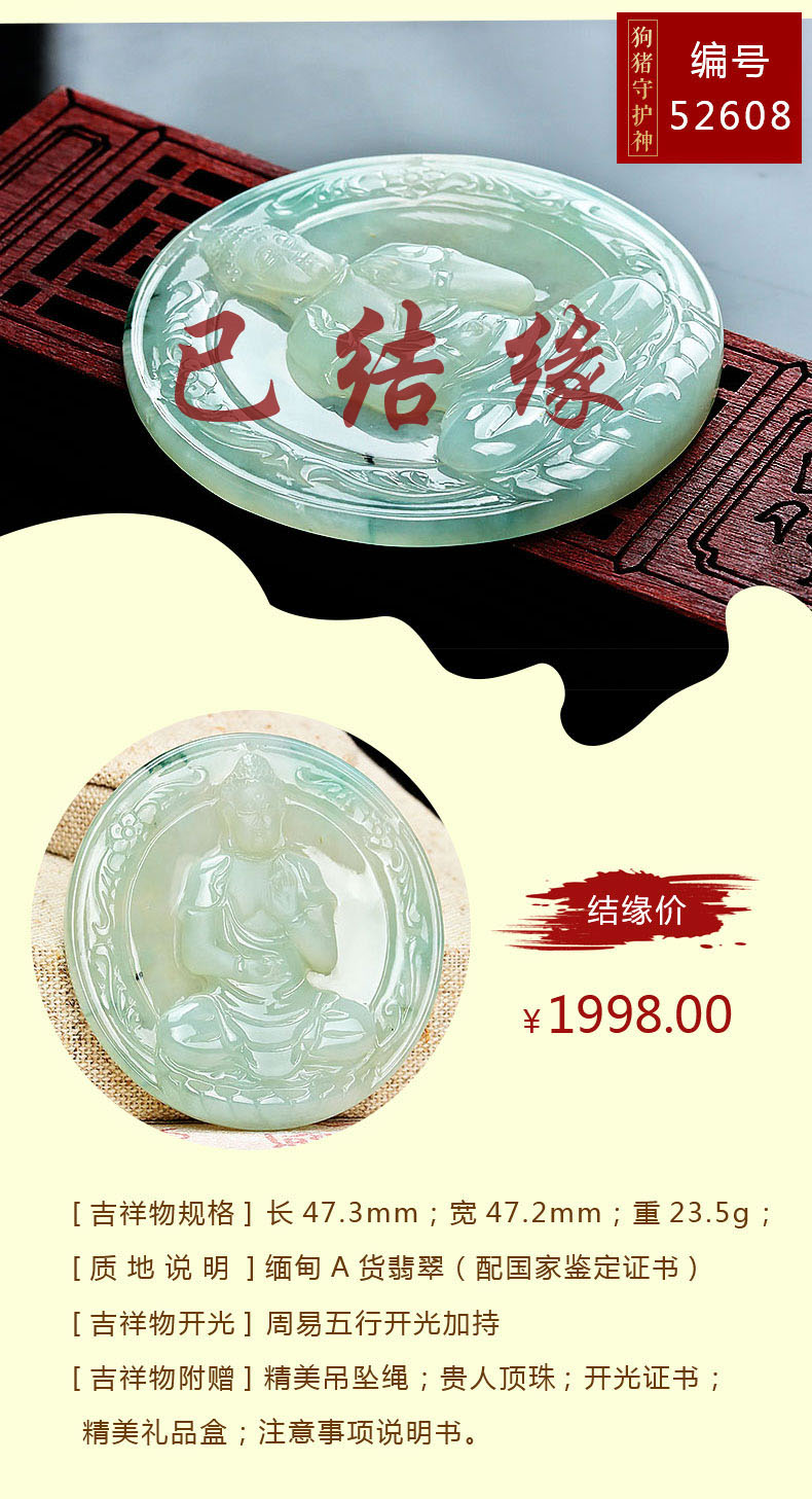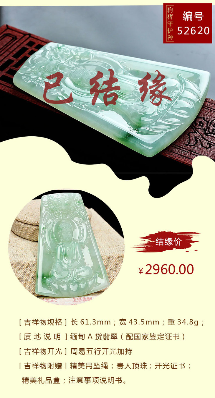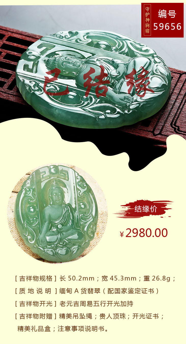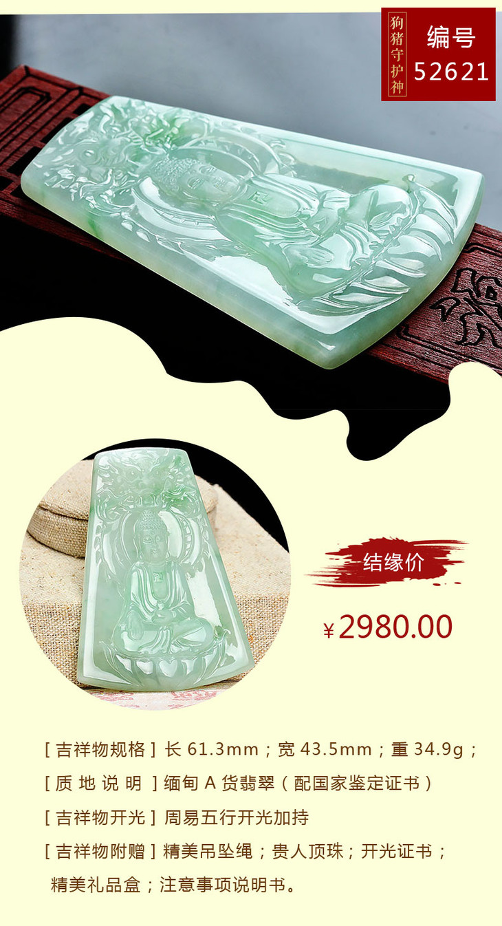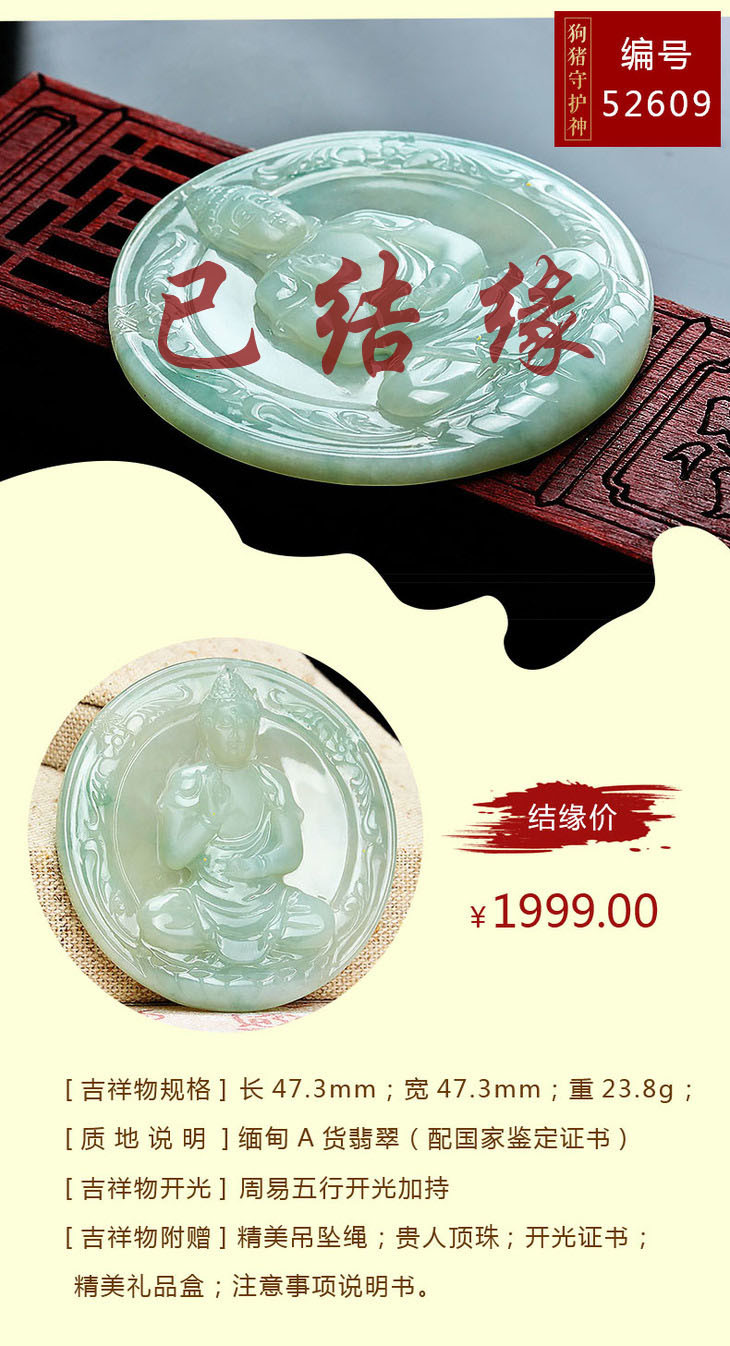 老元吉A货翡翠 狗猪本命佛【阿弥陀佛吊坠】 男女款挂件玉石吊坠