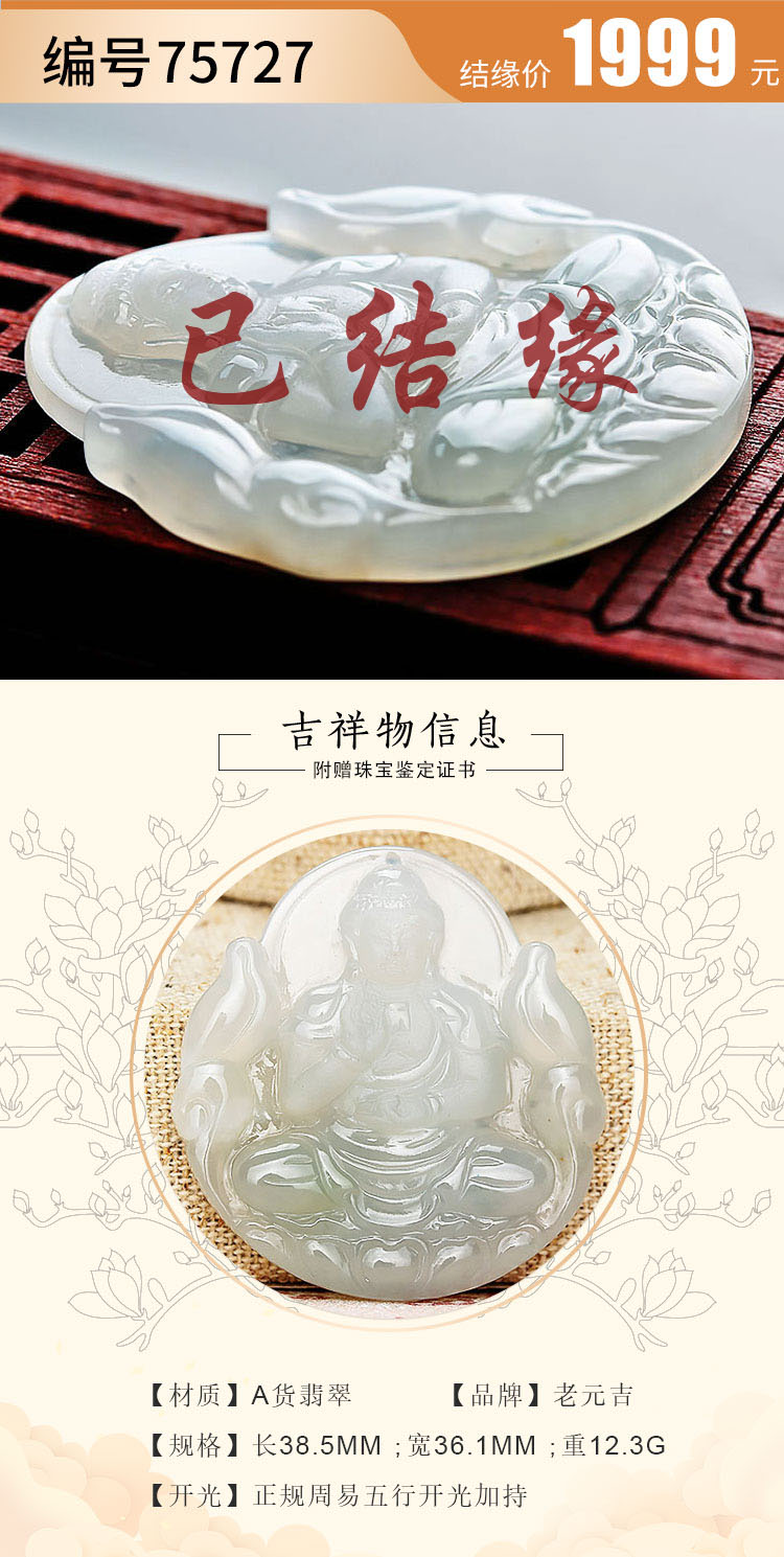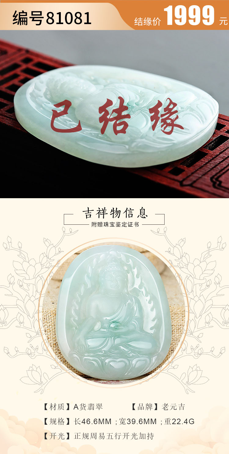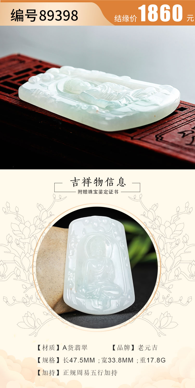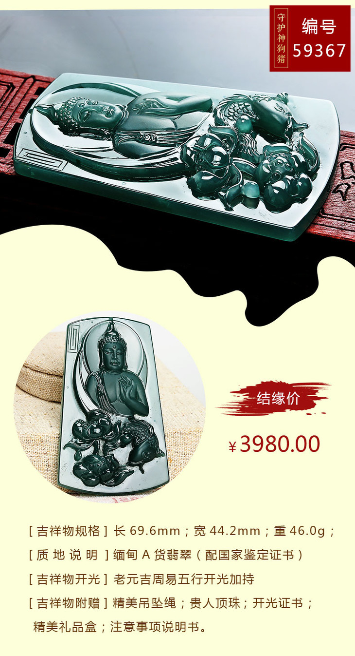 老元吉A货翡翠 狗猪本命佛【阿弥陀佛吊坠】 男女款挂件玉石吊坠