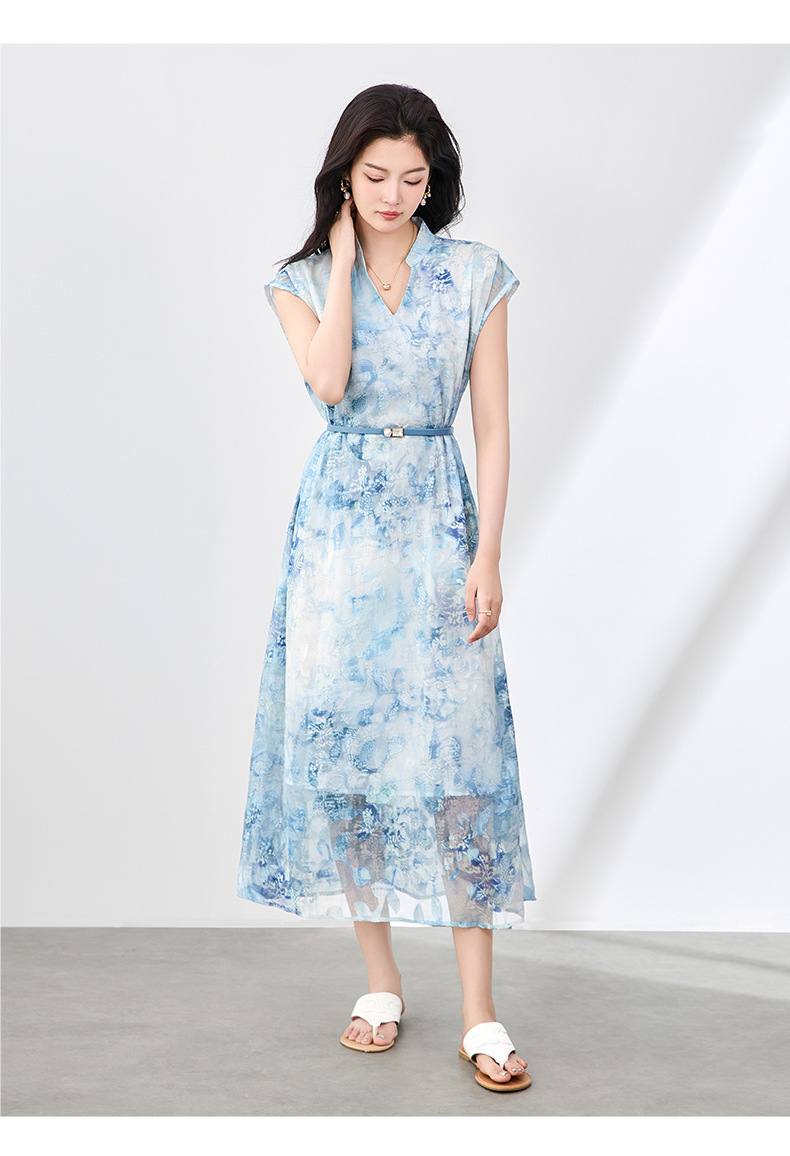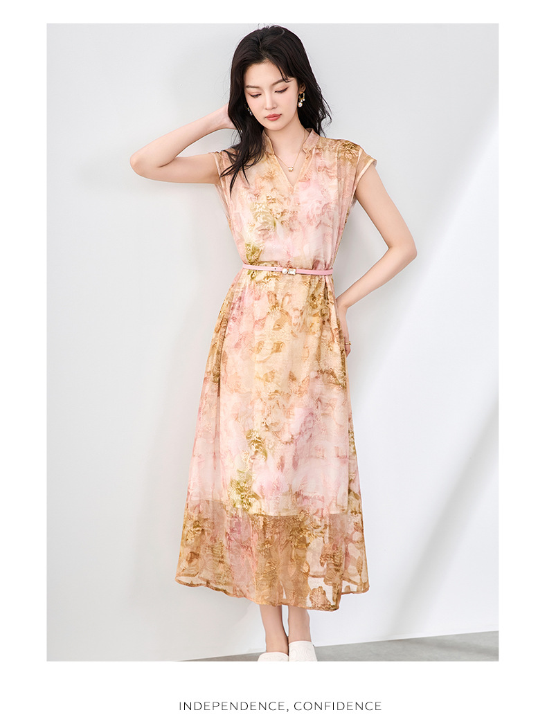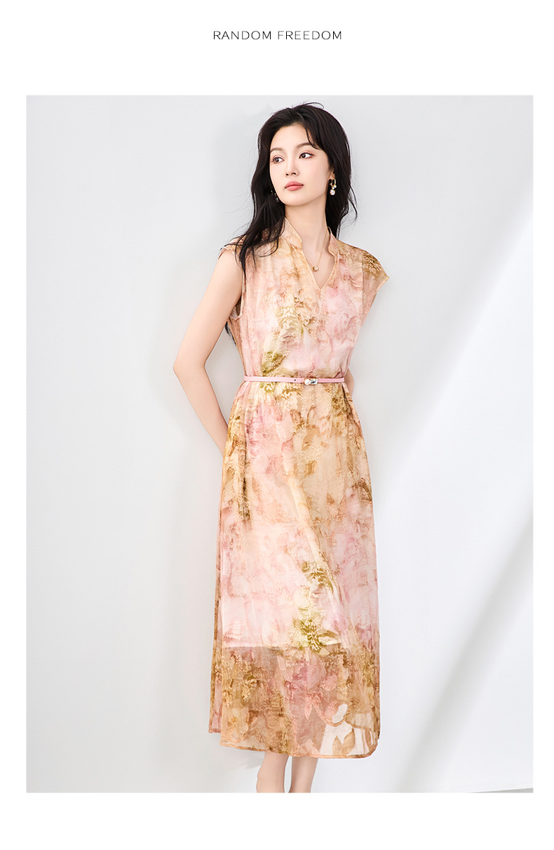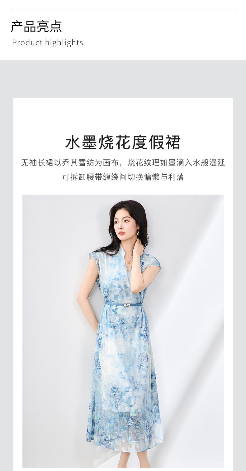 「高货wl」全新升级【铂金会员358/天猫479/差价121】(03351)洛诗琳法式晕染烧花连衣裙2025夏季简约优雅印花长裙女