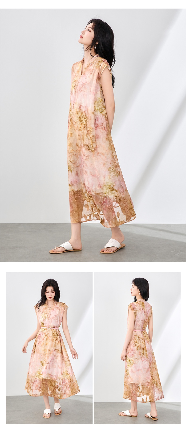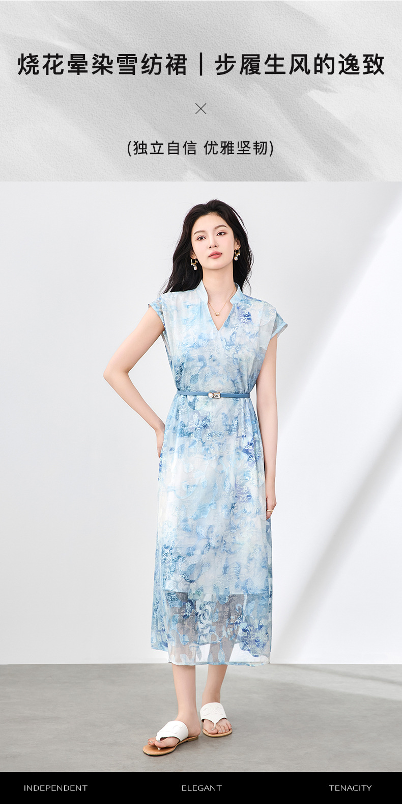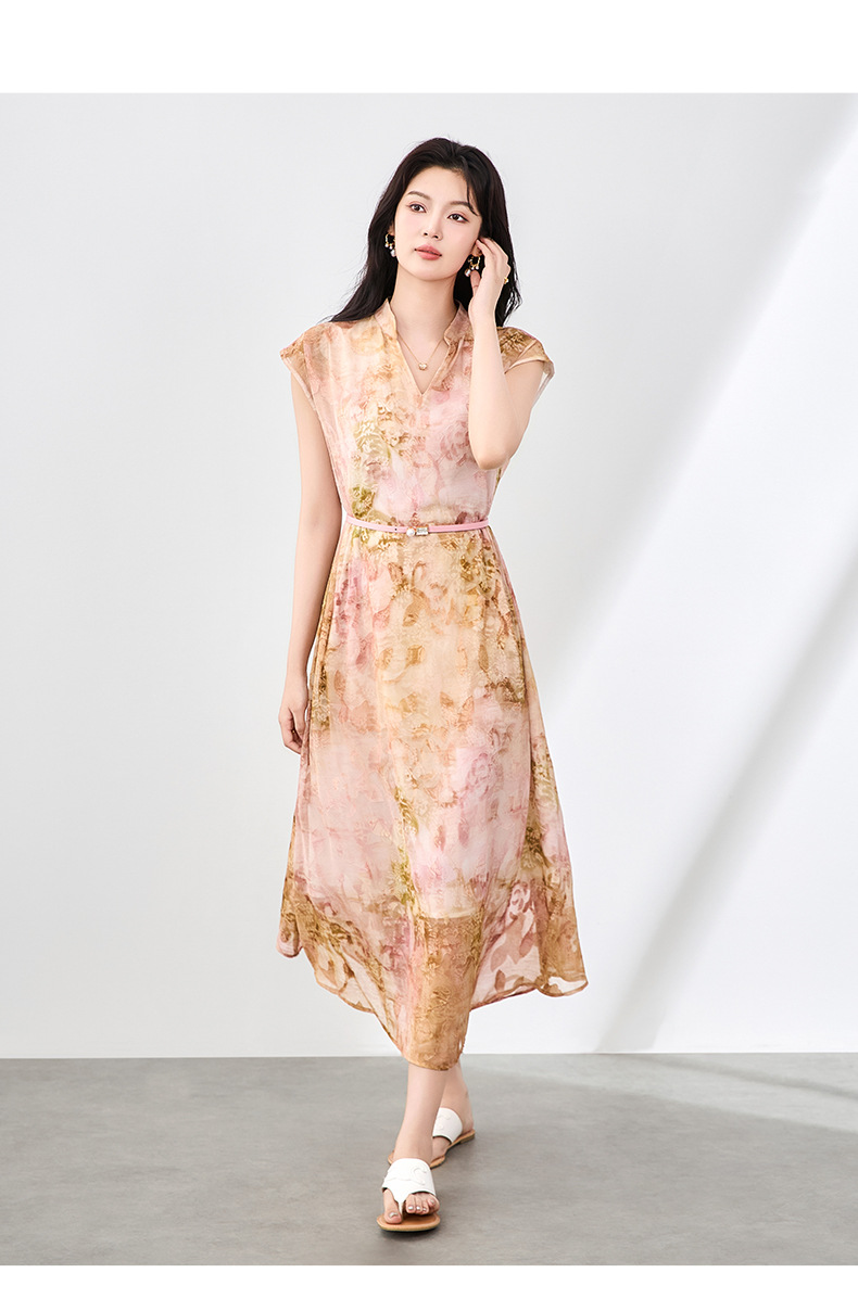 「高货wl」全新升级【铂金会员358/天猫479/差价121】(03351)洛诗琳法式晕染烧花连衣裙2025夏季简约优雅印花长裙女