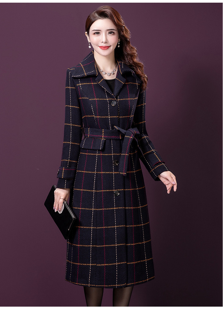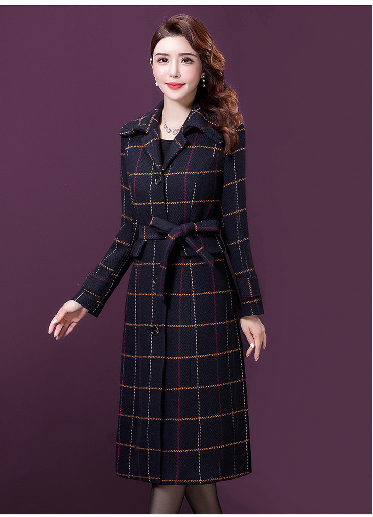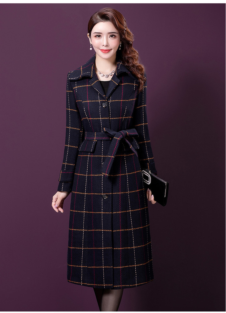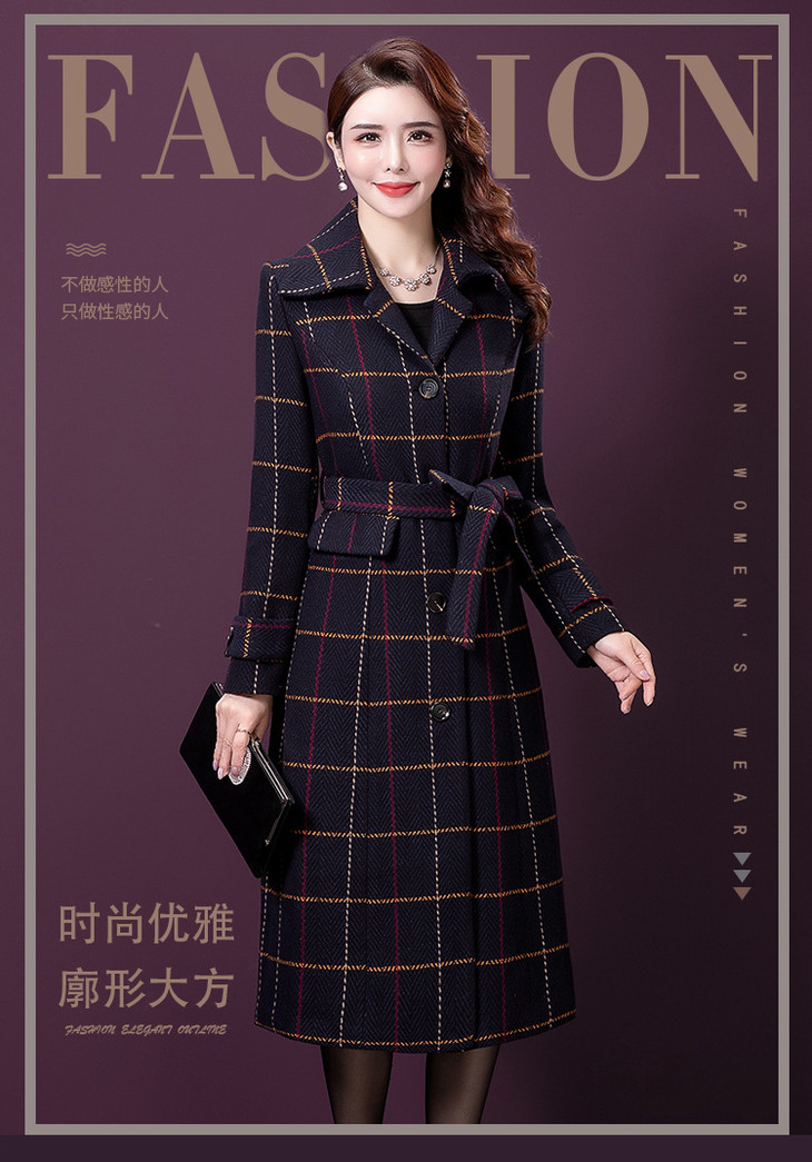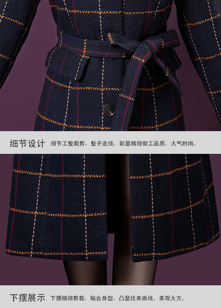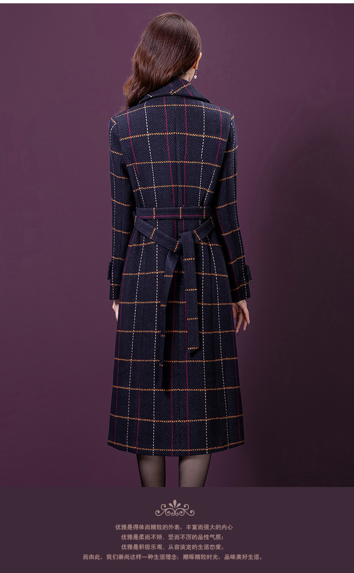YMR-8285中长款过膝收腰流行格子呢子大衣