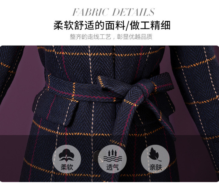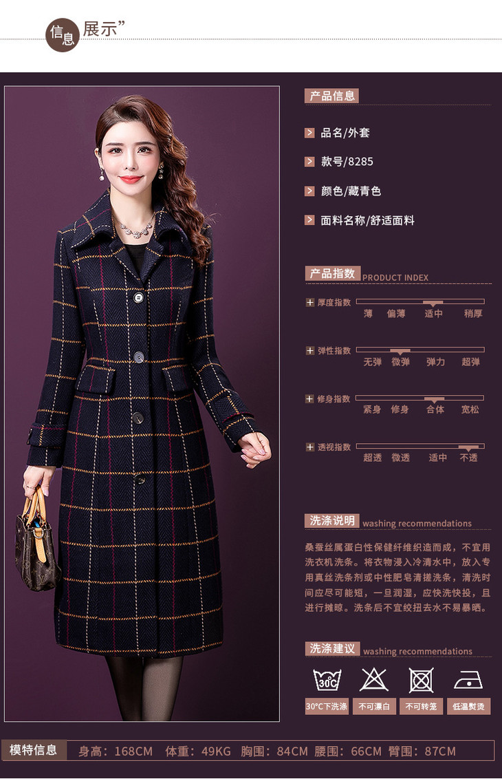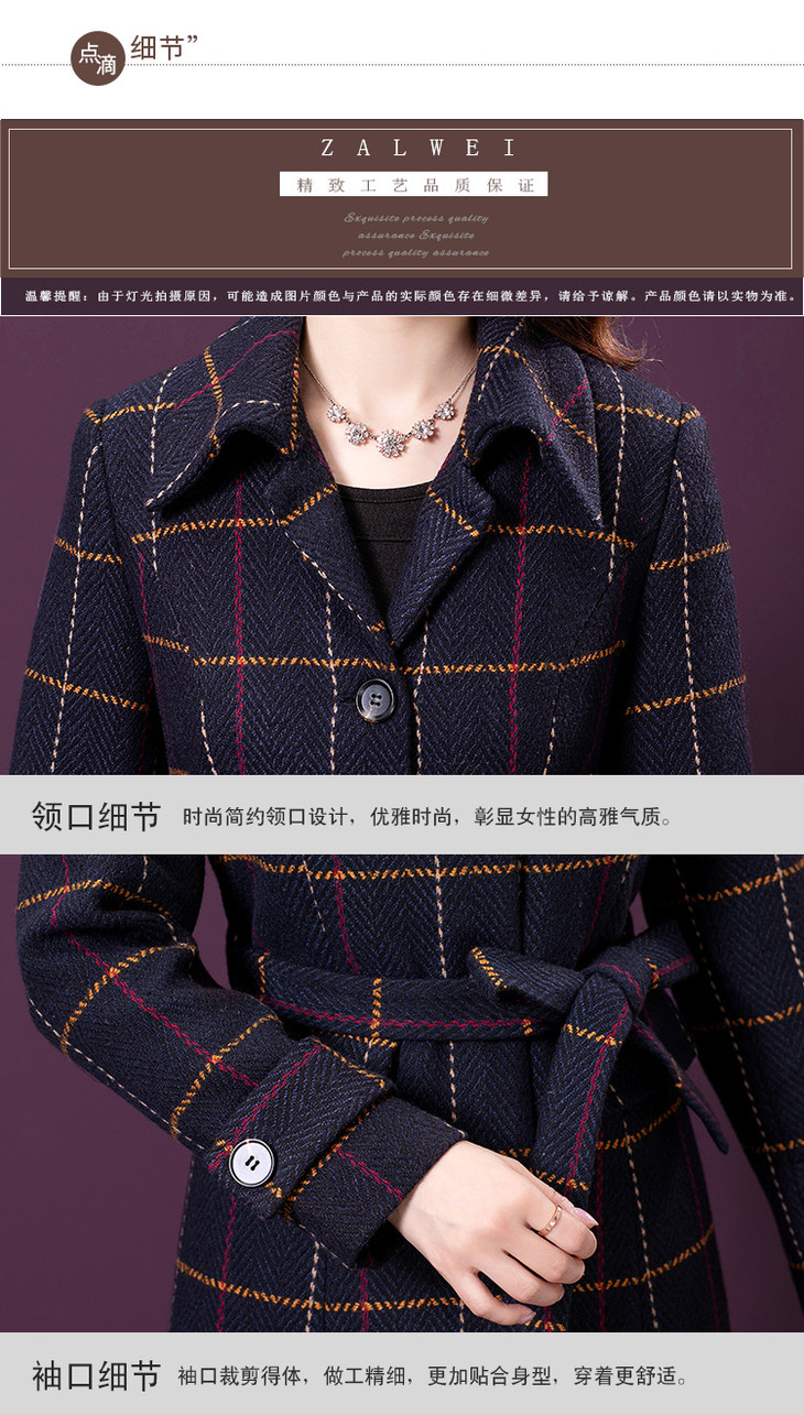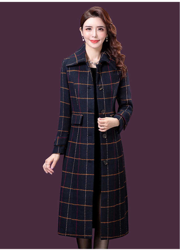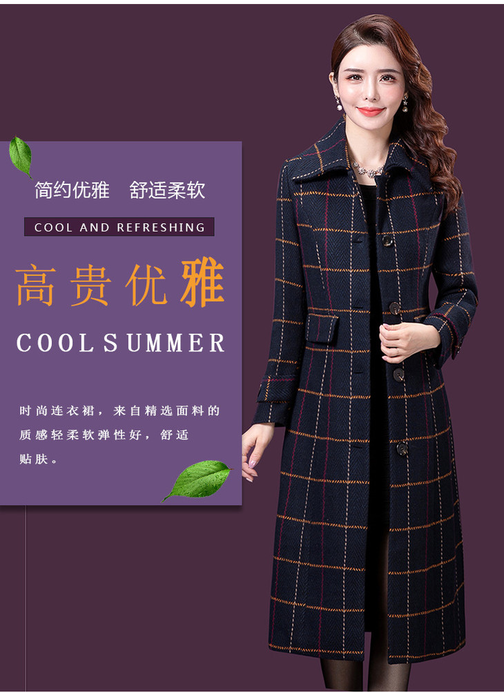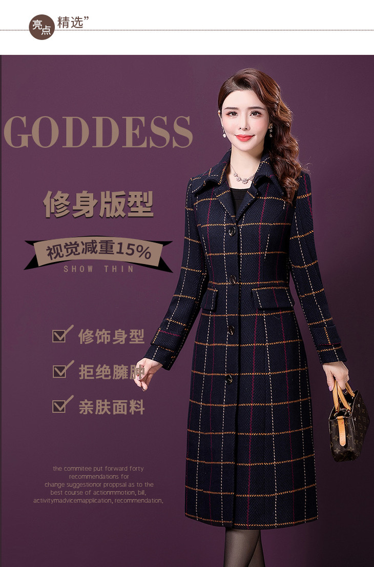 YMR-8285中长款过膝收腰流行格子呢子大衣