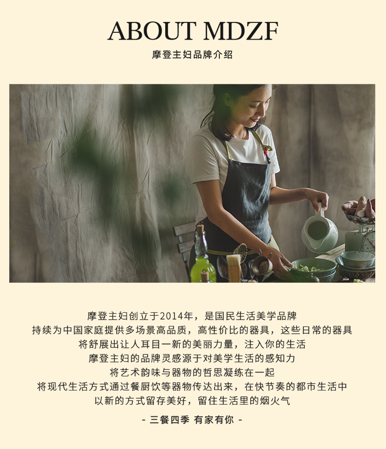 - 摩登主妇的创始人娜娜,是一个普通的80后妈妈,因为一个简单而执着的想法,要让“中国制造”的优质商品走进国内主妇们的生活,摩登主妇的品牌页由此而来。
