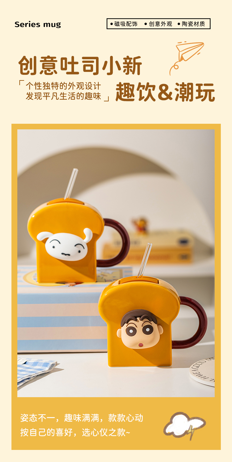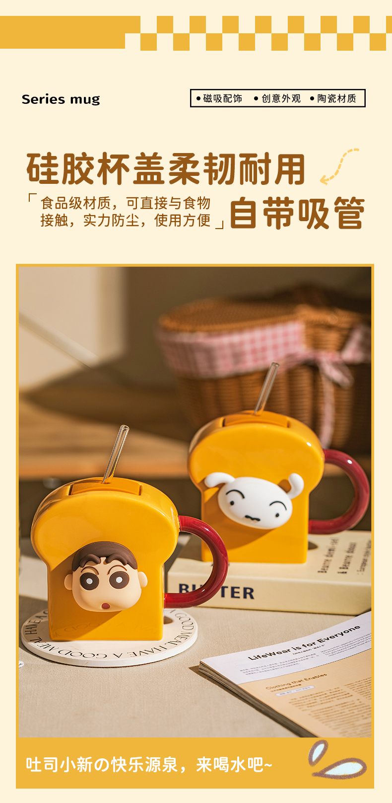 摩登主妇&蜡笔小新 马克杯带盖生日礼物喝水杯家用女吸管杯子