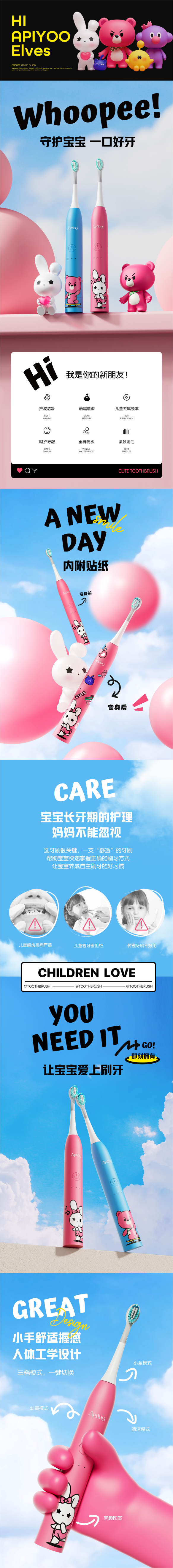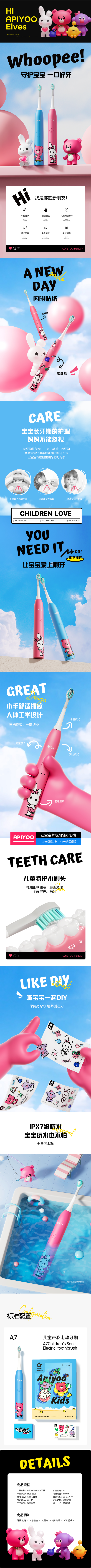 【荷兰艾优 Apiyoo】A7儿童声波电动牙刷(新) -(A7新(直充款))