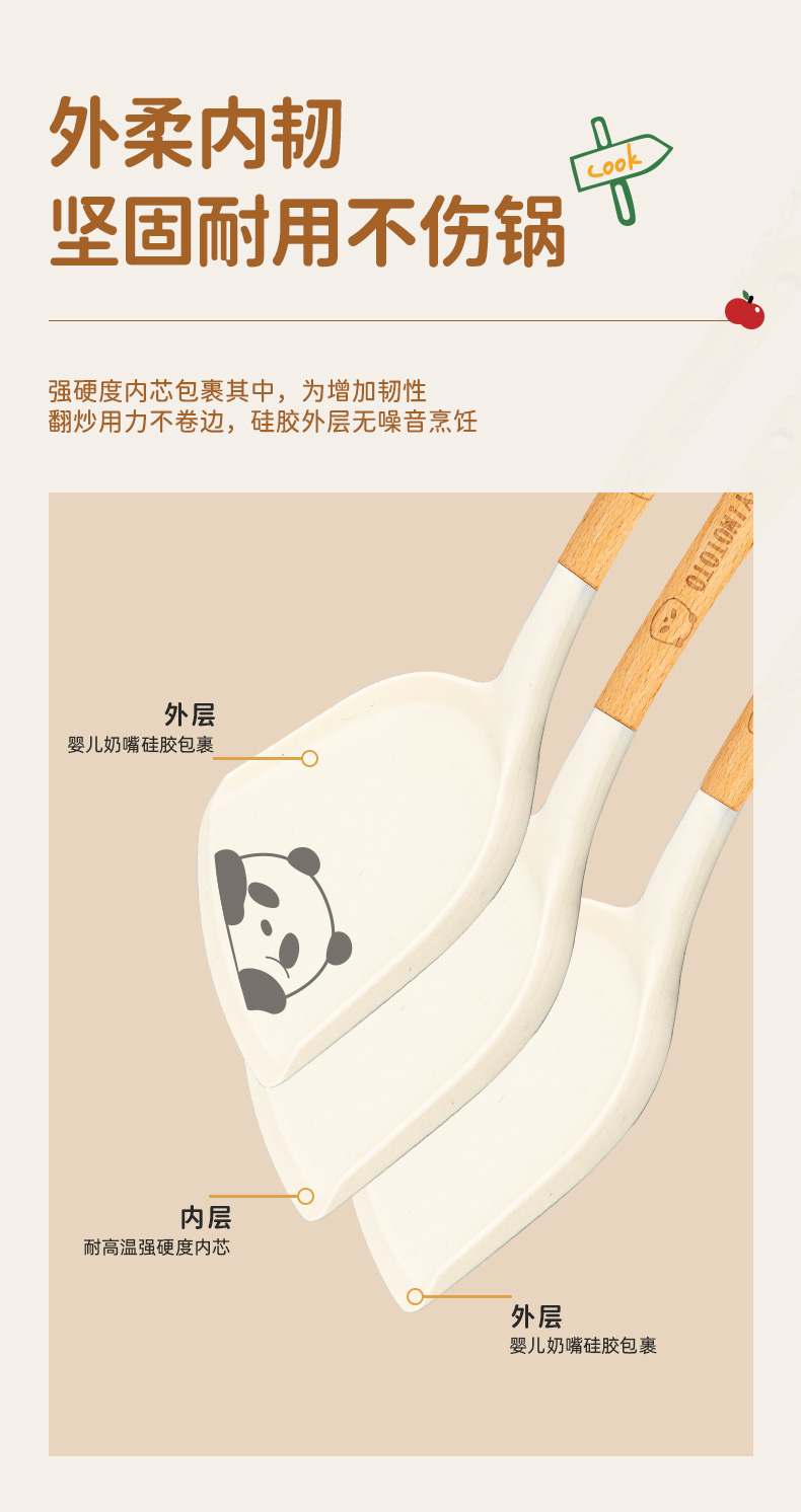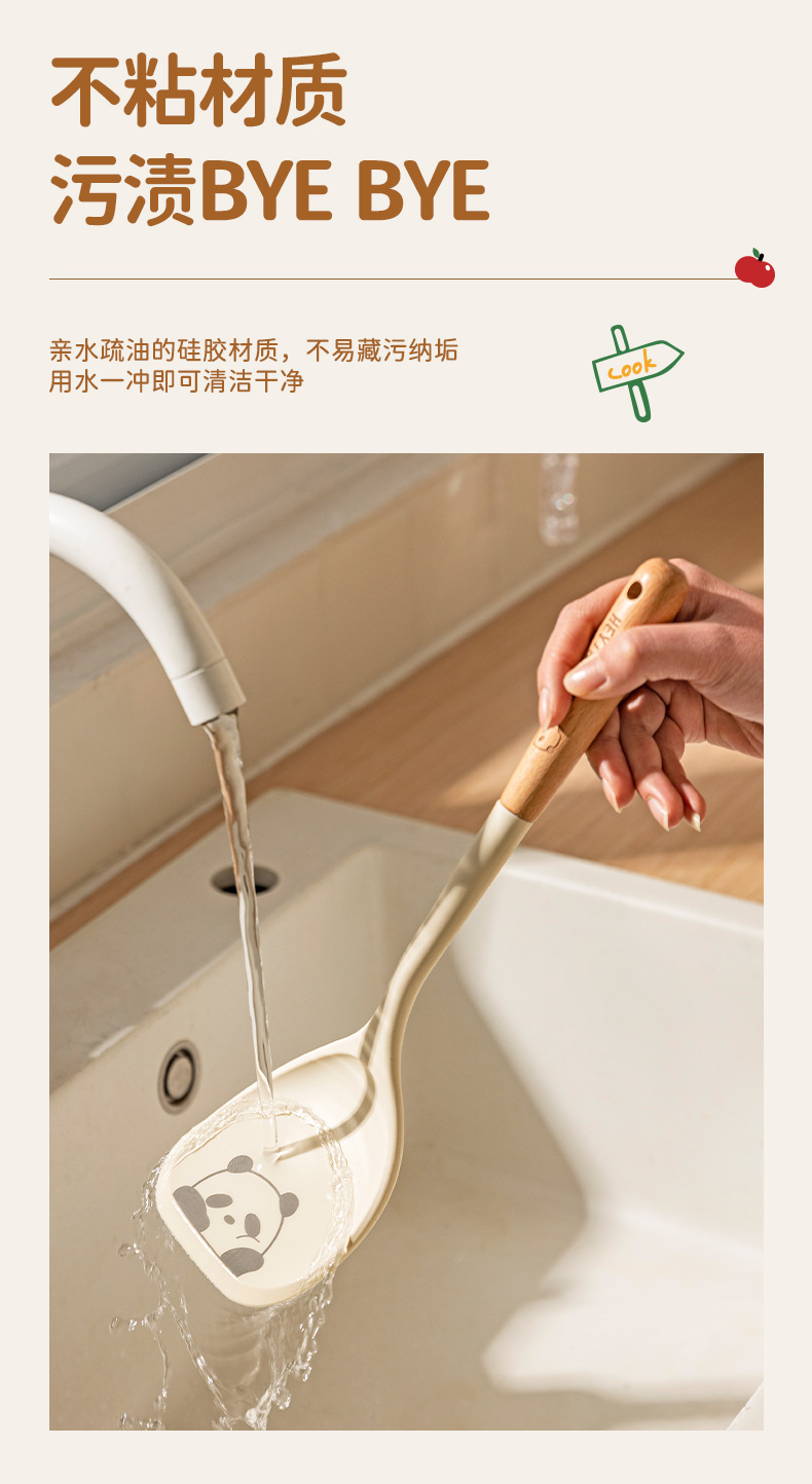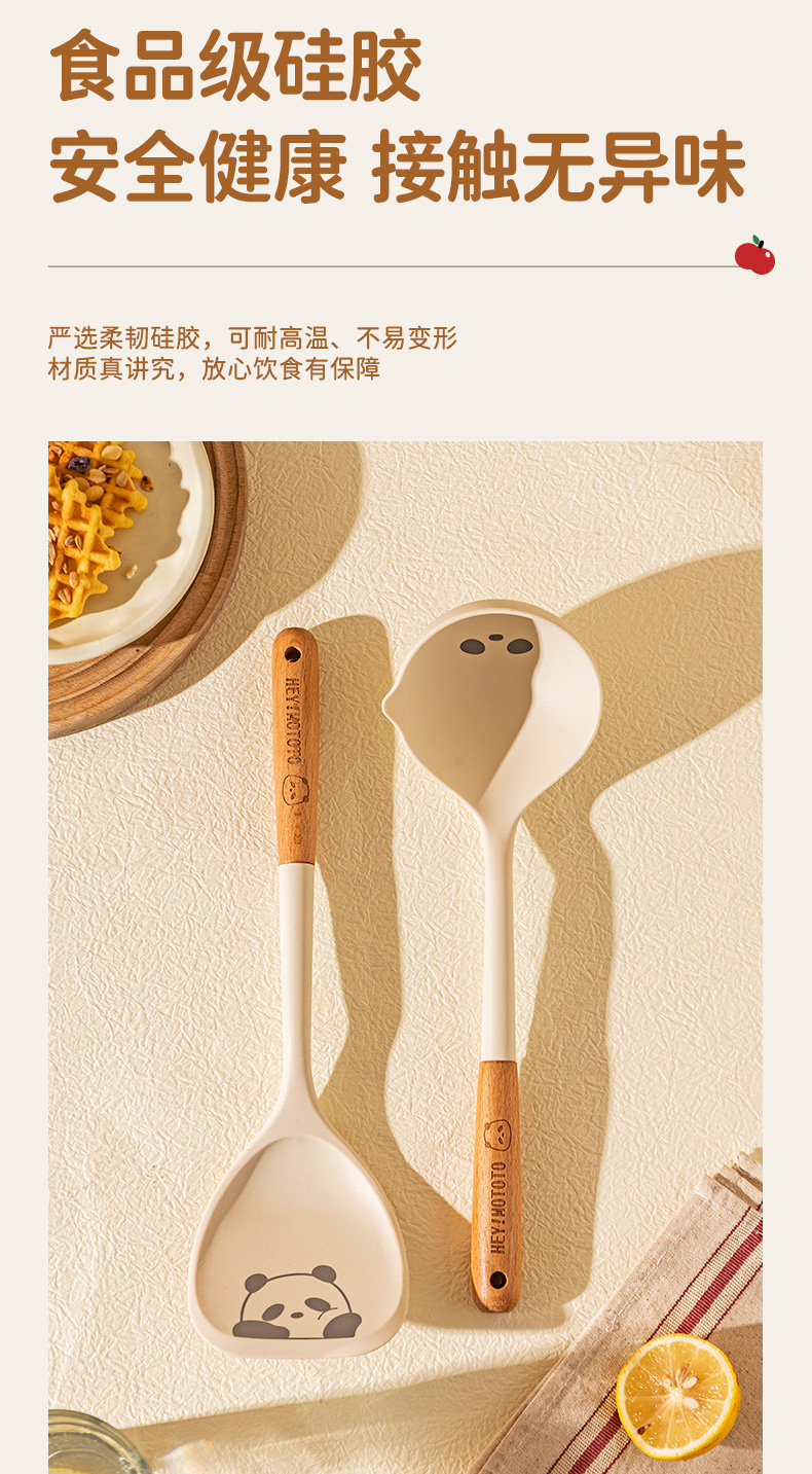 摩登主妇mototo熊猫硅胶锅铲不粘锅专用耐高温炒菜铲子盛汤勺厨具