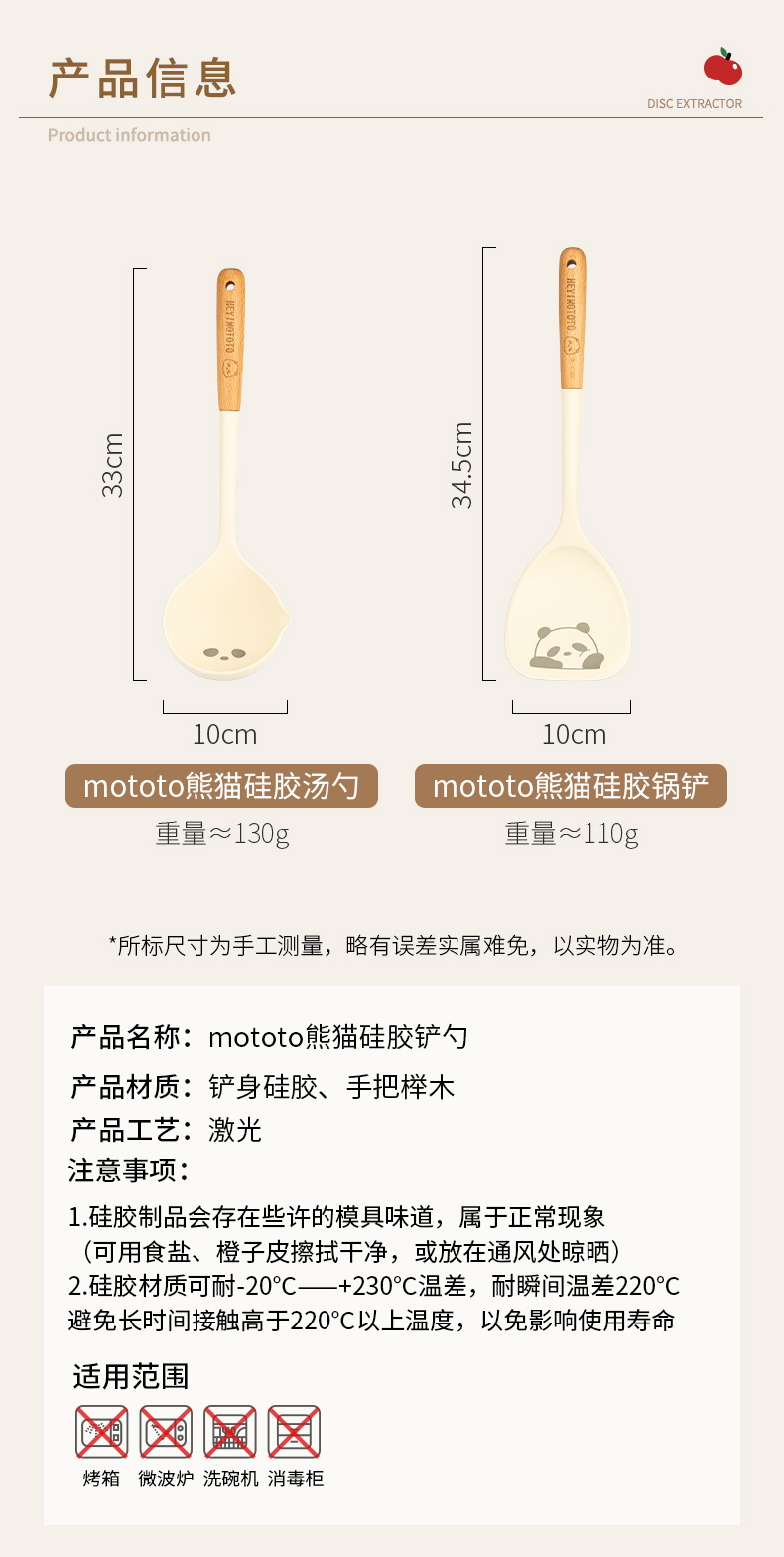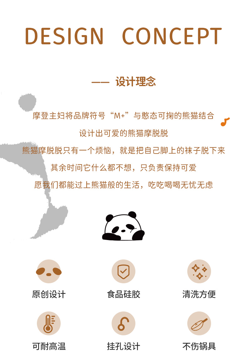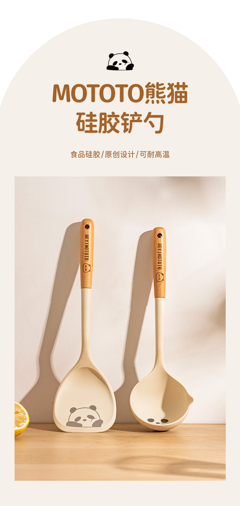 摩登主妇mototo熊猫硅胶锅铲不粘锅专用耐高温炒菜铲子盛汤勺厨具