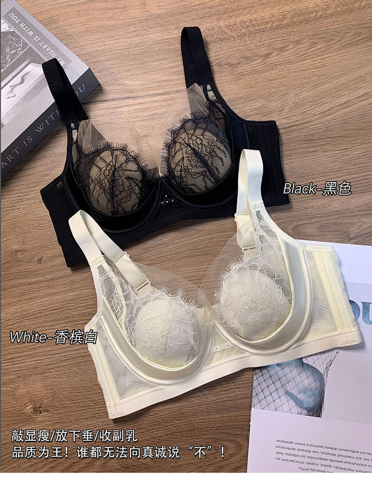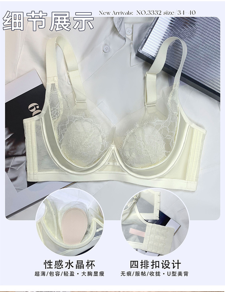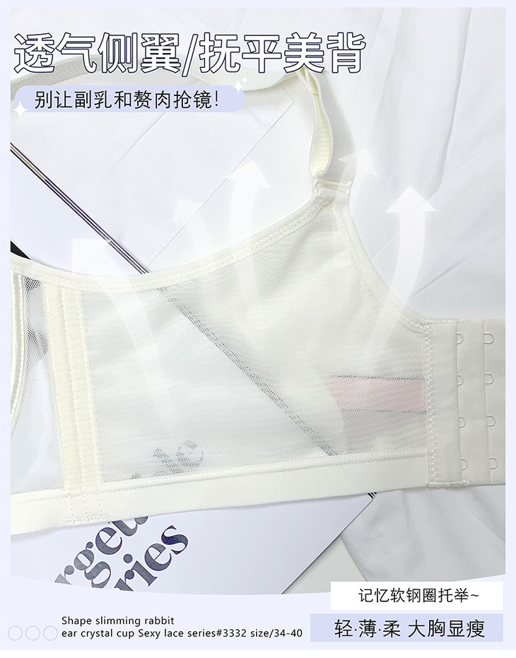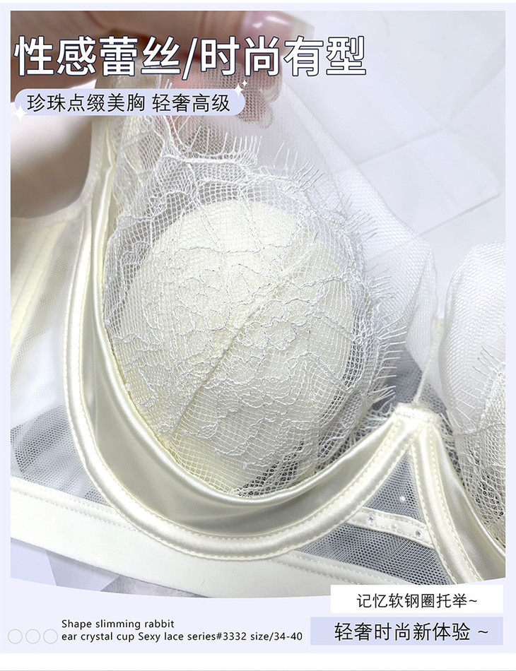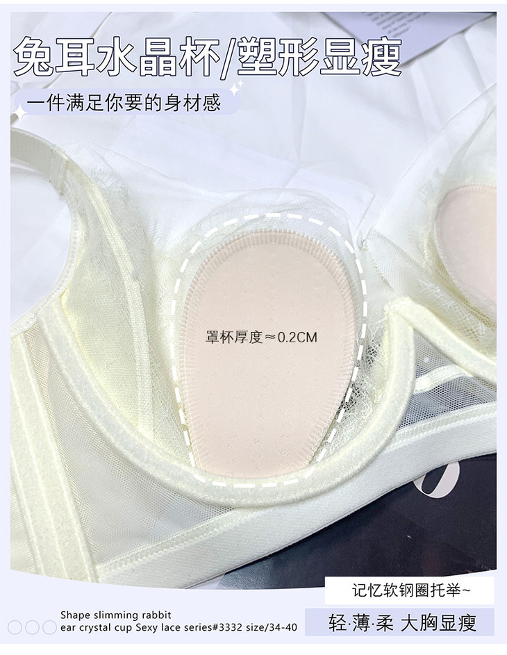薄款显廋蕾丝兔耳朵水晶杯,软钢圈内衣女收副乳调整型聚拢文胸XY-3332