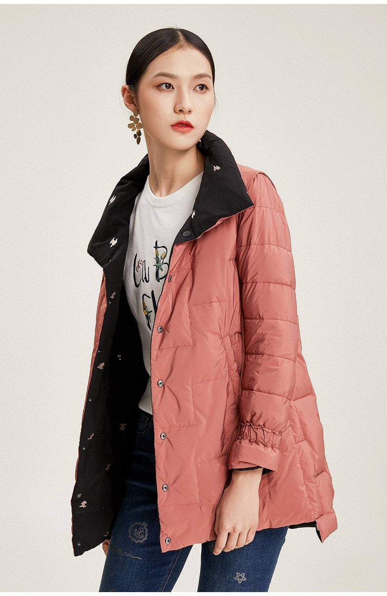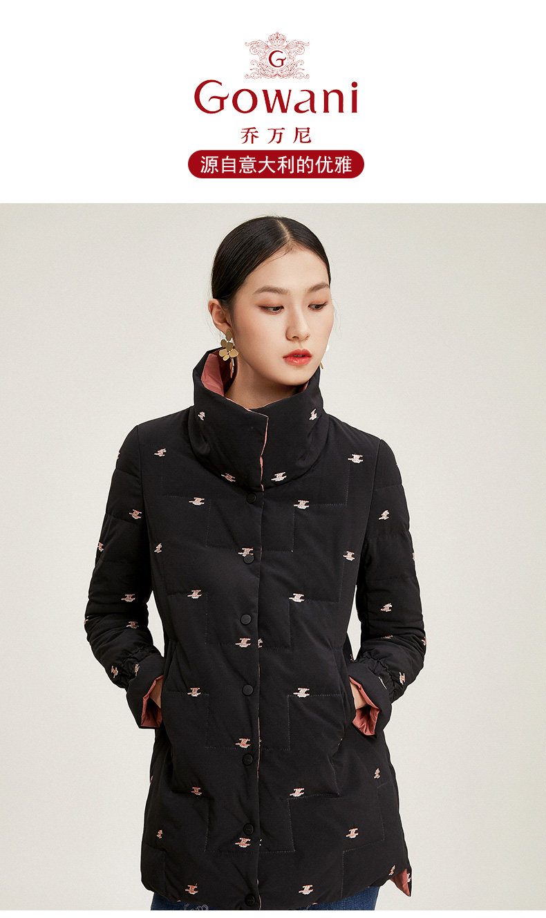 乔万尼冬季白鸭绒羽绒服中长款时尚休闲双面穿外套女EN4T870