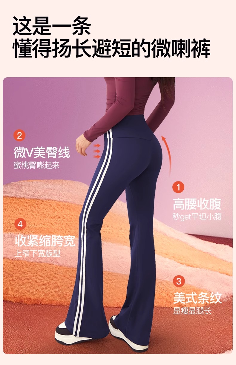 跃牌【禅语梵心】美式辣妹加绒蜜桃提臀健身裤云感弹力喇叭裤 CK3039
