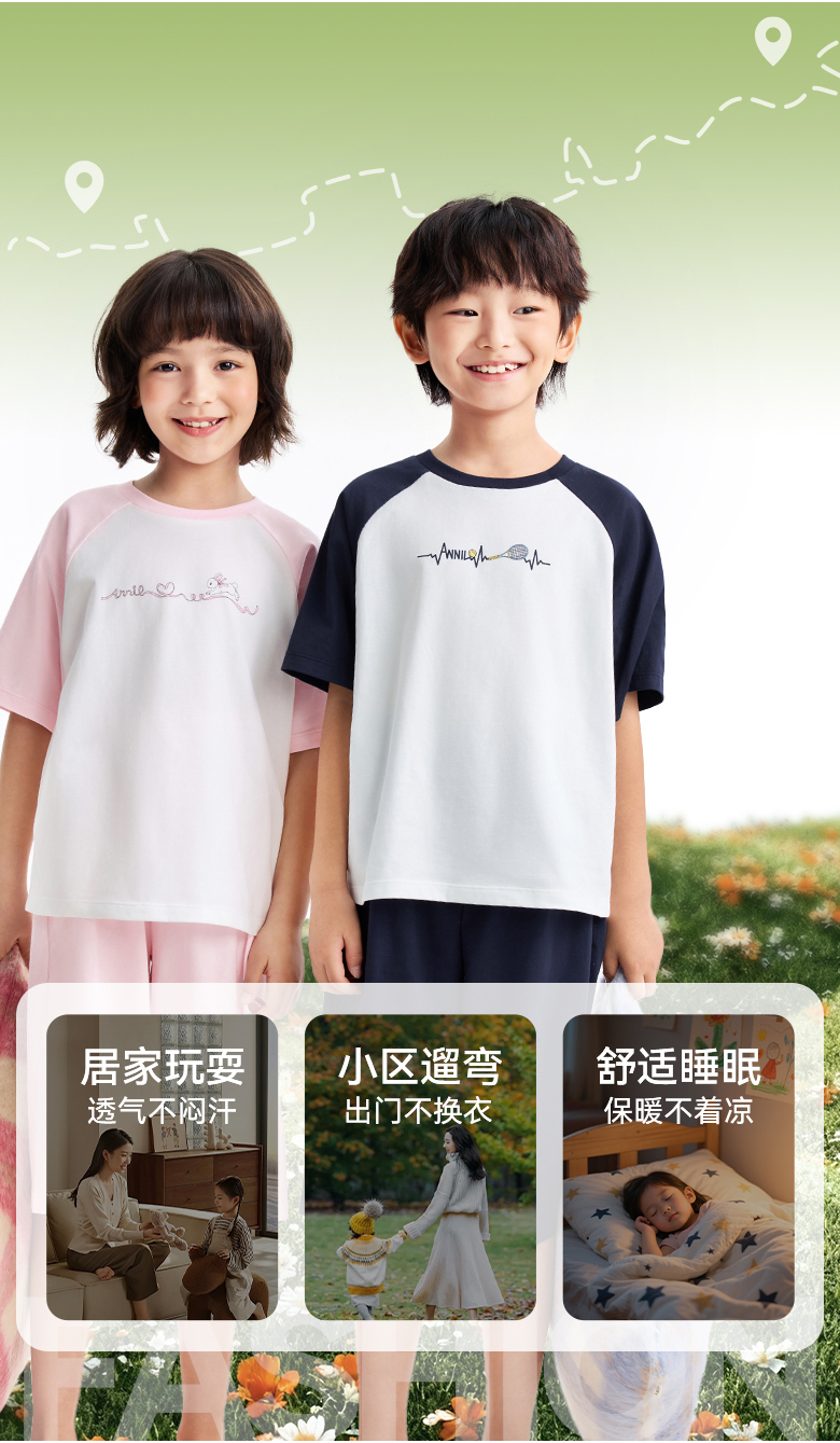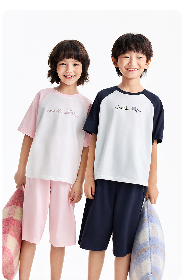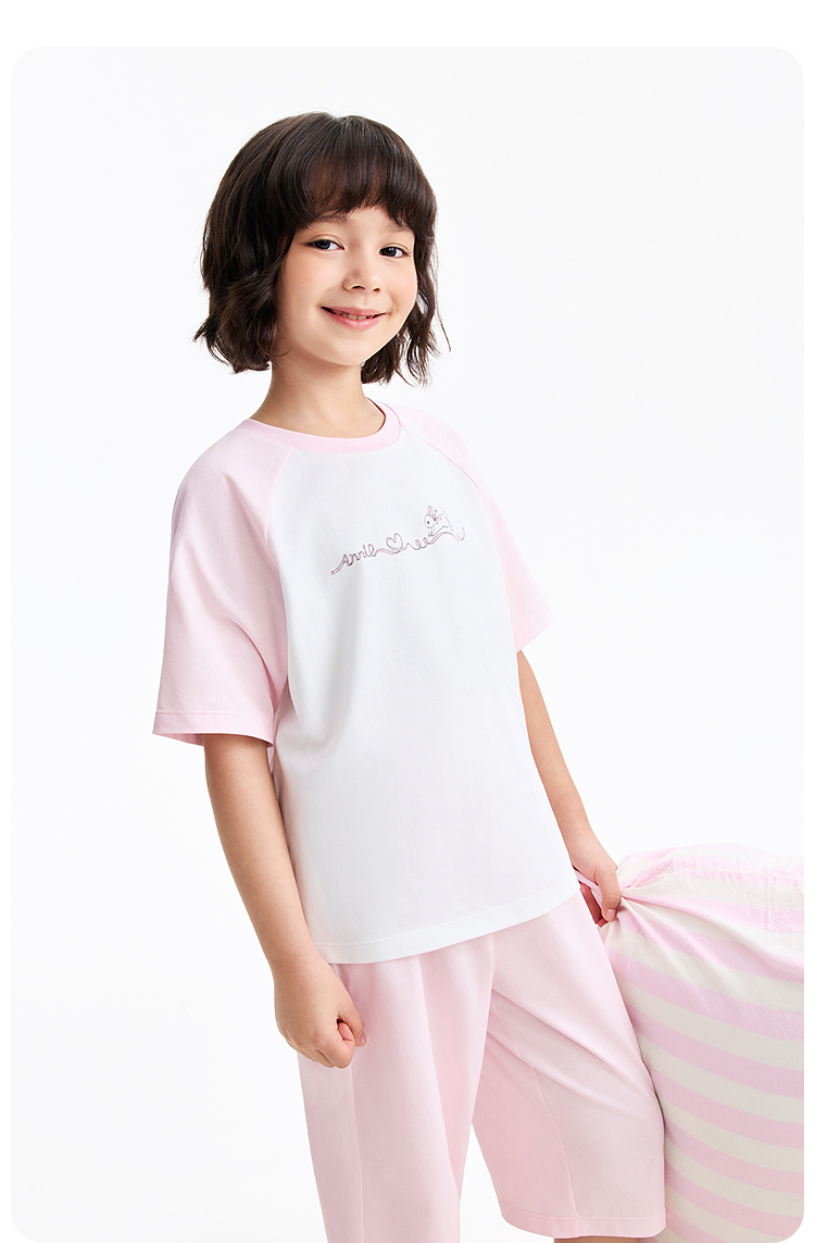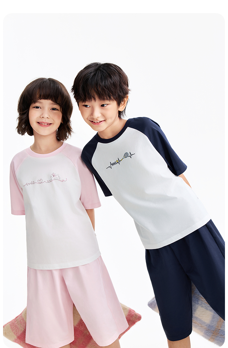 男女童圆领针织套装夏季新款安奈儿童装JM621555