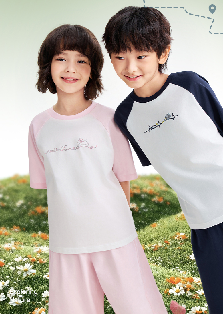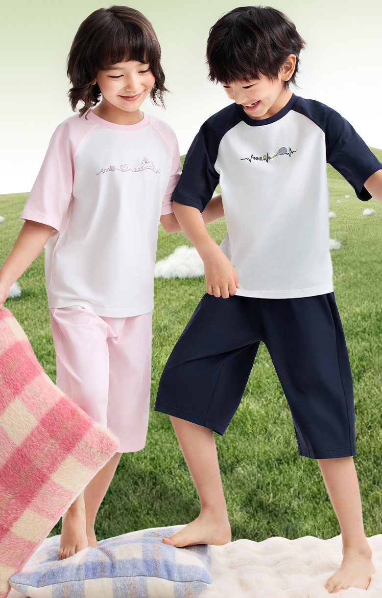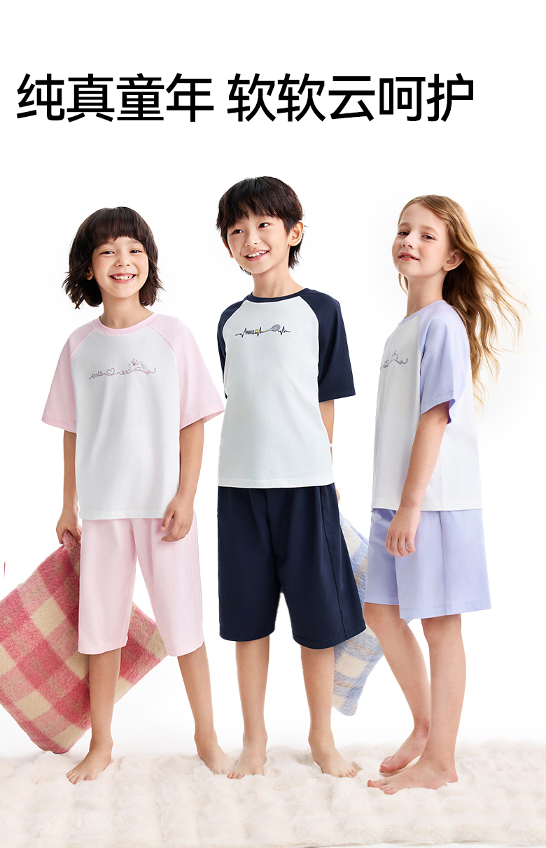 男女童圆领针织套装夏季新款安奈儿童装JM621555