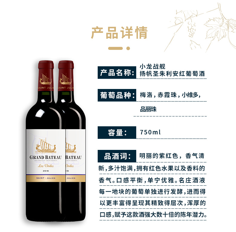 法国小龙战舰扬帆圣朱利安红葡萄酒750ml